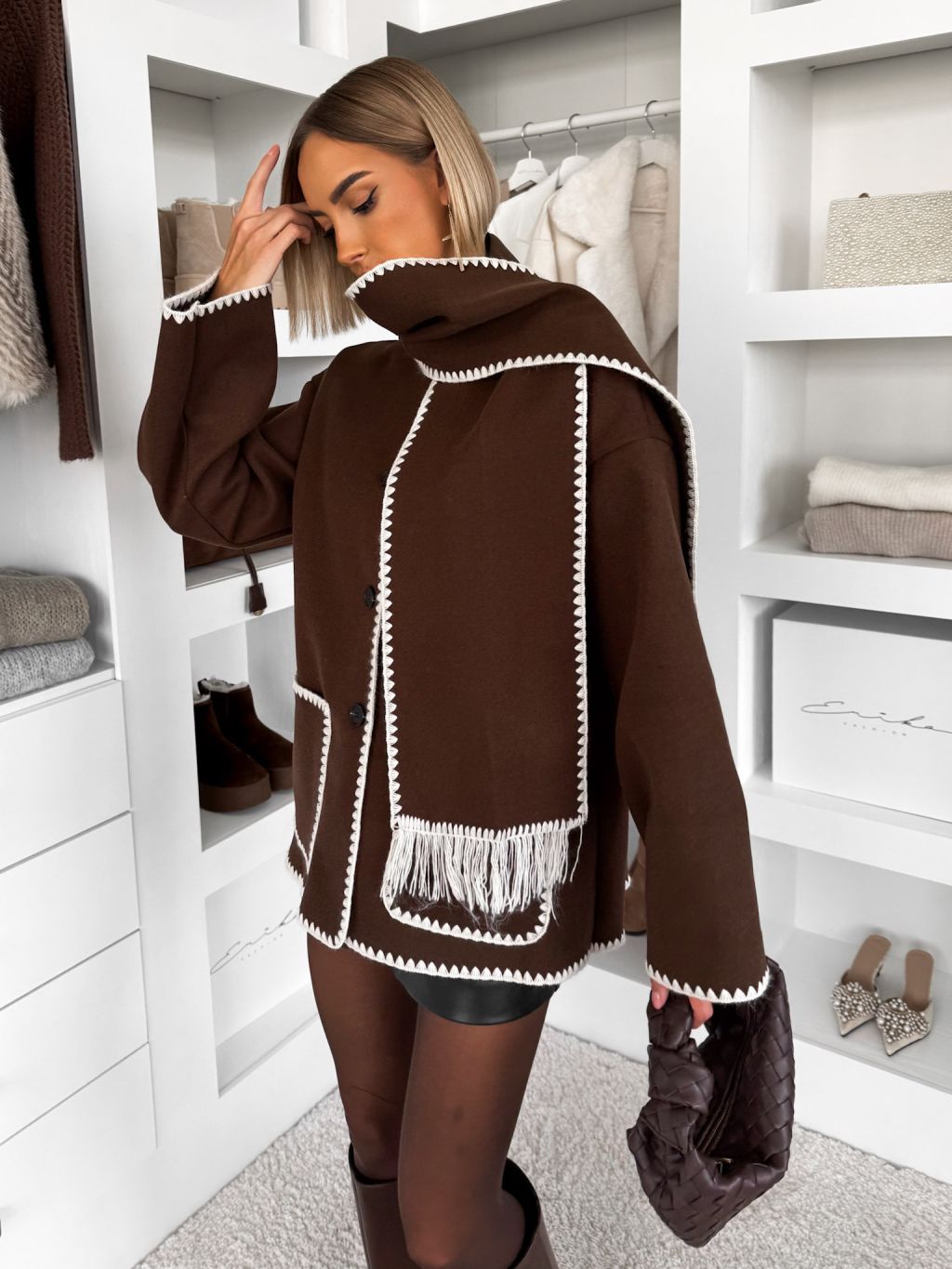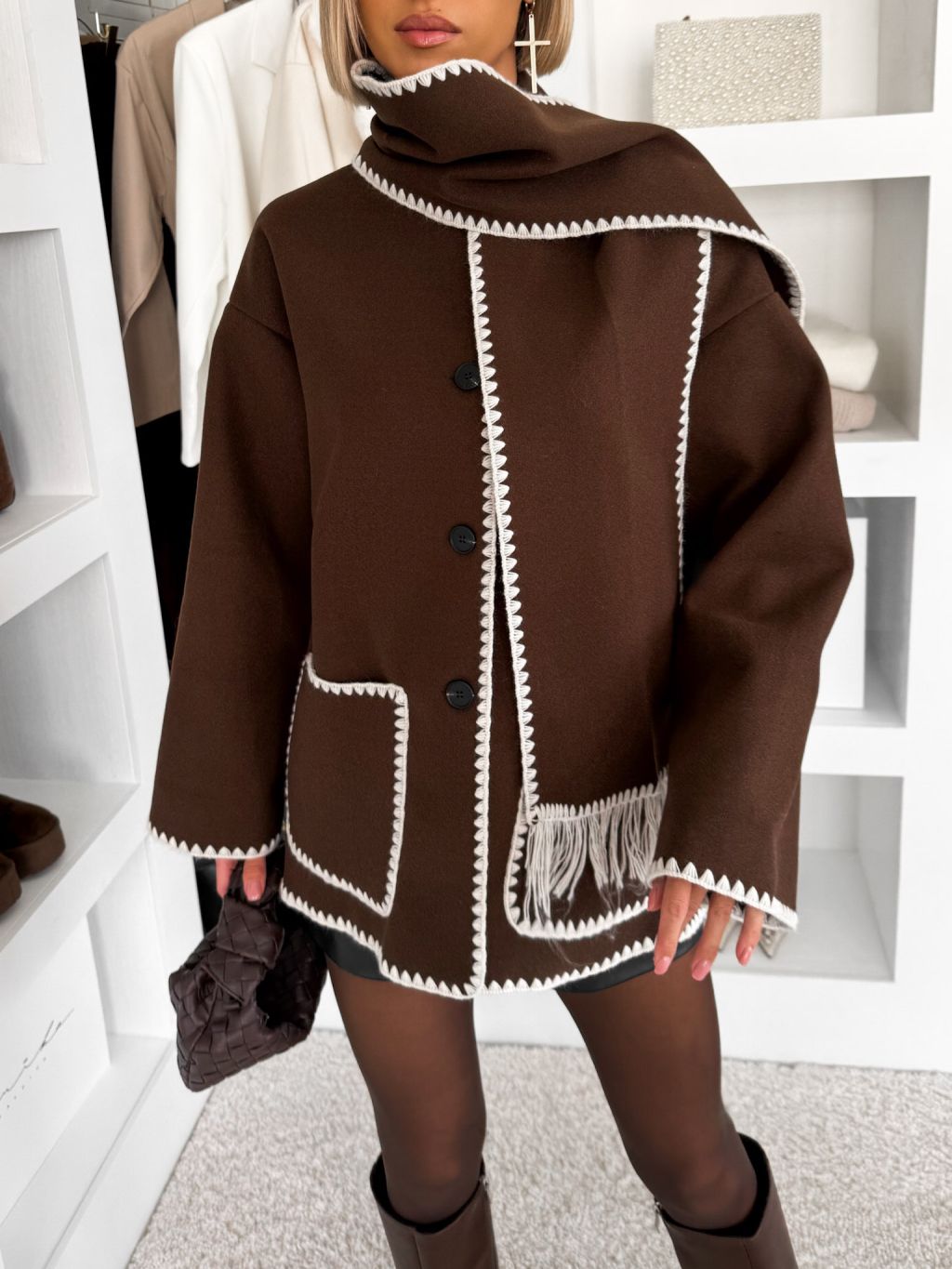 Hnedý kardigán ROKANU so šálom