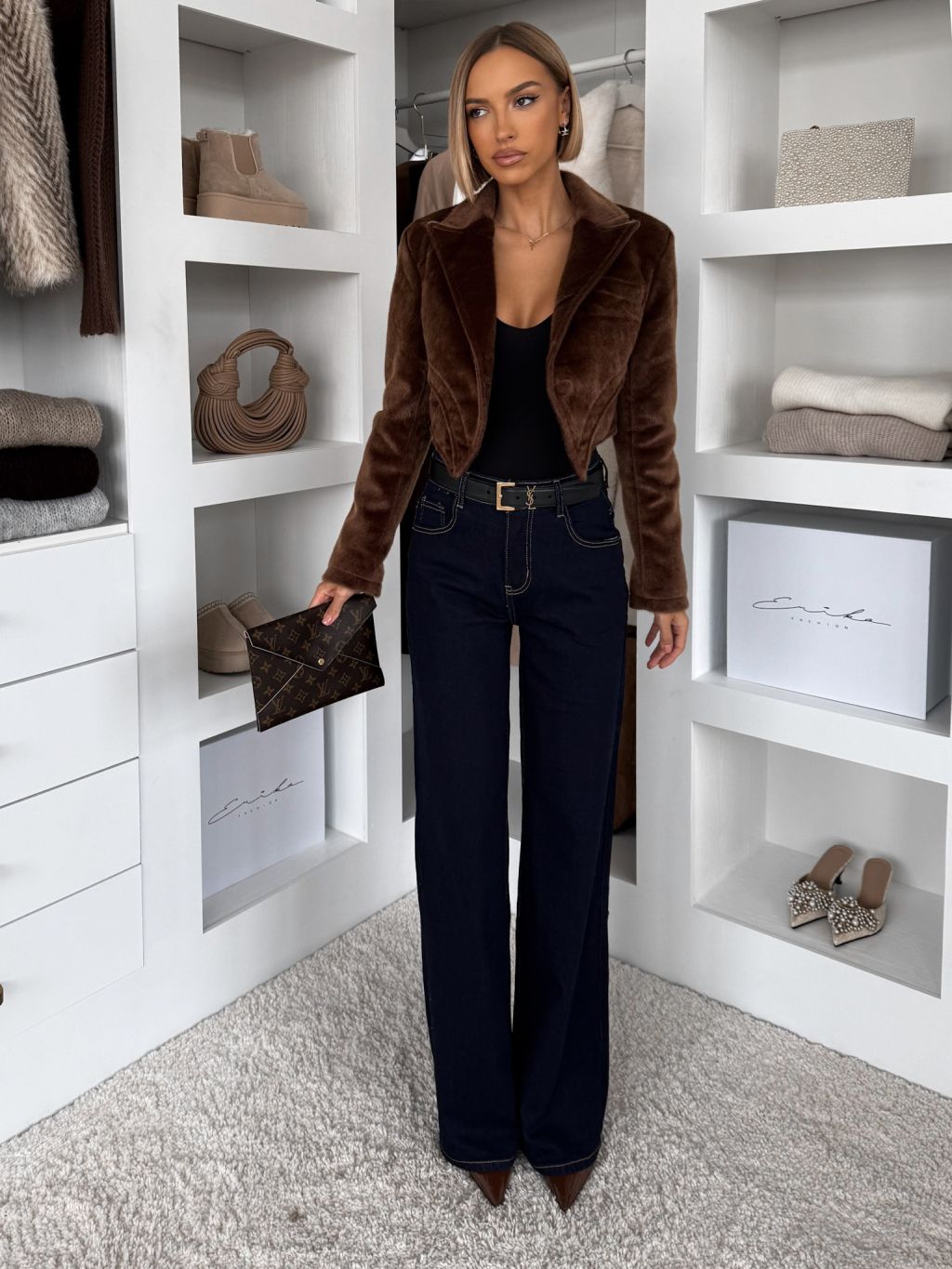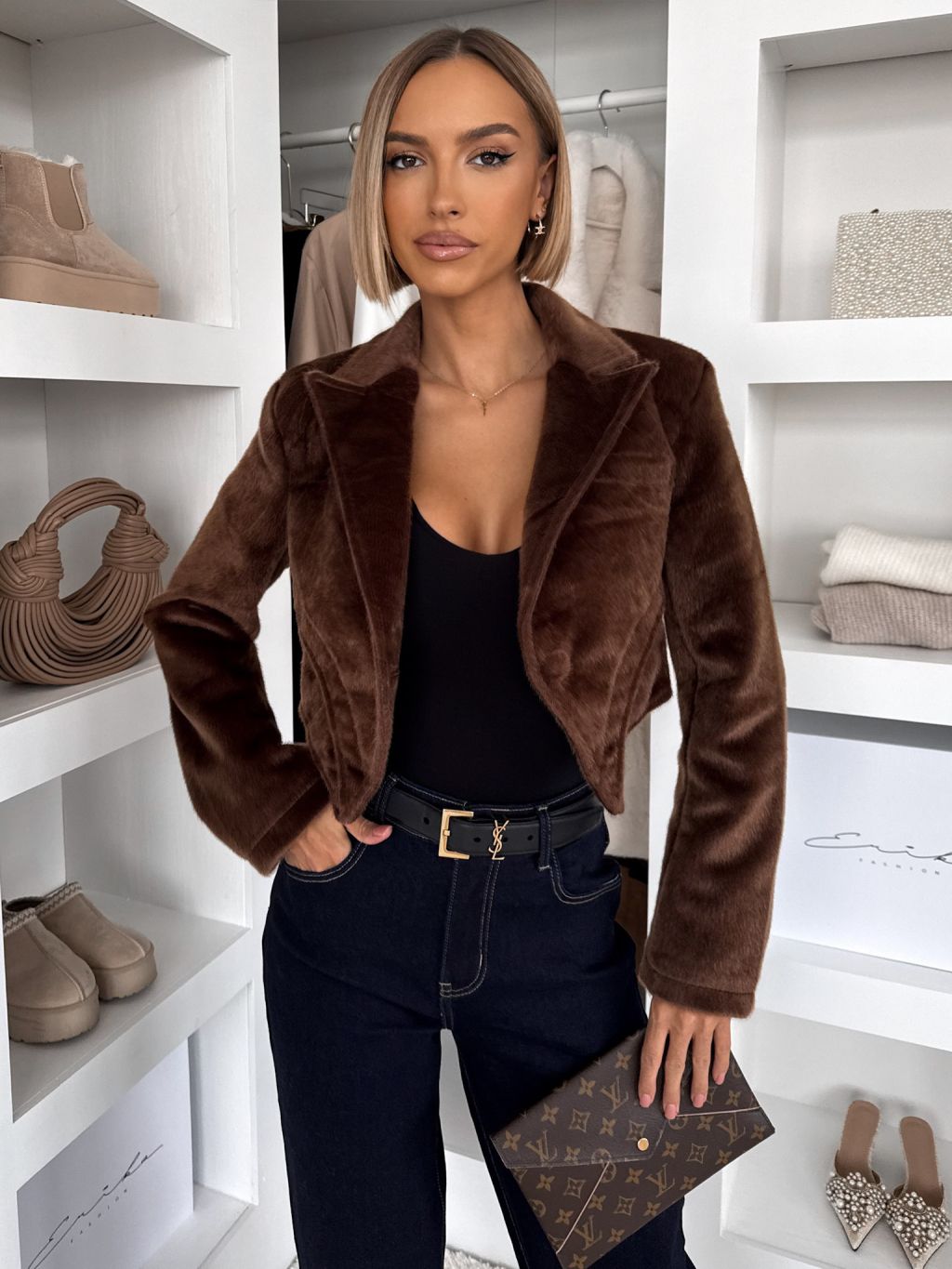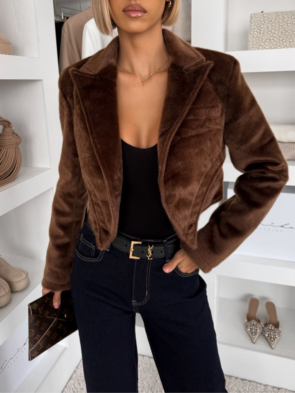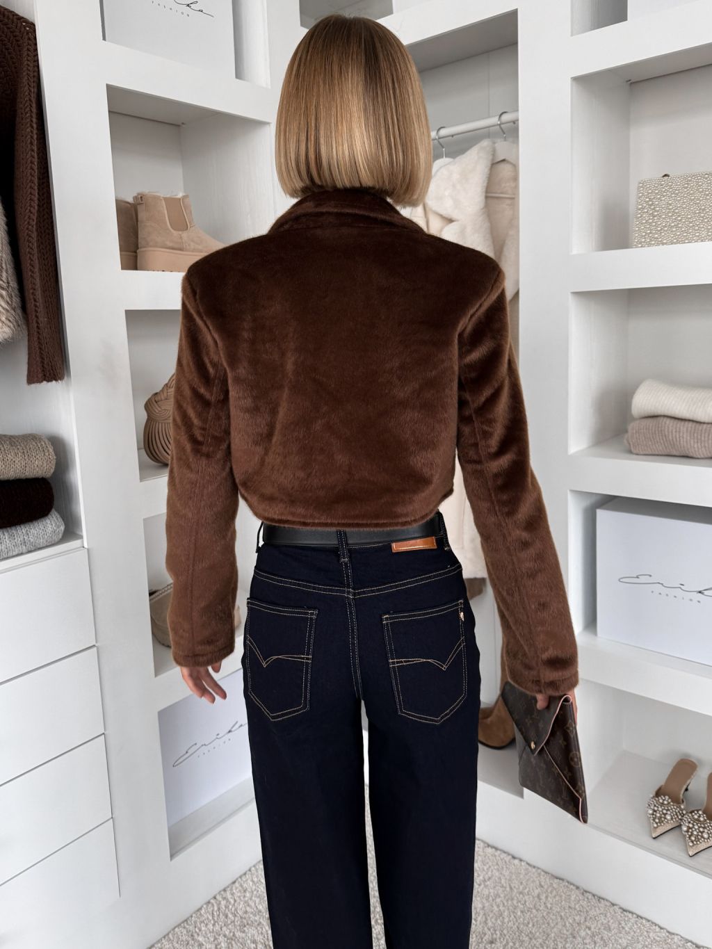 Hnedý luxusný semišový elegantný krátky kabátik DRIFER