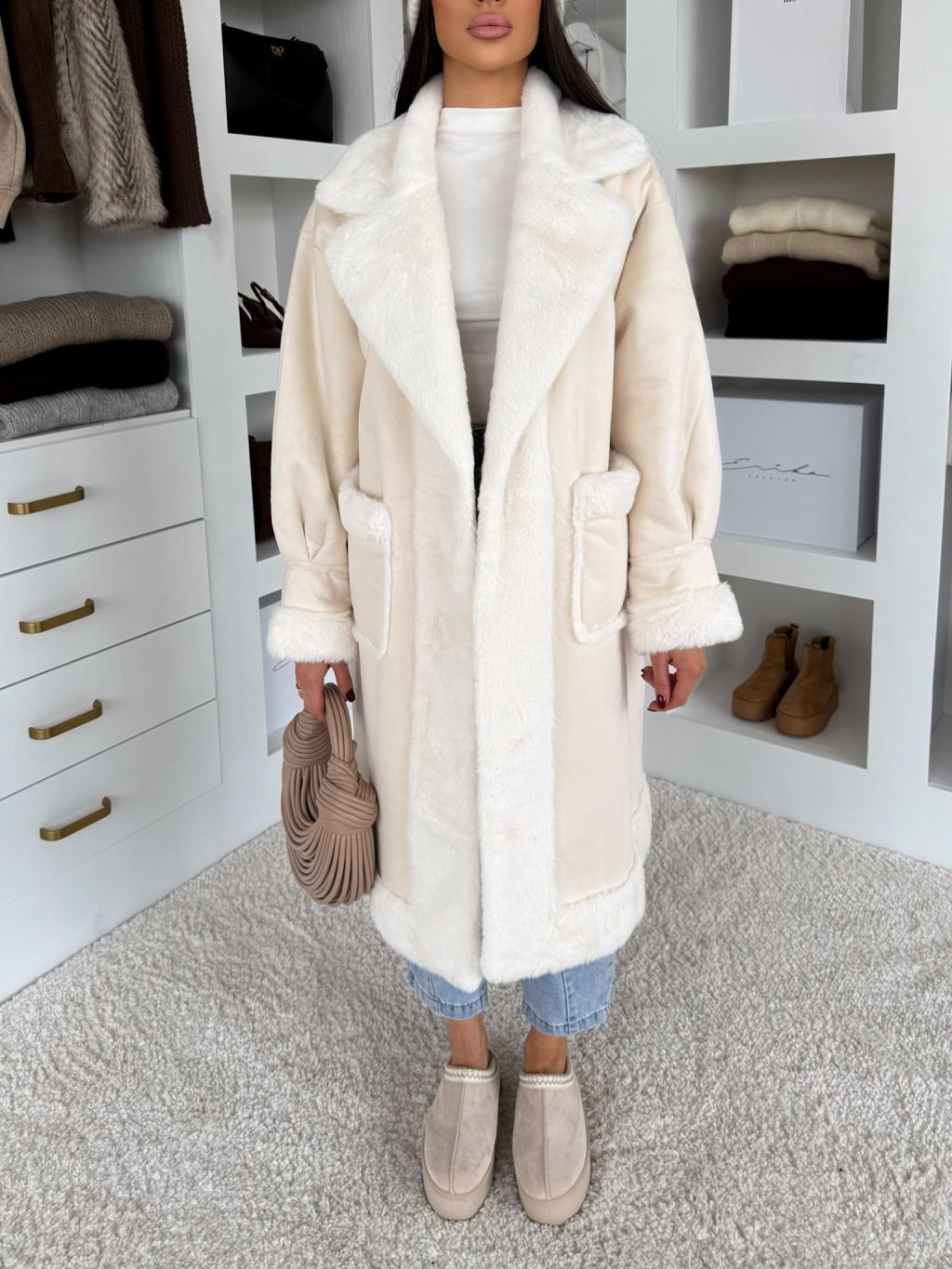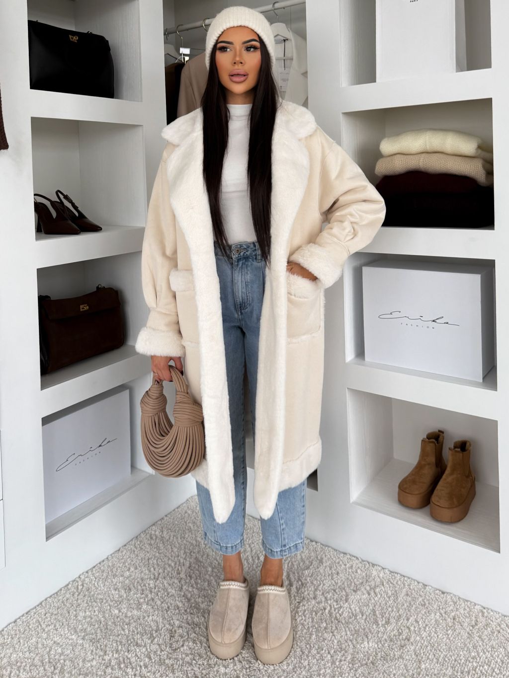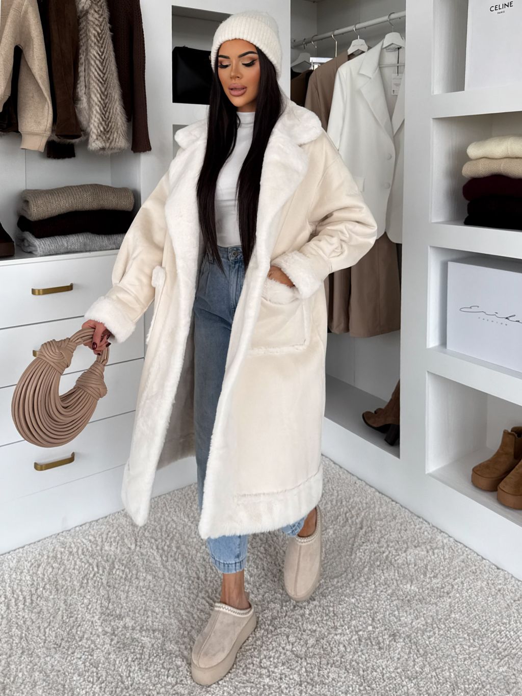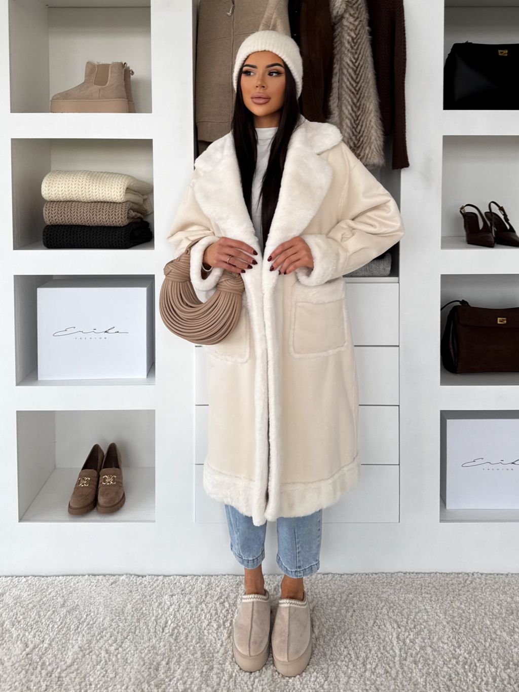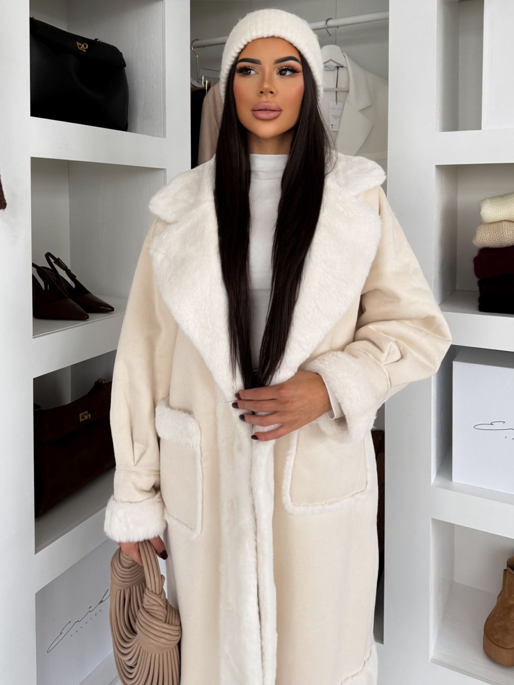 Krémový hrejivý dlhý kabát KÚZELY
