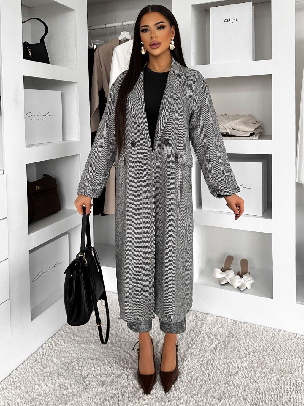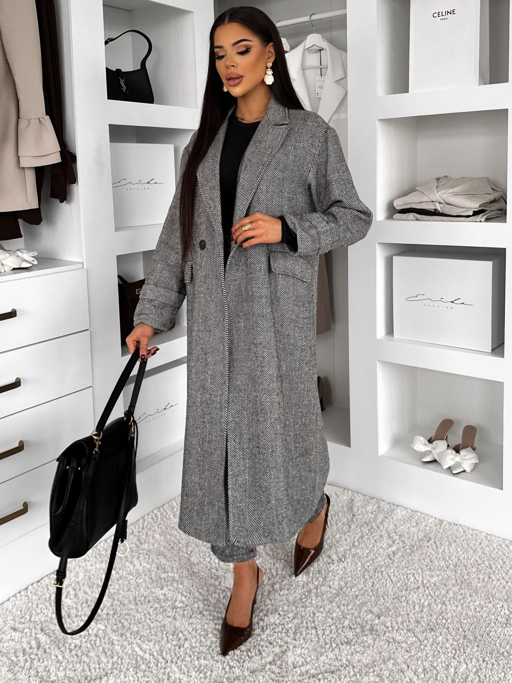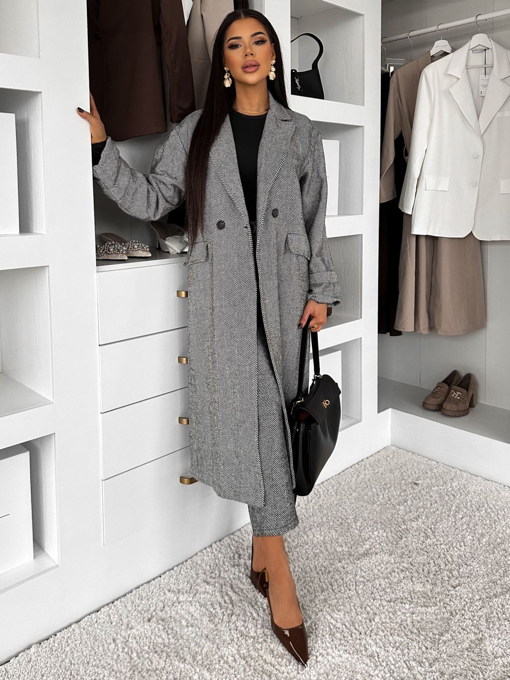 Šedý dlhý elegantný kabát COBALT s gombíkmi