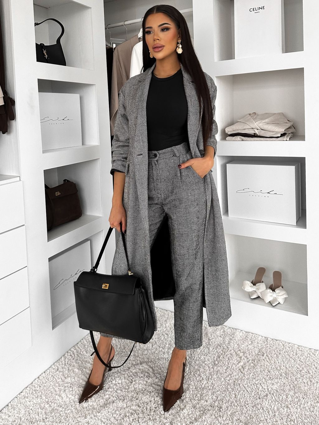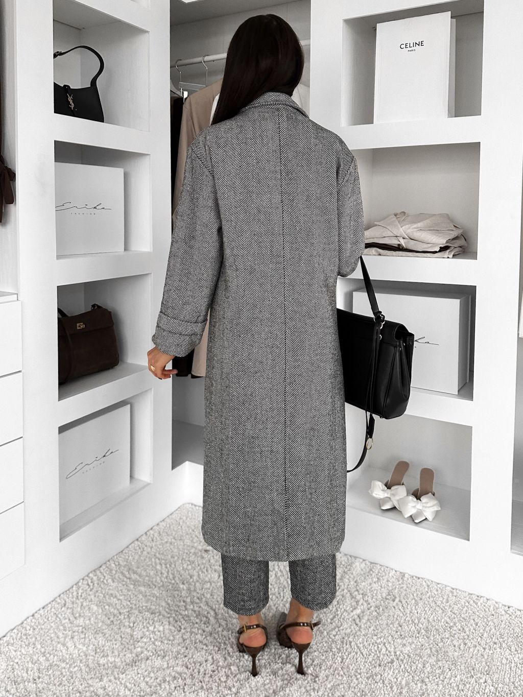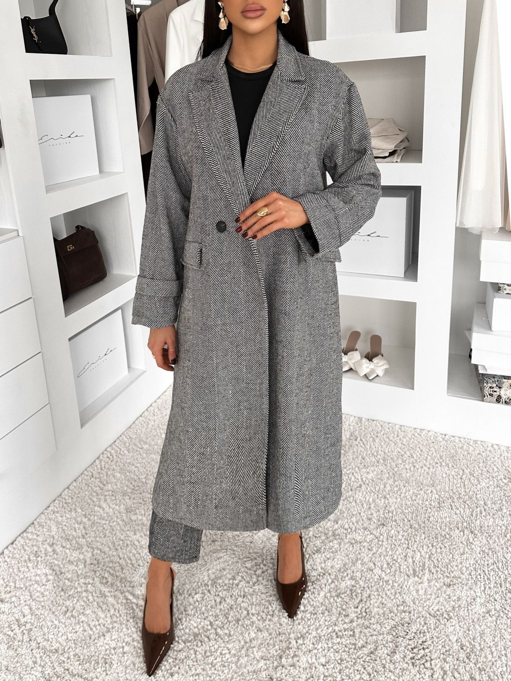 Šedý dlhý elegantný kabát COBALT s gombíkmi