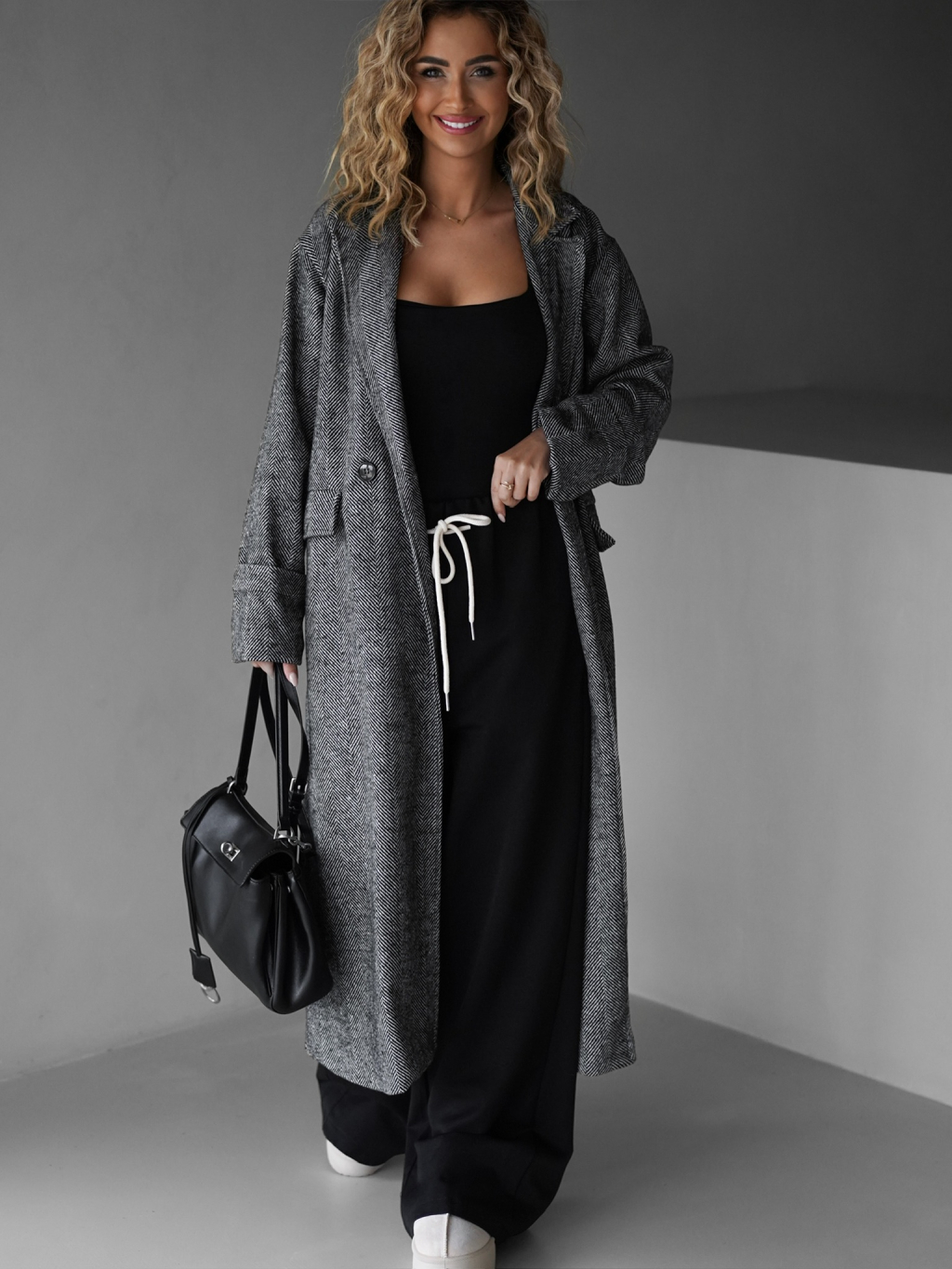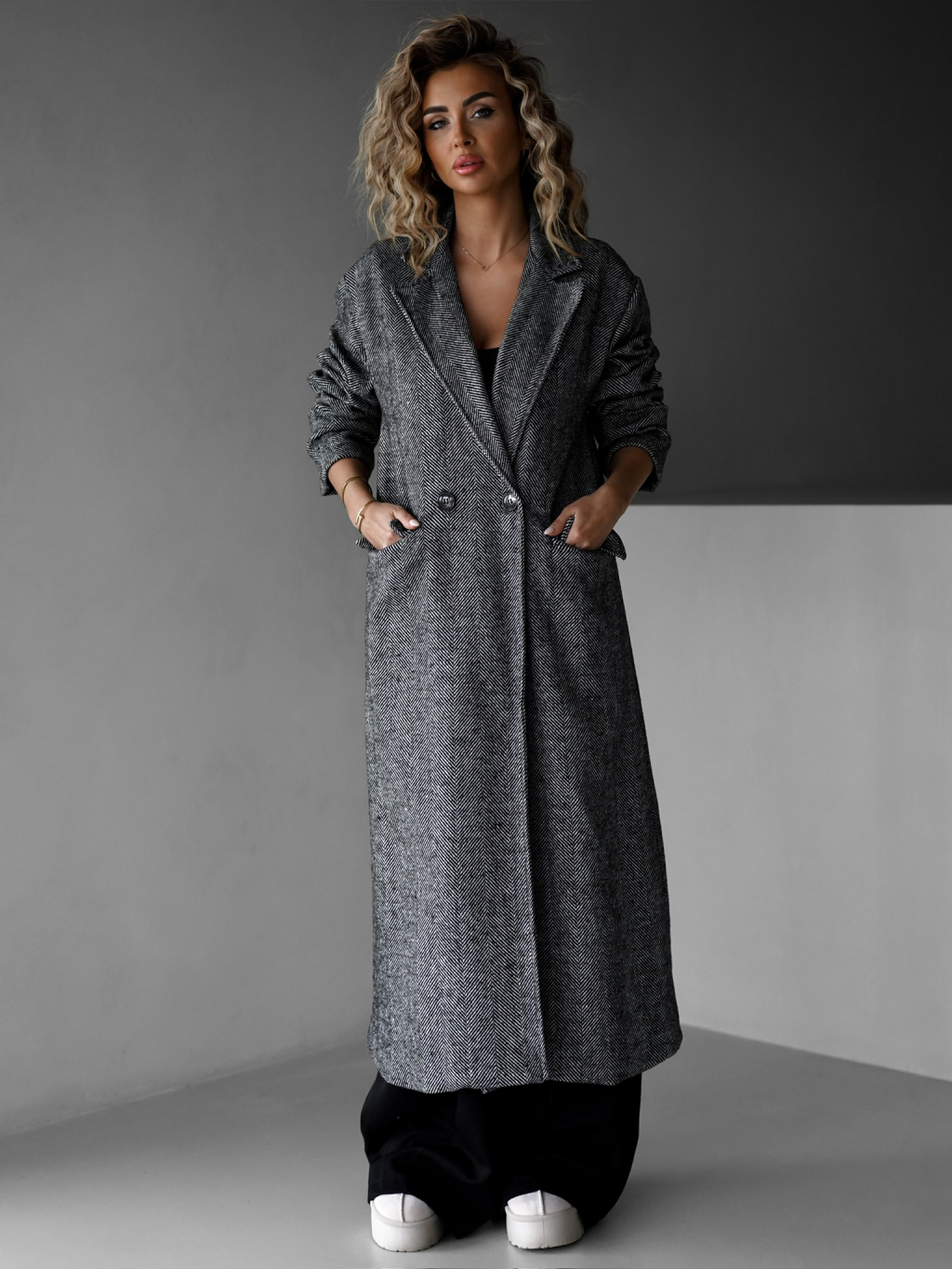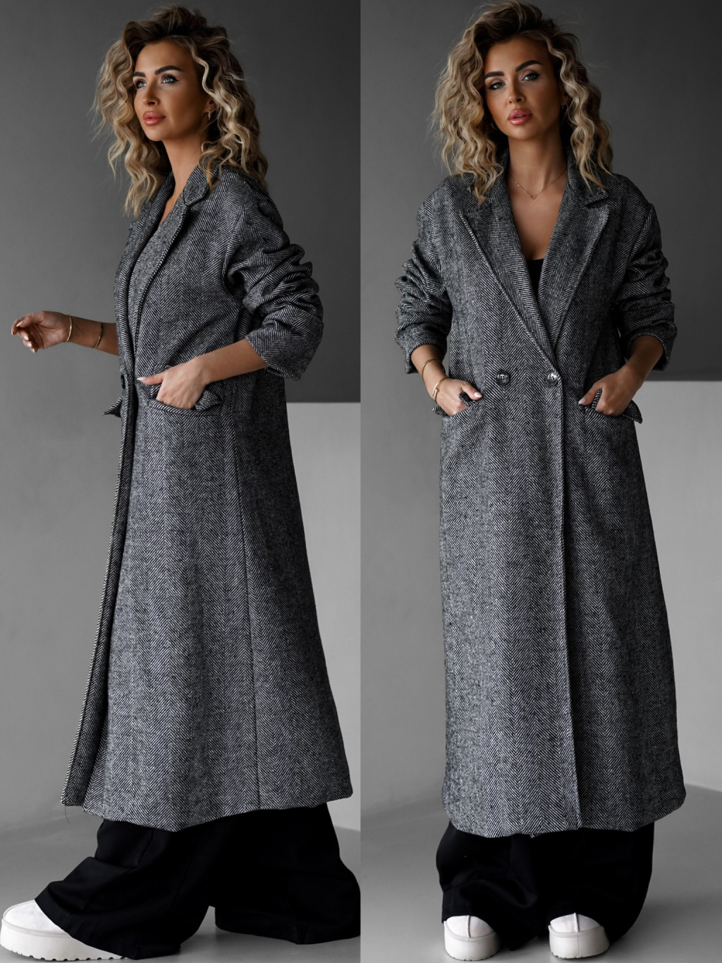 Šedý dlhý oversize elegantný kabát PRENIA