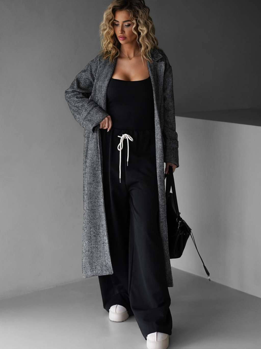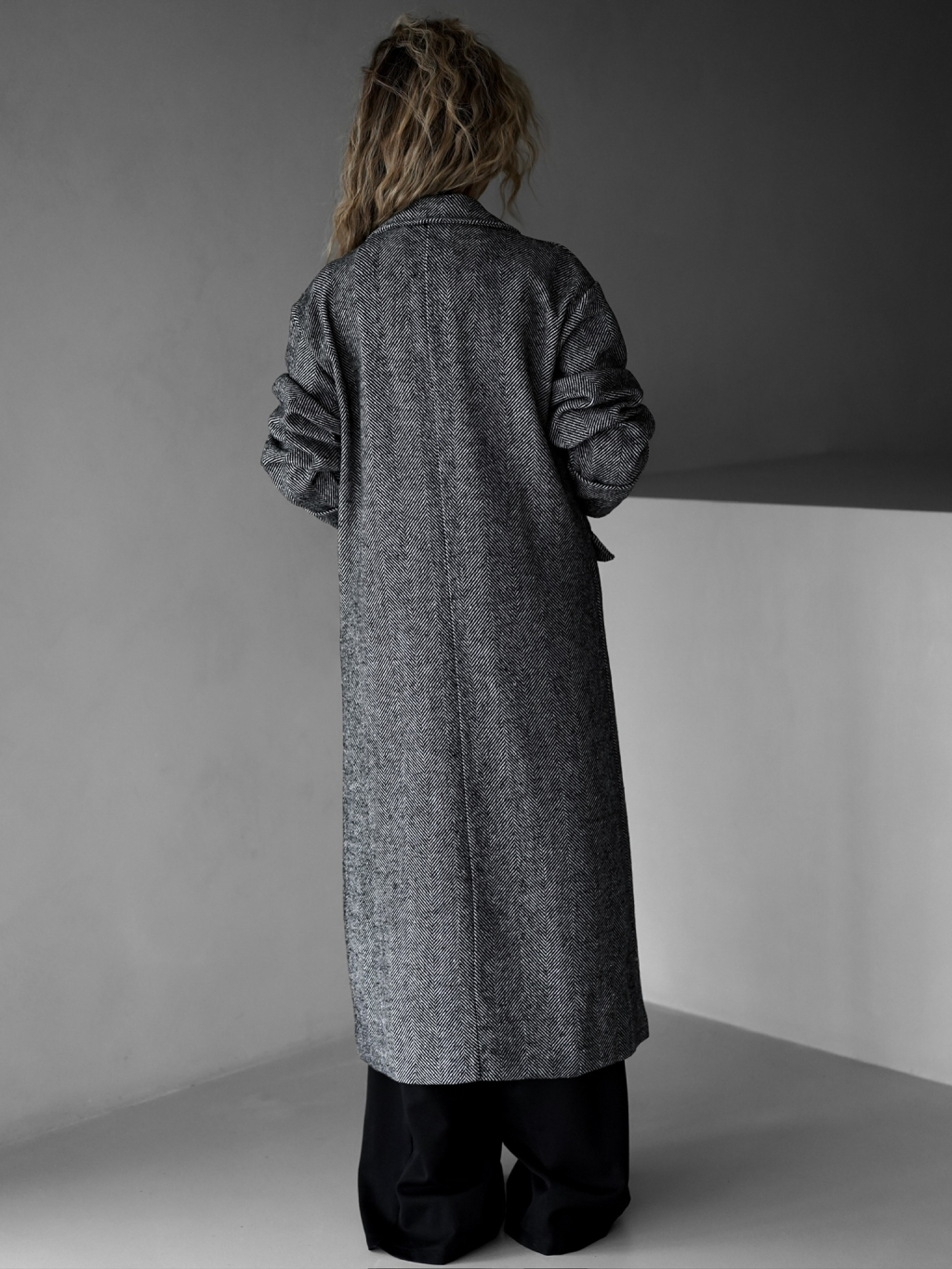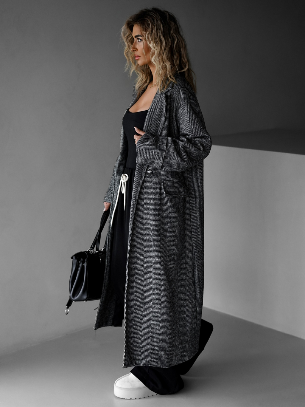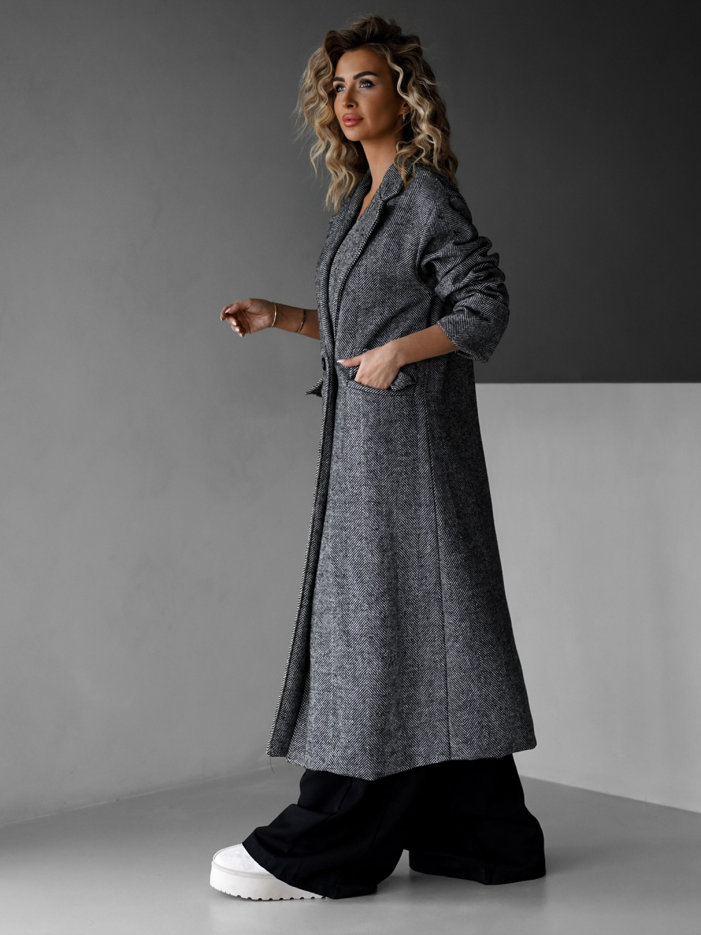 Šedý dlhý oversize elegantný kabát PRENIA