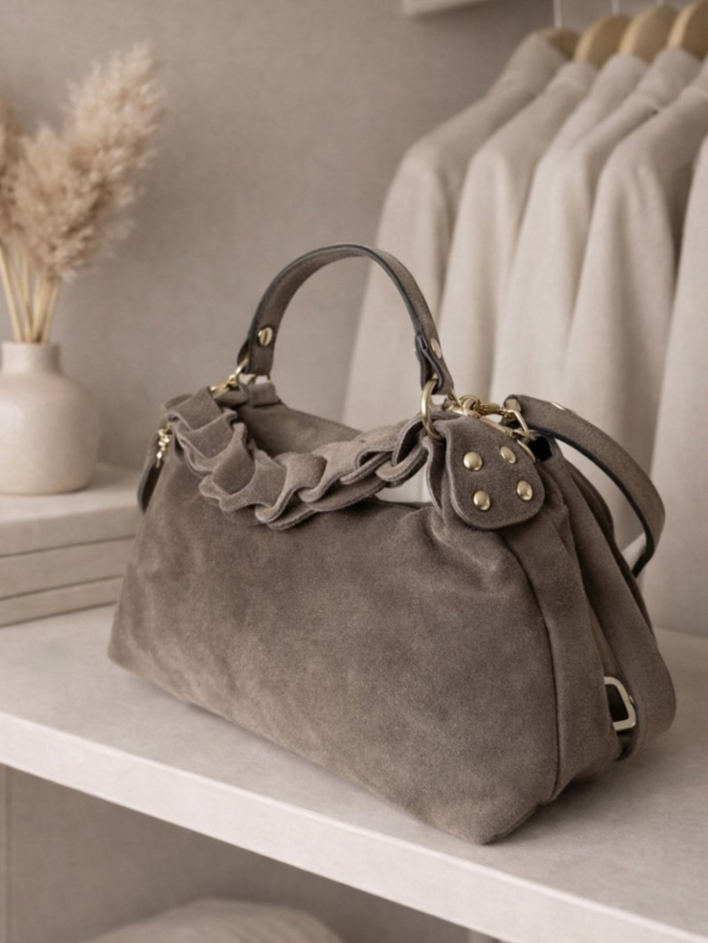 Béžová kožená brúsená mini kabelka HASELVI