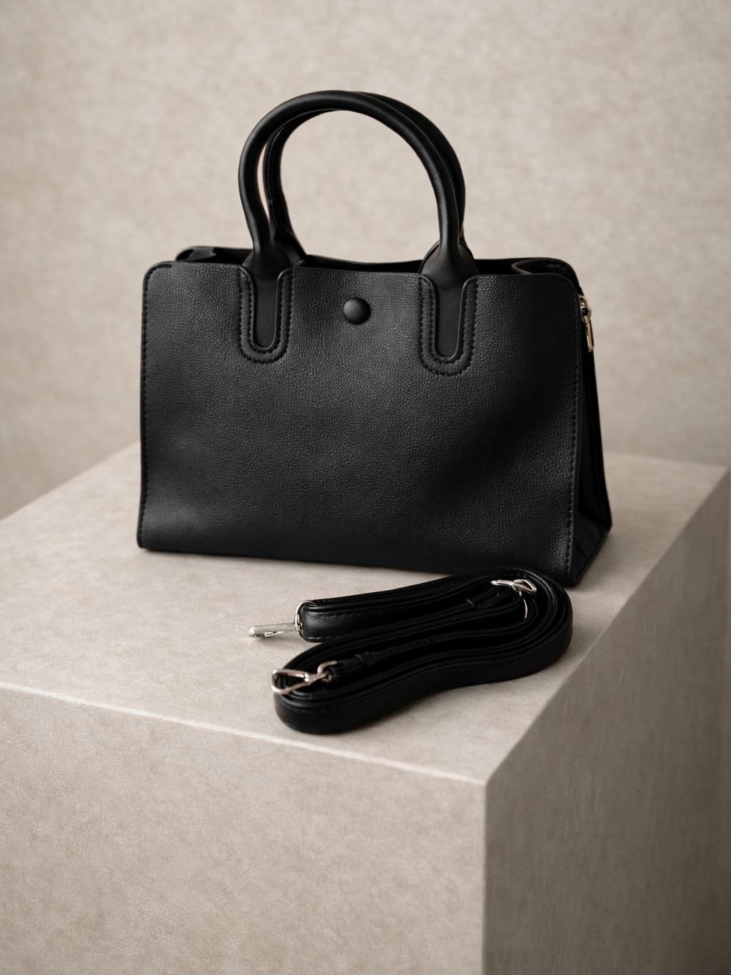 Čierna koženková hranatá kabelka KERAVIN