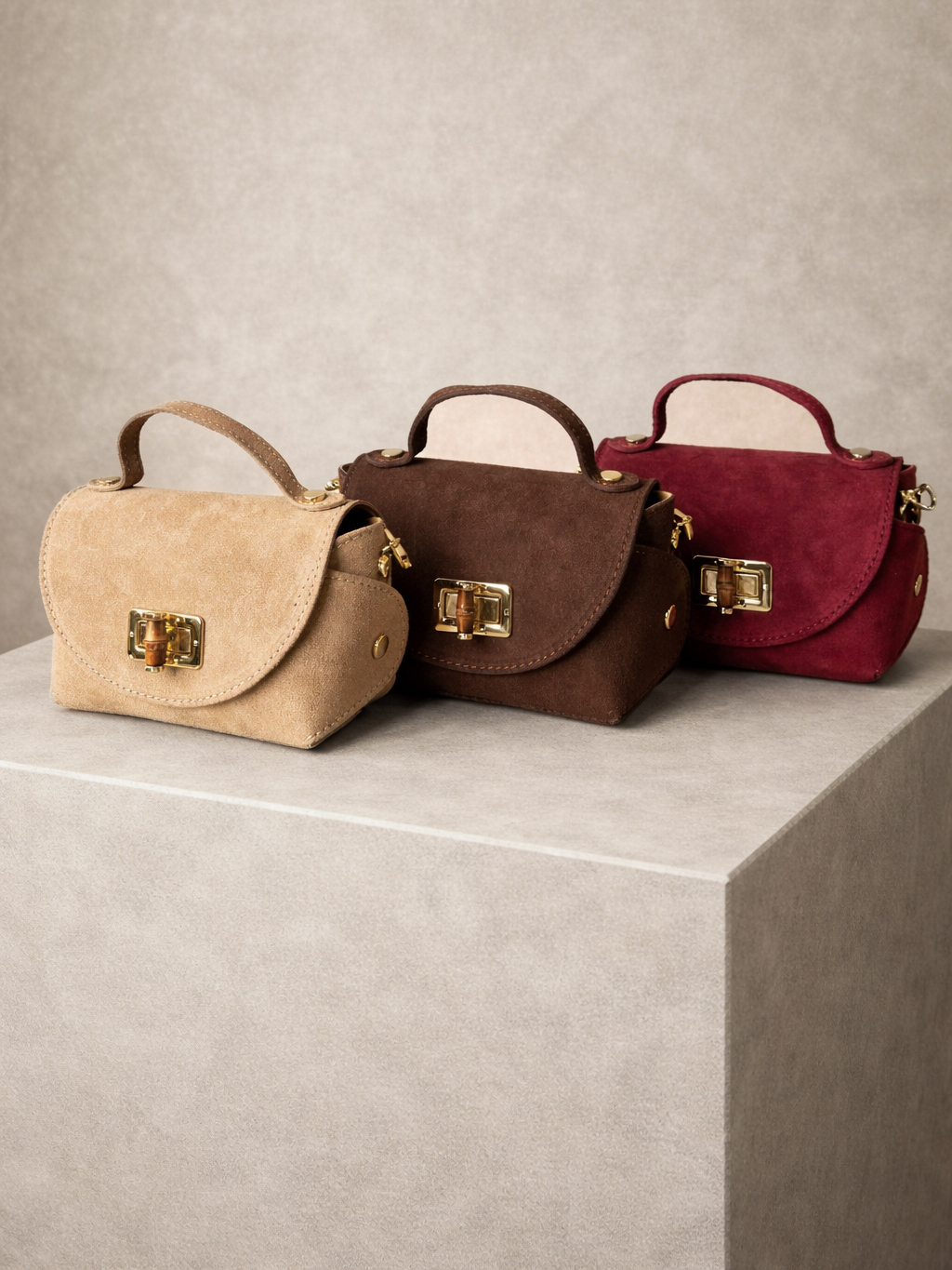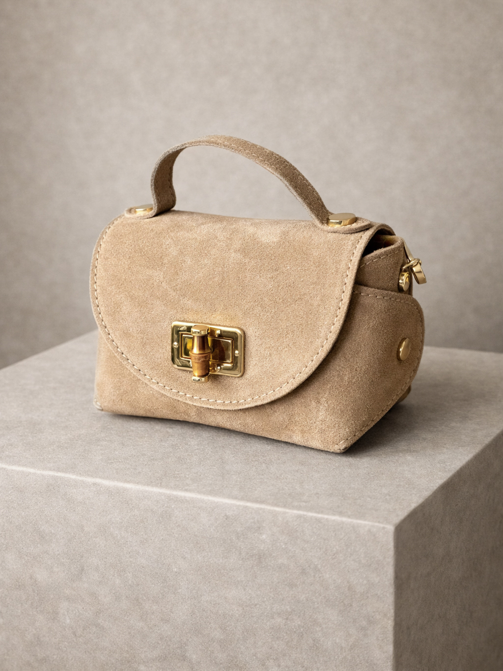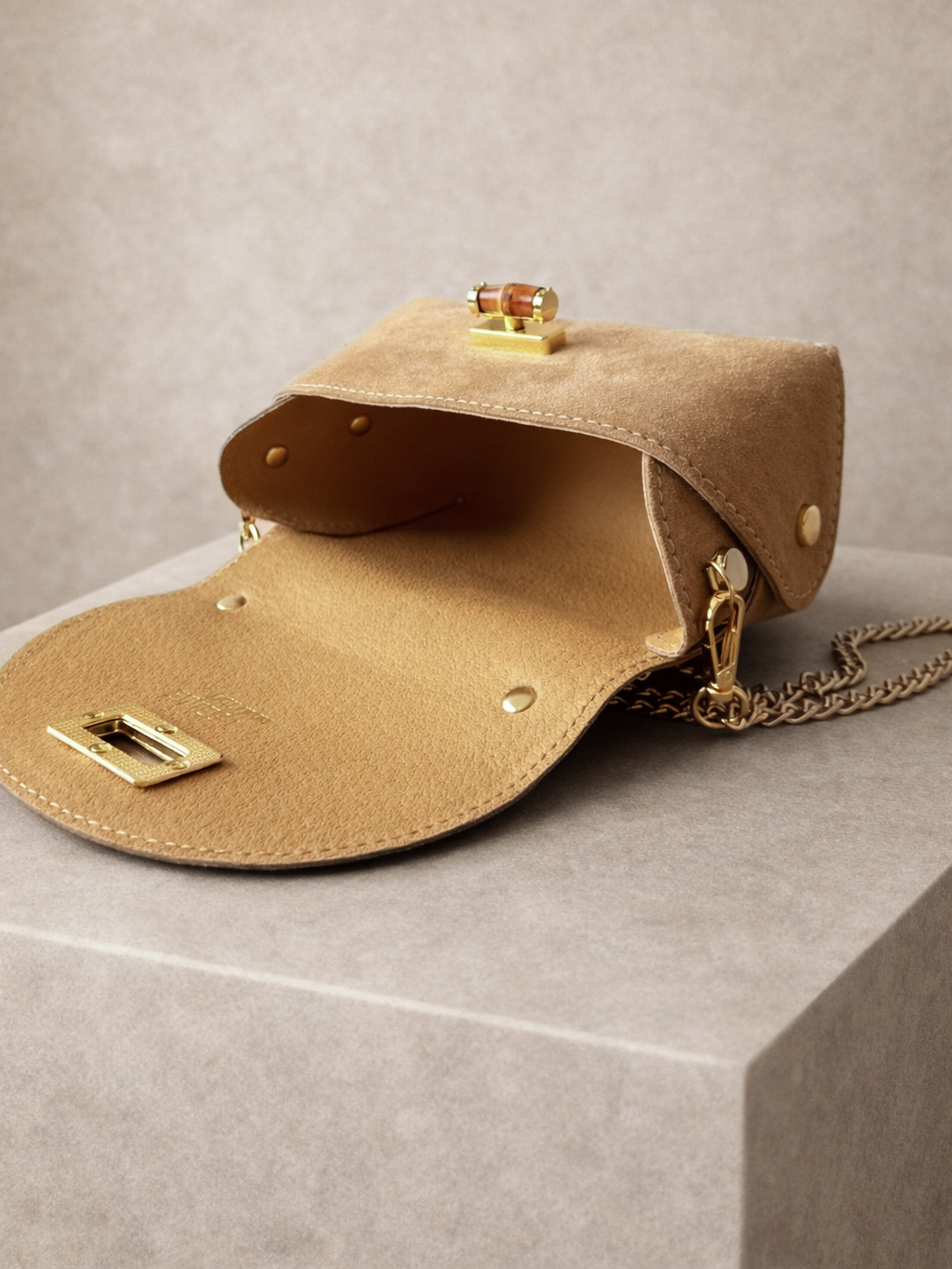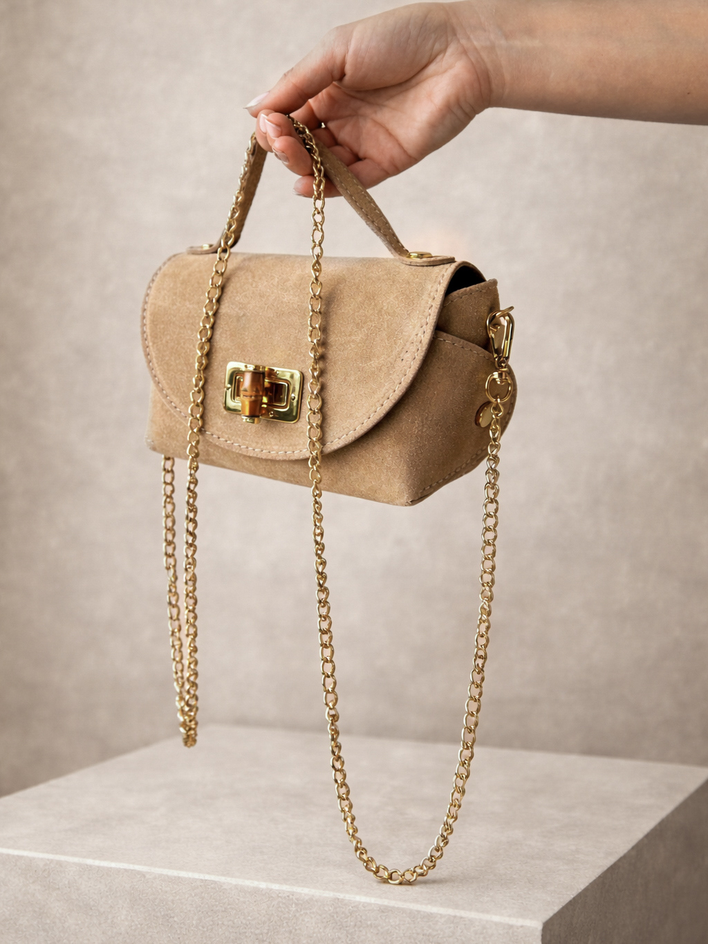 Krémová kožená semišová kabelka VEVAROQ so zlatou retiazkou