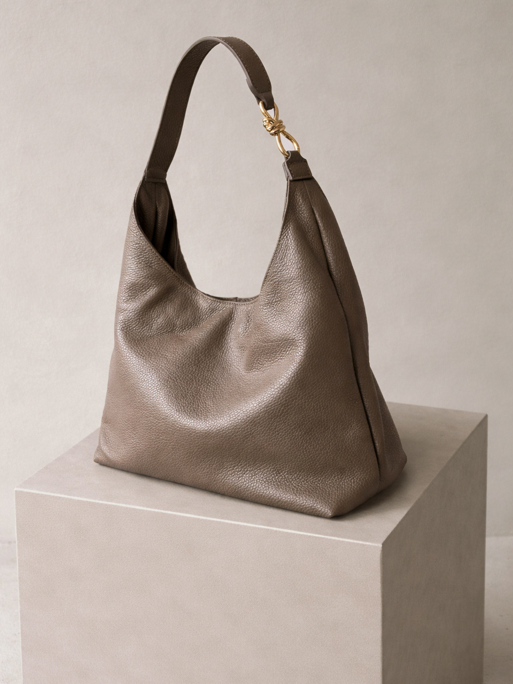 Tmavo béžová kožená veľká kabelka ZYMORA