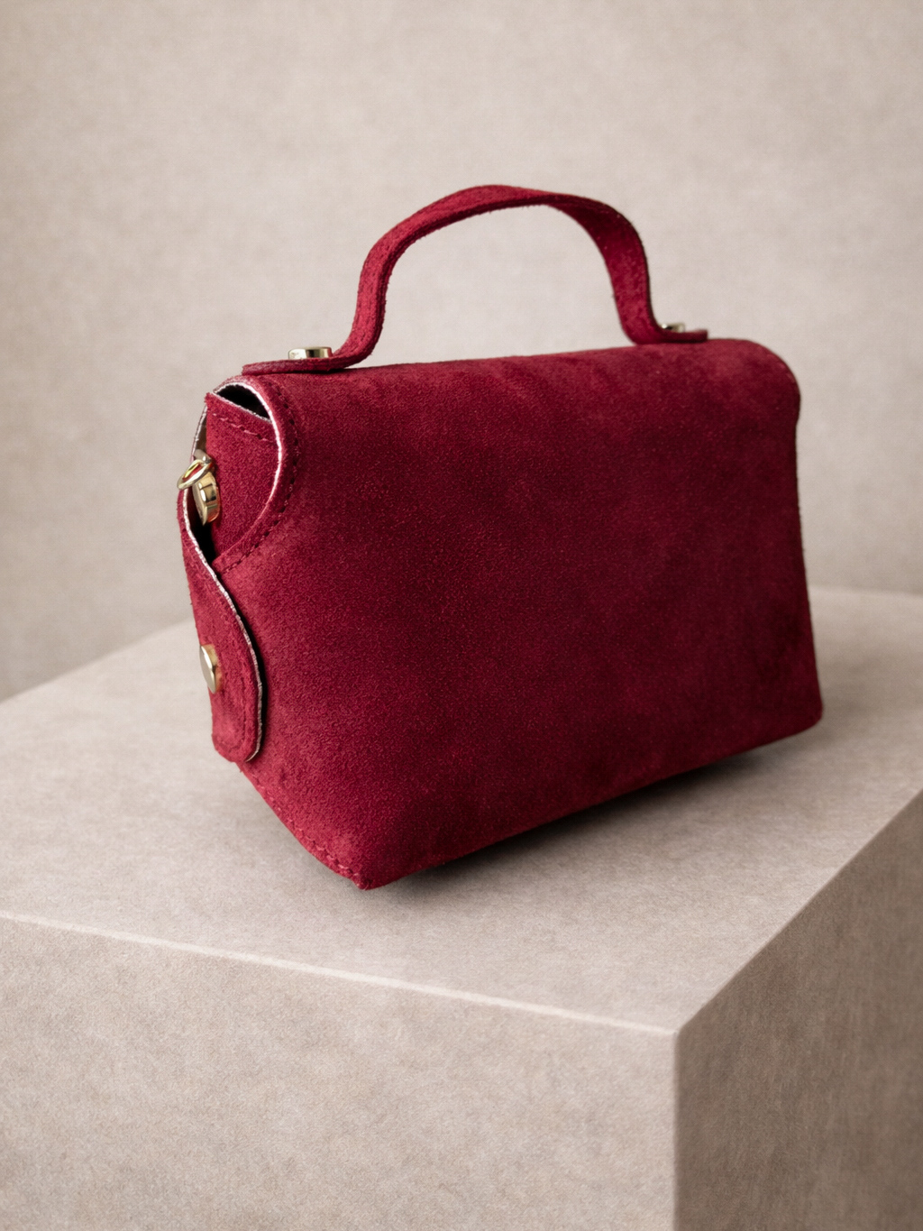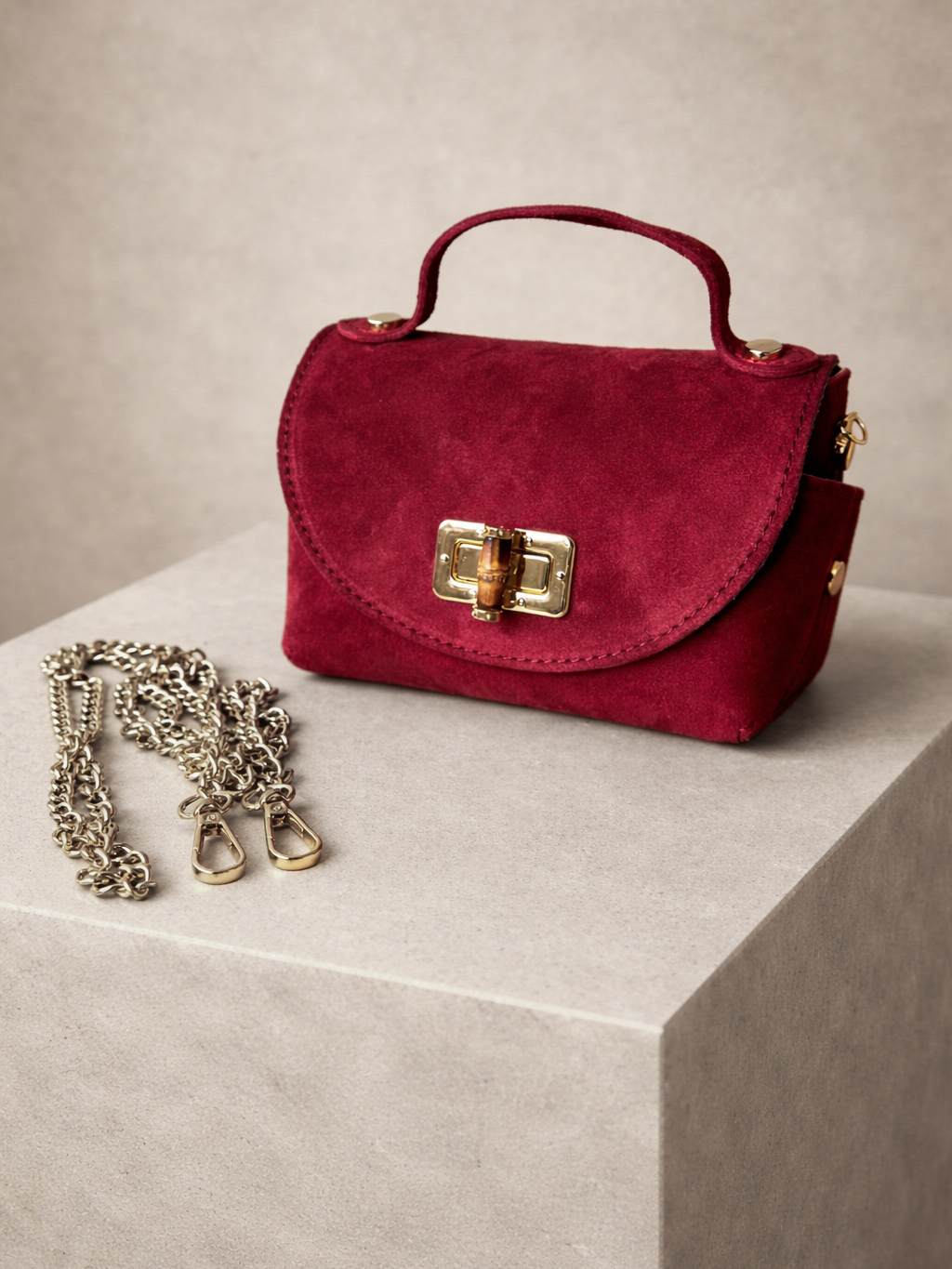 Vínová kožená semišová kabelka VEVAROQ so zlatou retiazkou