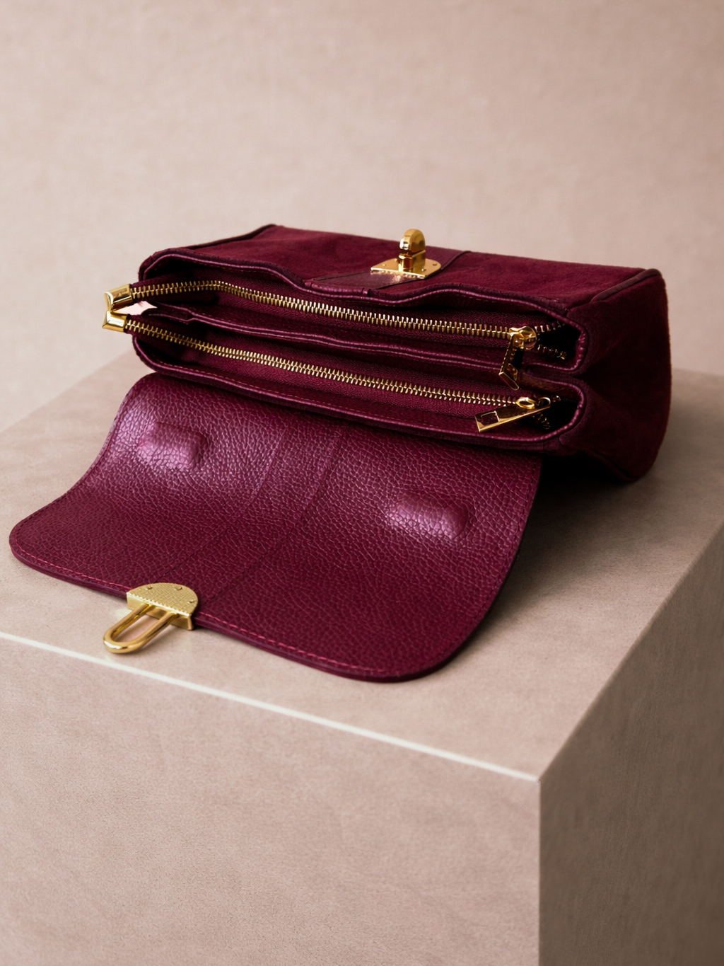 Vínová kožená semišová mini kabelka DIRLUMA