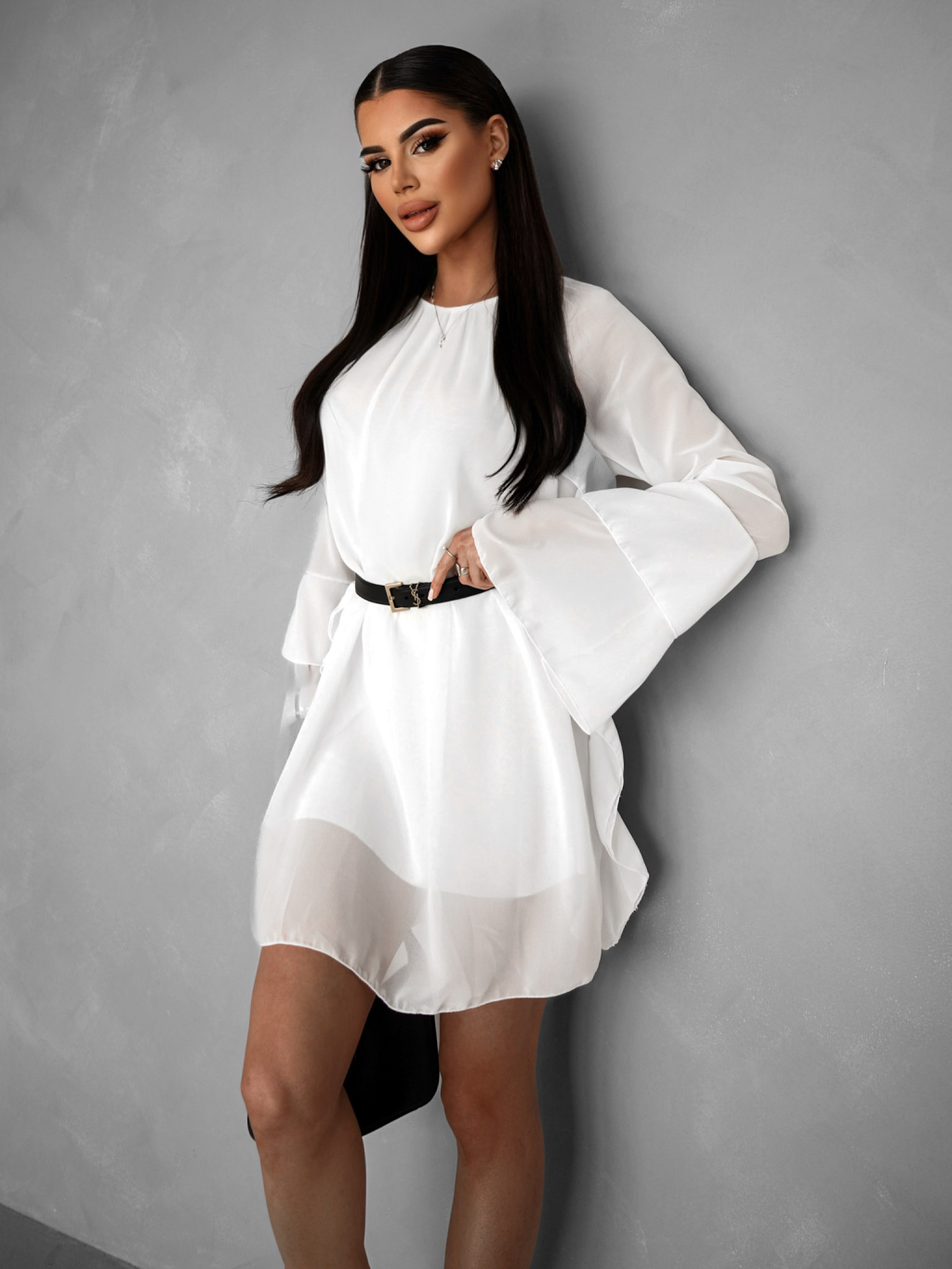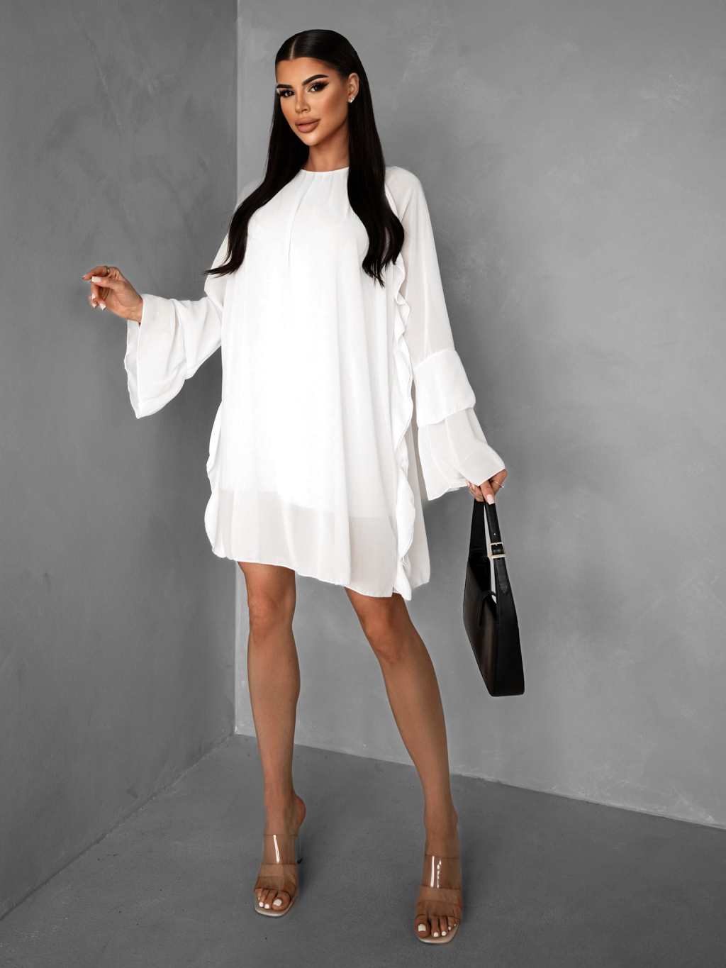 Biele spoločenské šaty JAMINE s volánmi