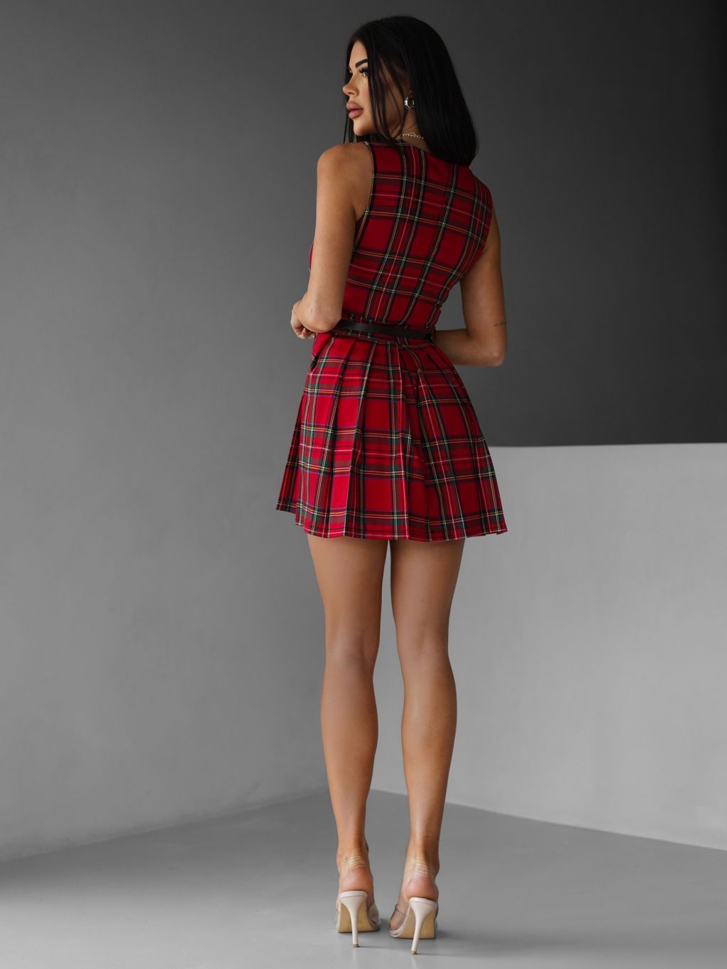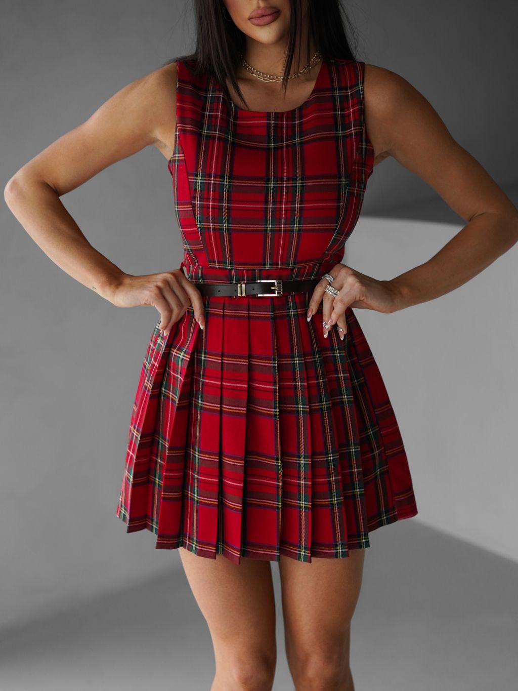 Červené kárované plisované šaty LIKER