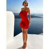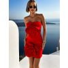 Červené koktailové mini šaty JUSEF s aplikáciou kvetov