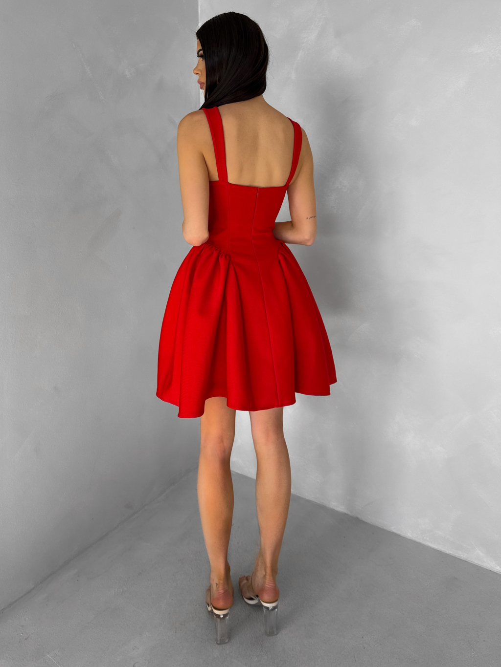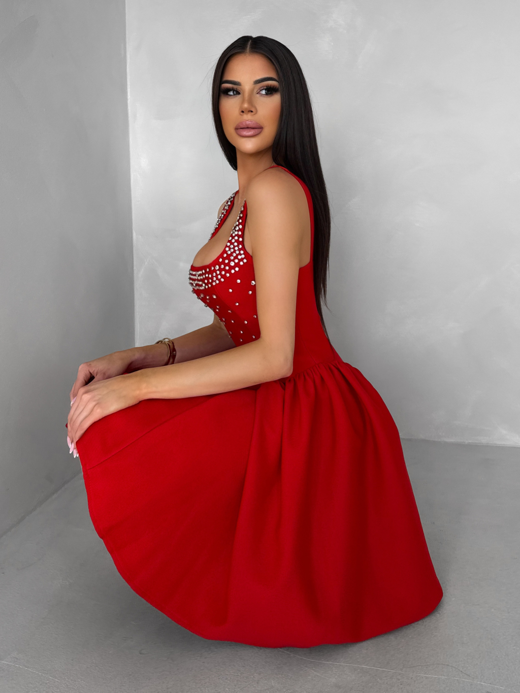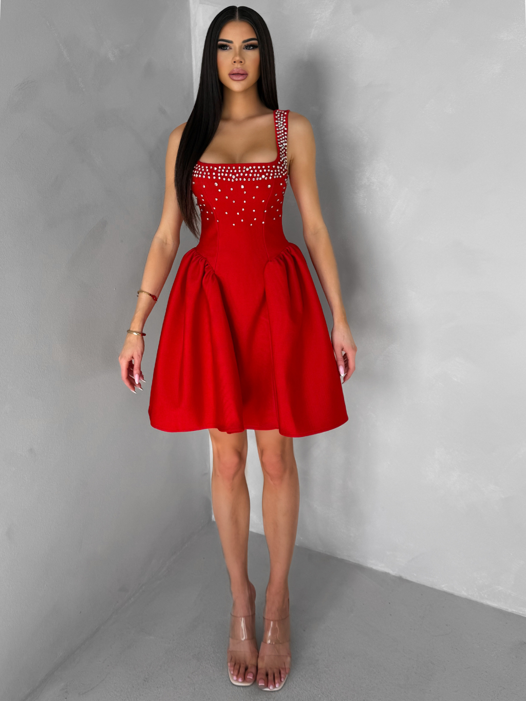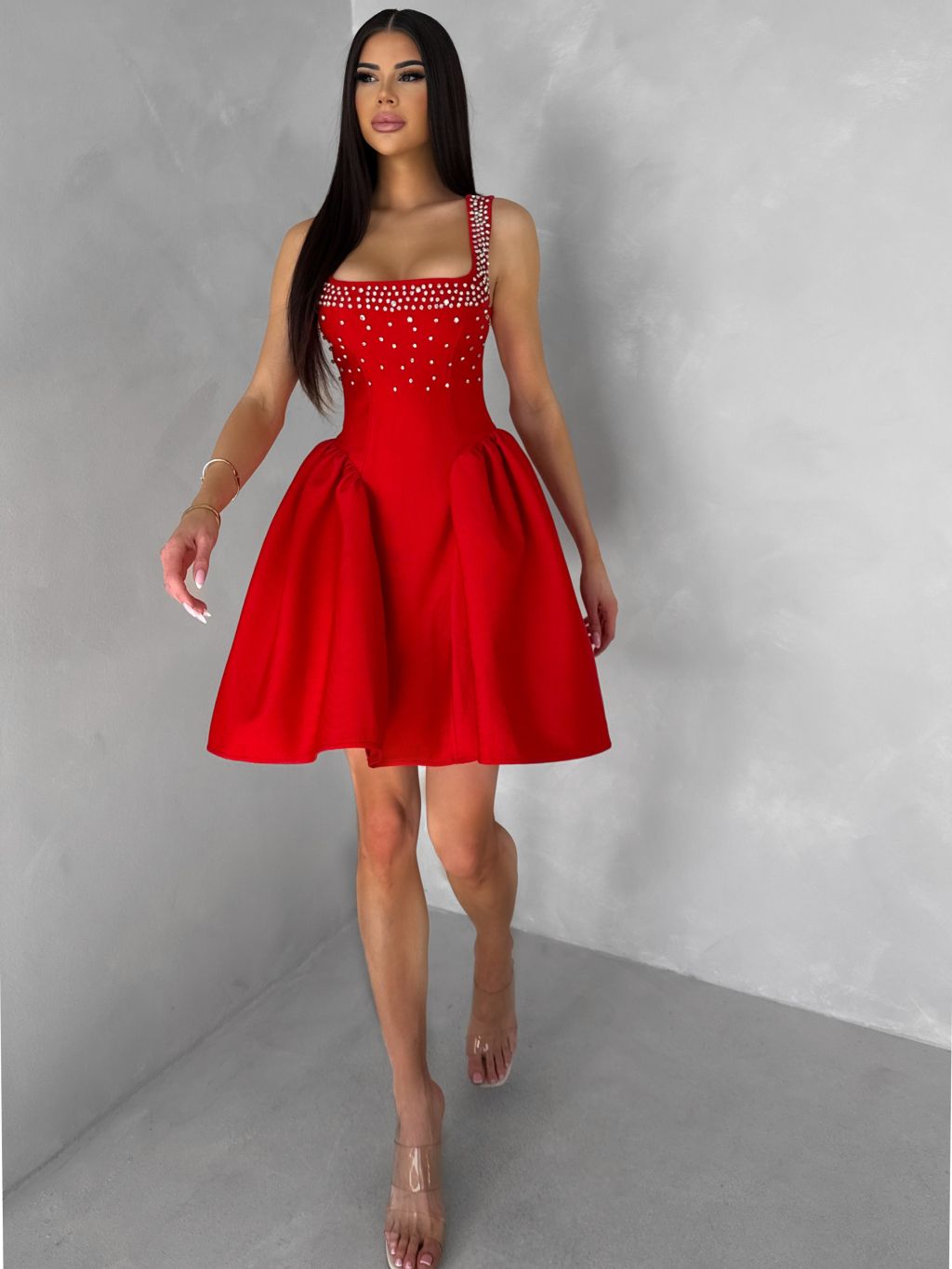 Červené krátke vypasované áčkové šaty MIRELYS s kamienkami