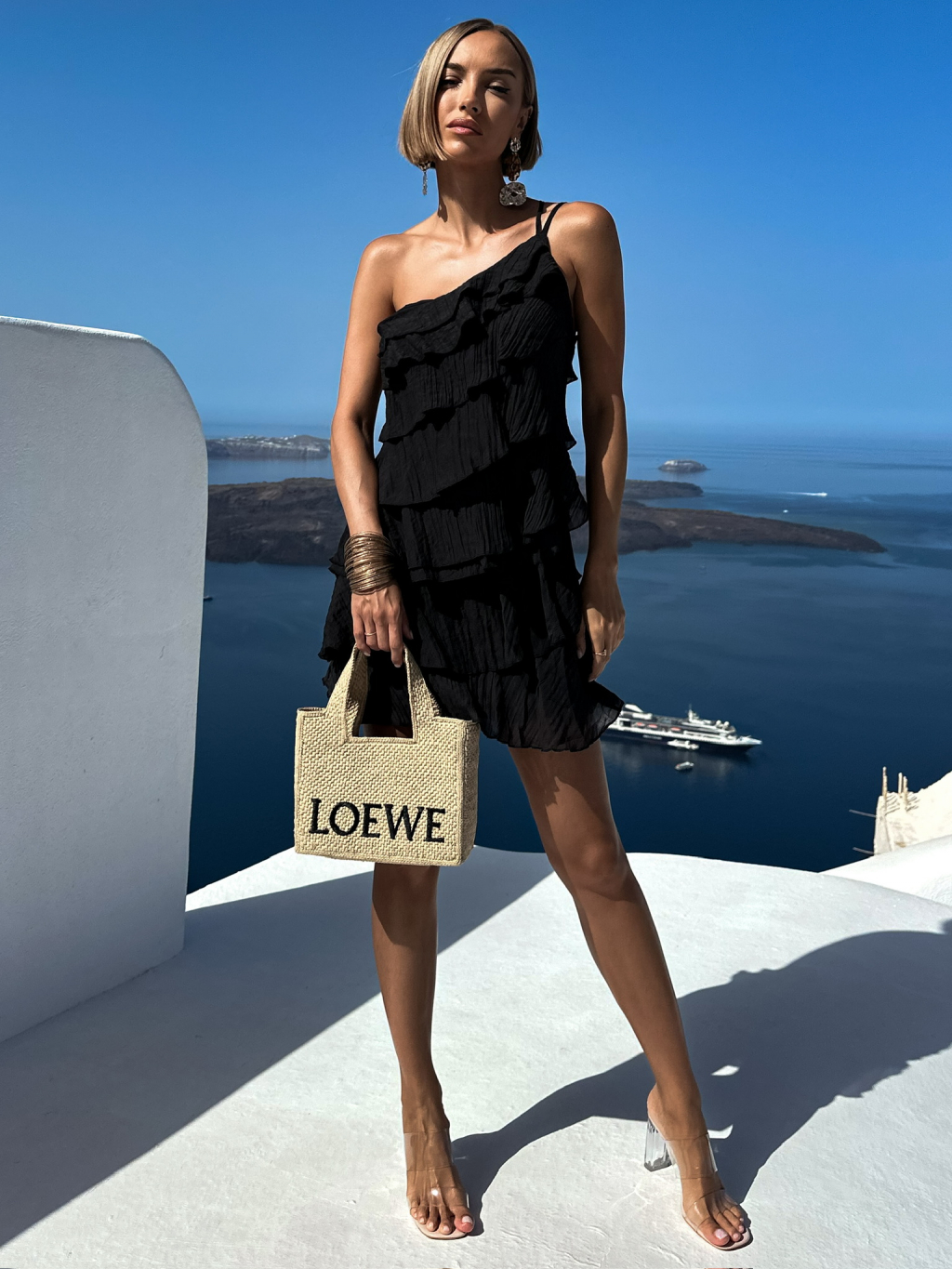 Čierne kokteilové krátke šaty JUJUBE s volánikmi