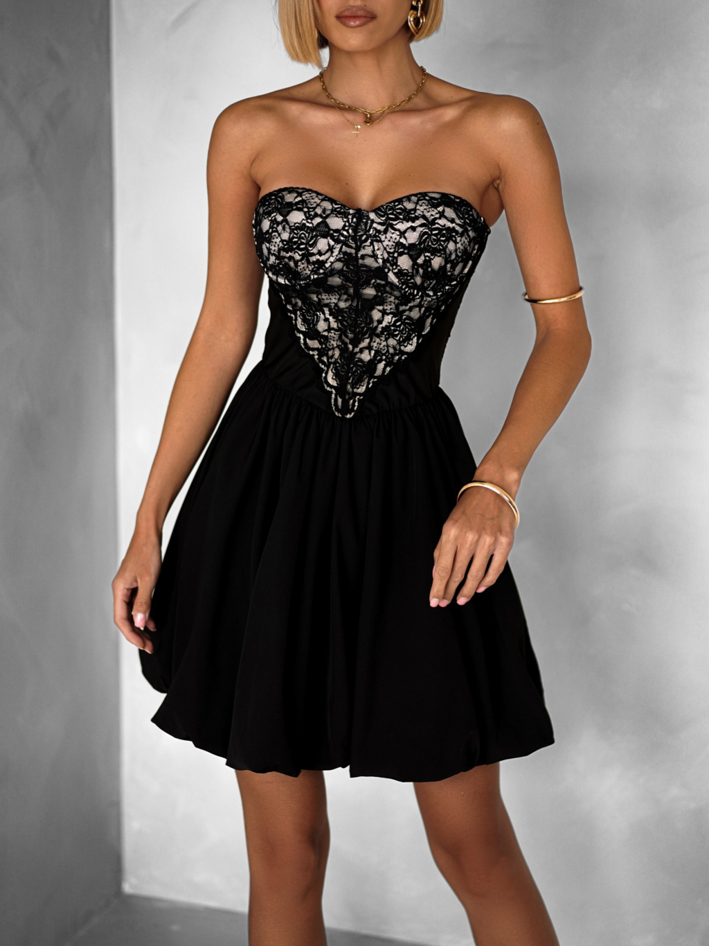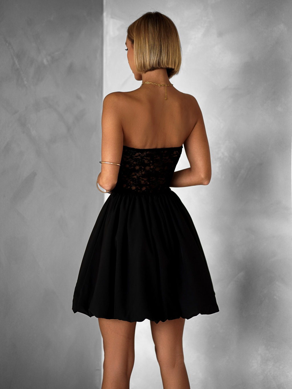 Čierne krátke šaty NAMSOSE s áčkovou sukňou