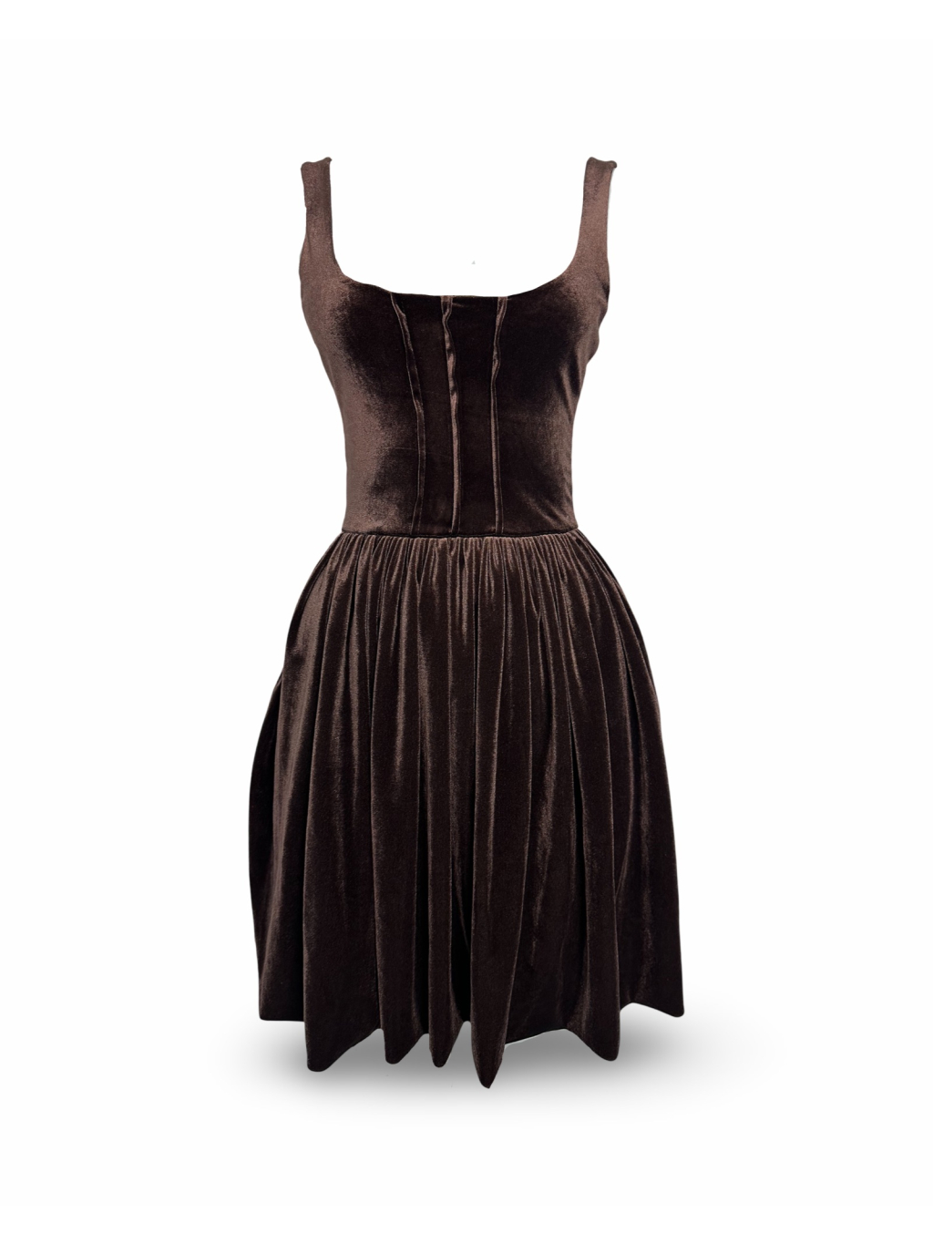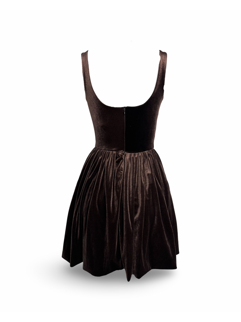 Hnedé krátke zamatové kokteilové šaty KALLIAS