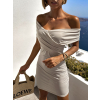 Krémové mini šaty KORALENE cez ramená