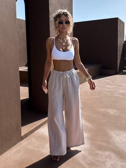 Svetlé wide leg široké roztrhané džínsy FAUTEL