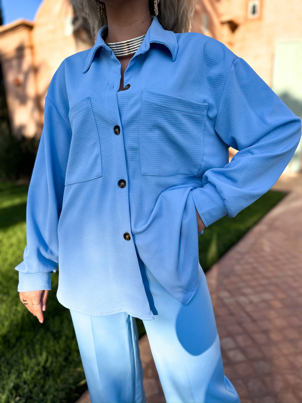 Modrá oversize košeľa LAILAPS dlhým rukávom