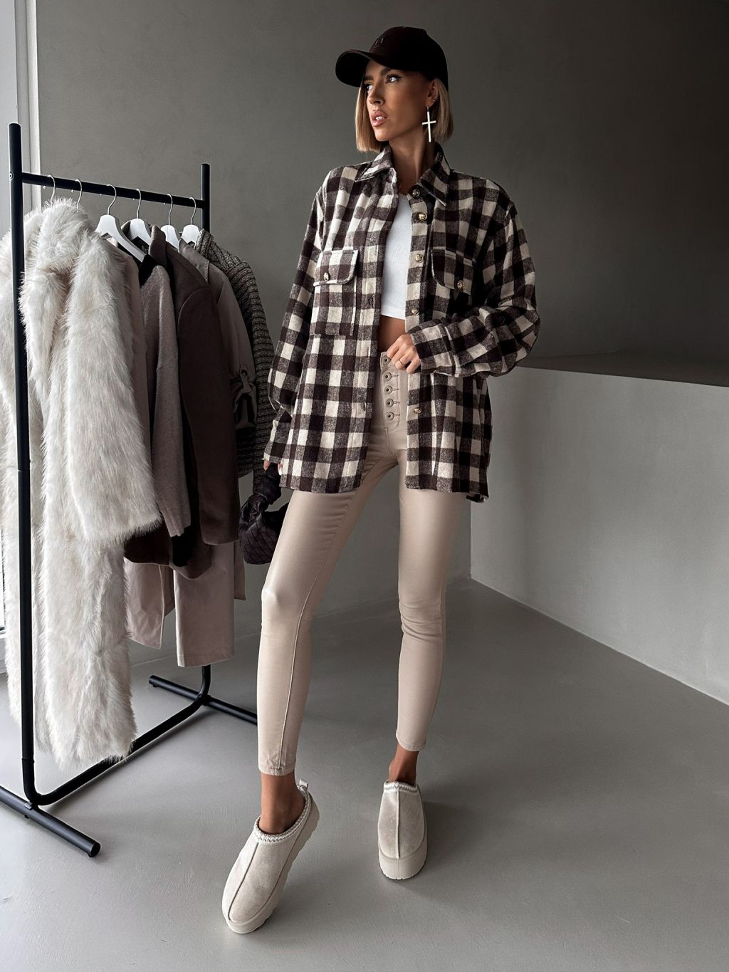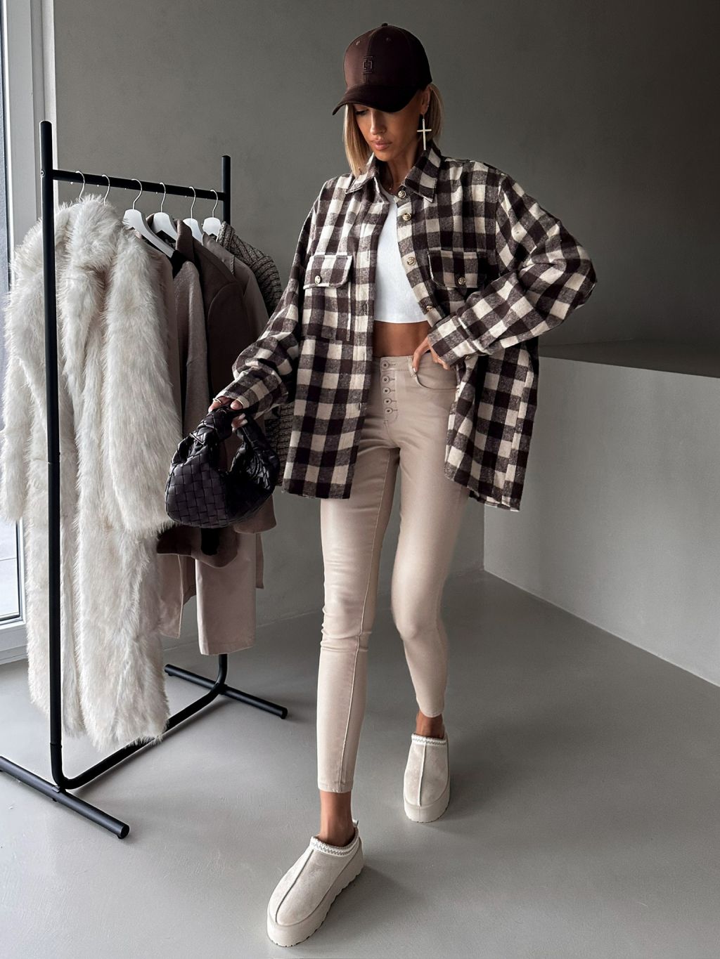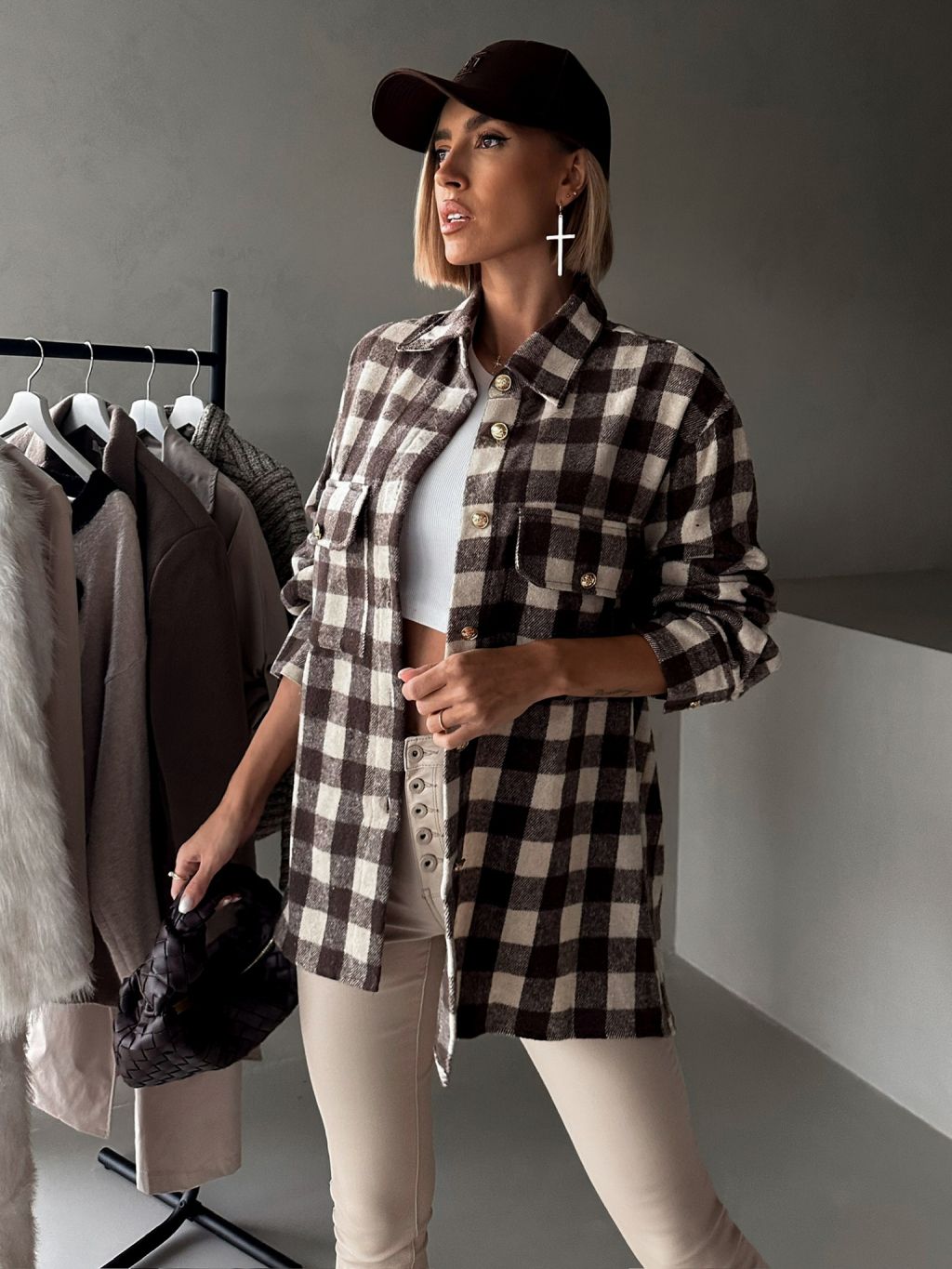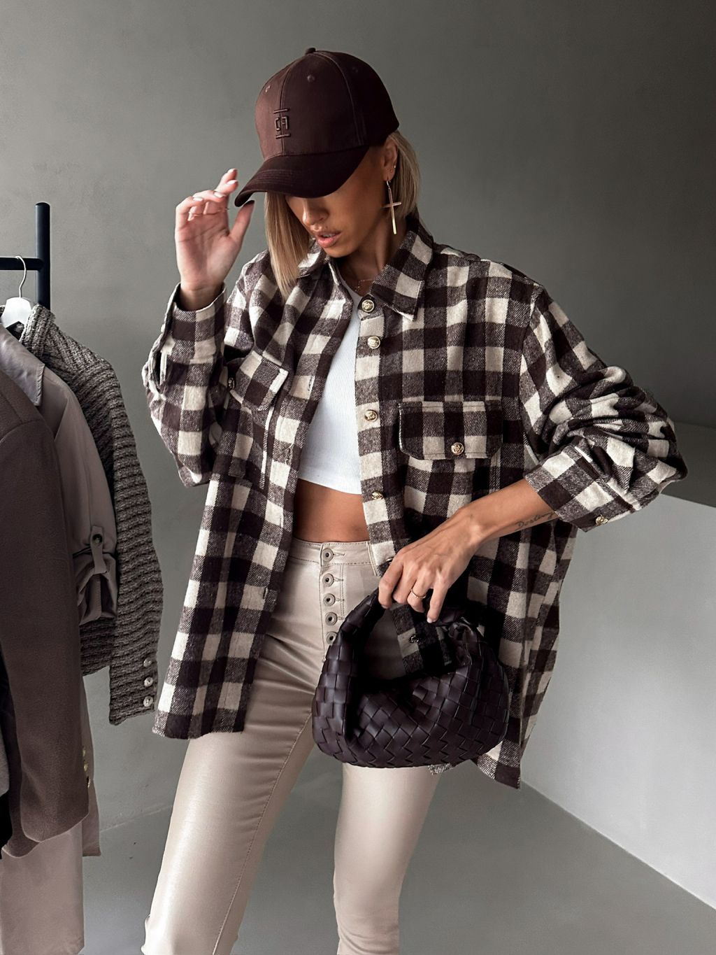 Hnedá kockovaná károvaná košeľa ELMIRET