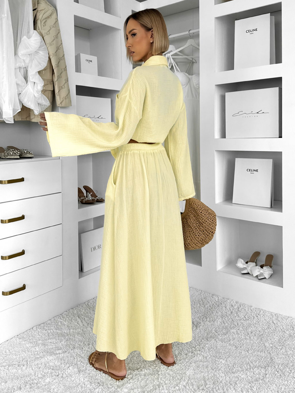 Žltý mušelínový košeľový komplet BELIANE so sukňou