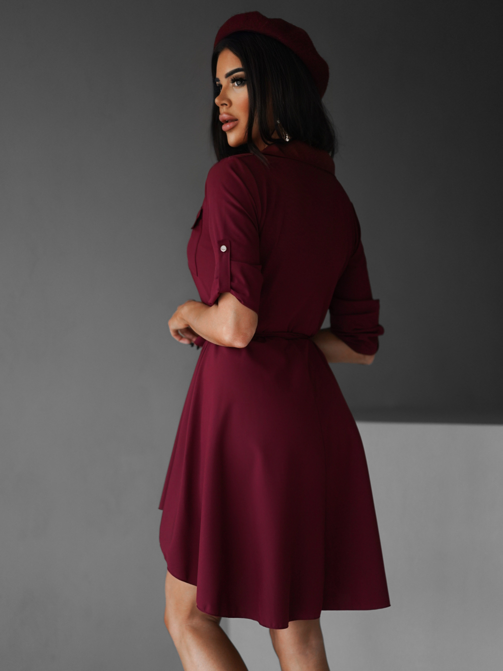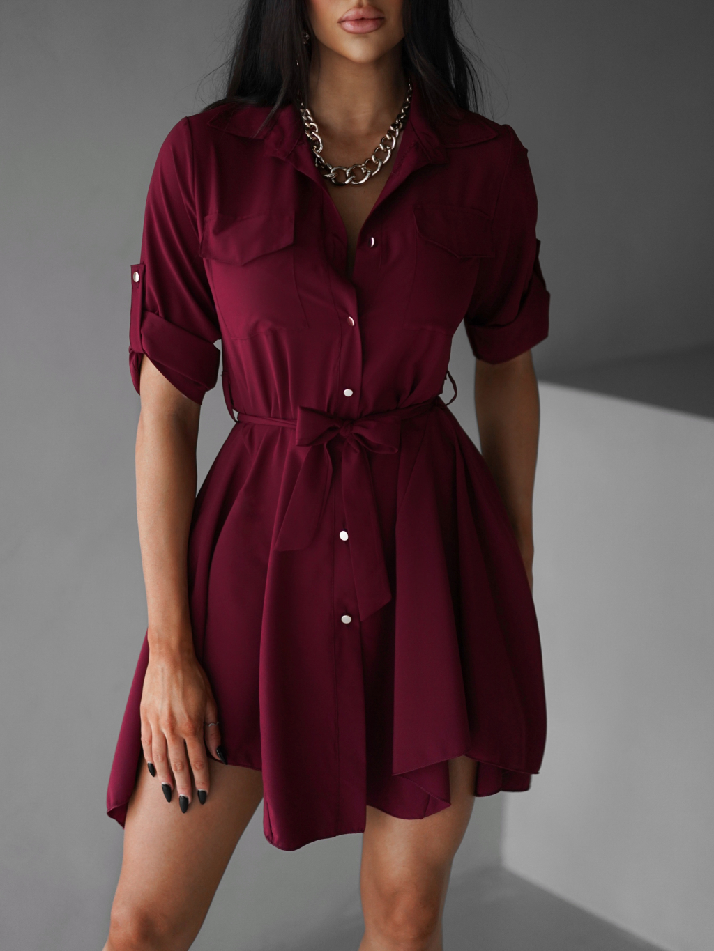 Bordó lehké šaty FOGGY s knoflíky