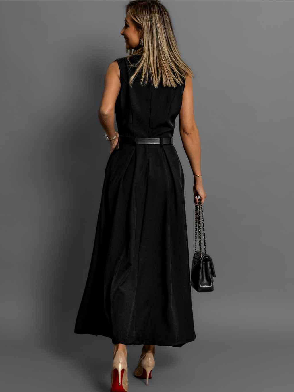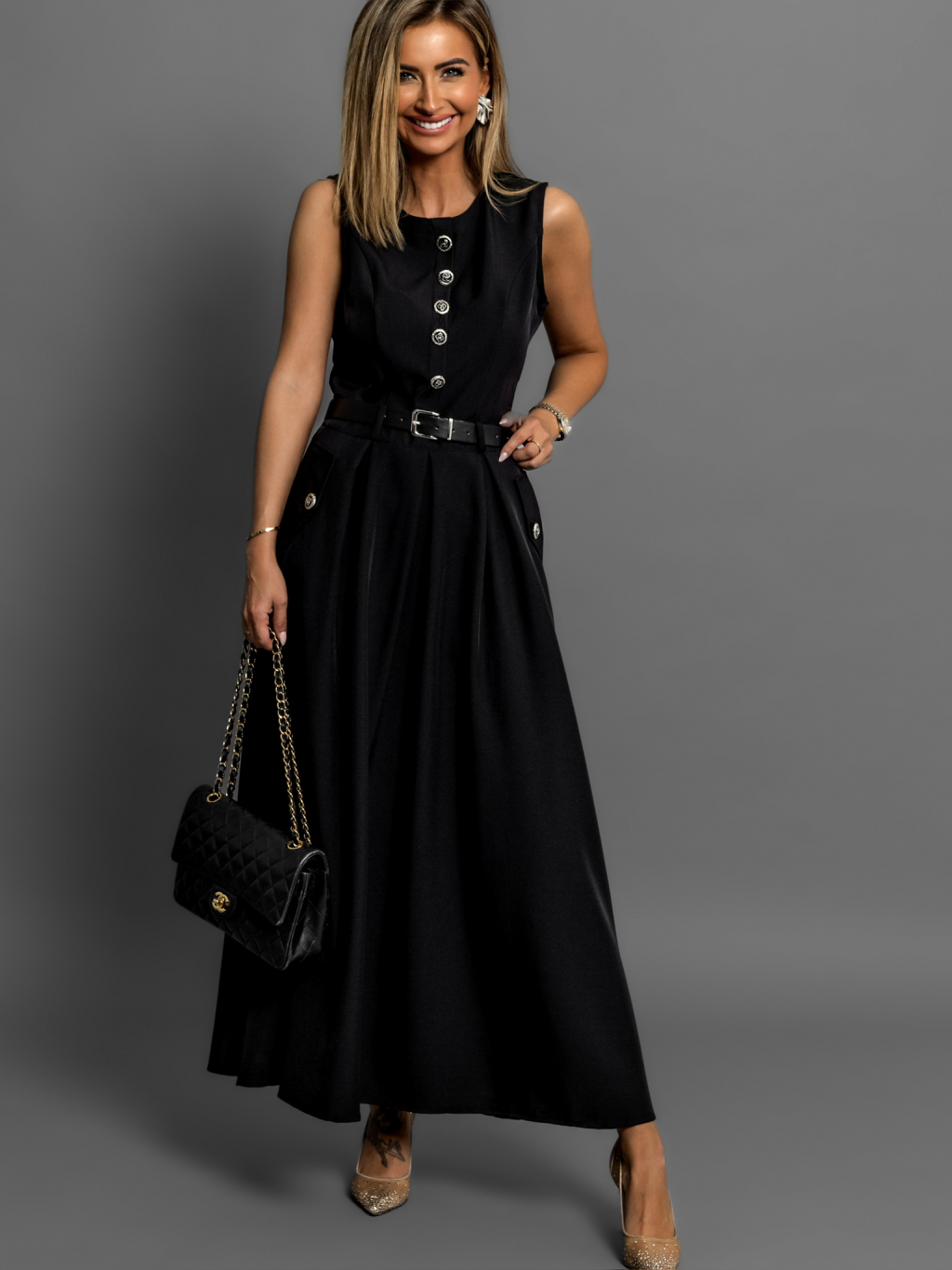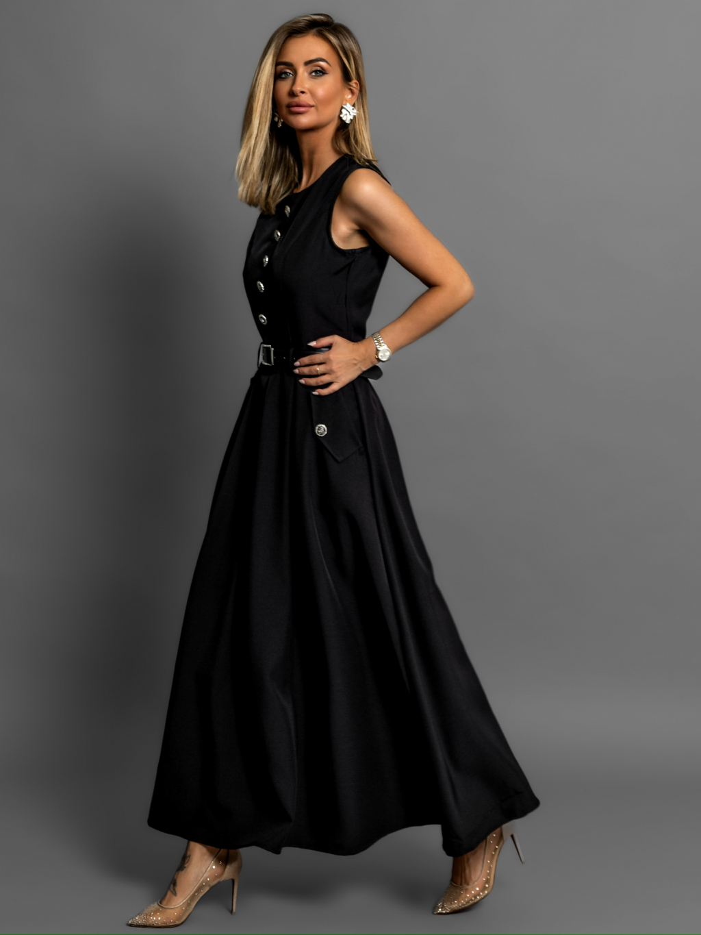Čierne dlhé košeľové šaty CLAUDIO bez rukávov