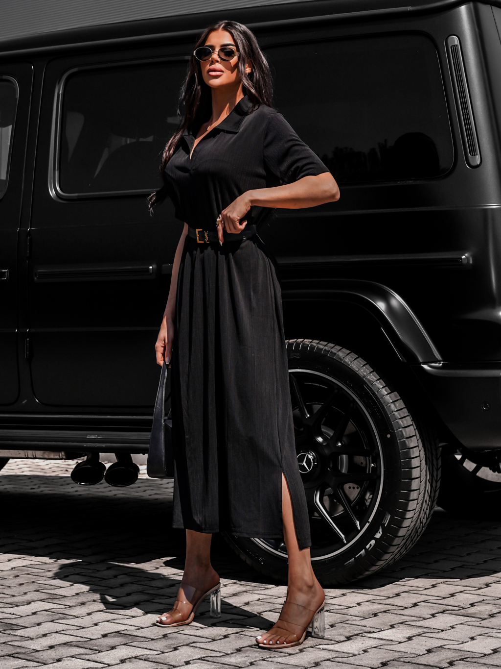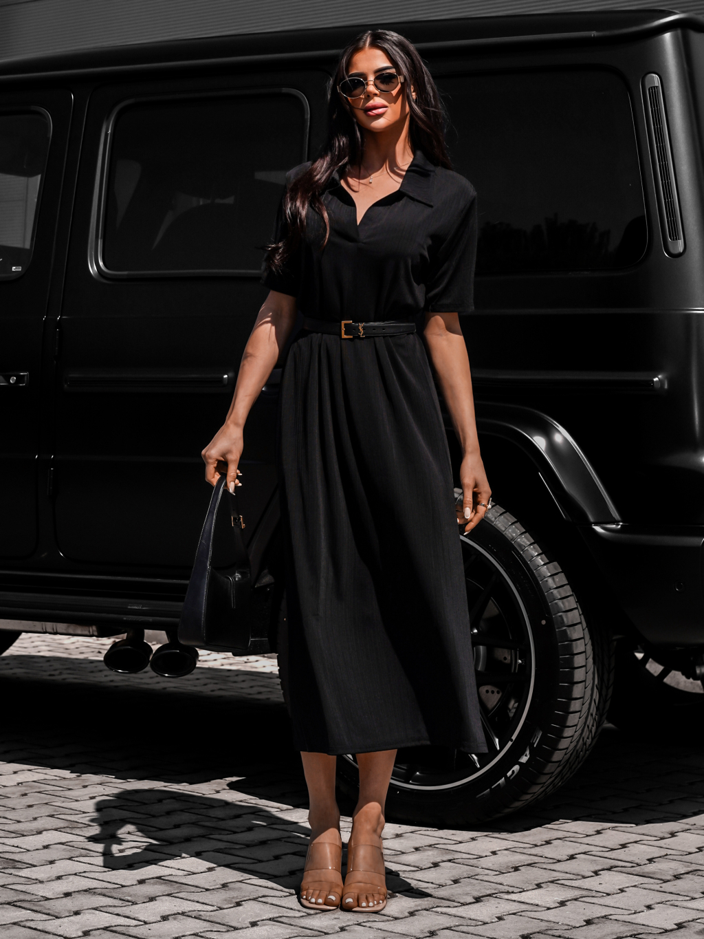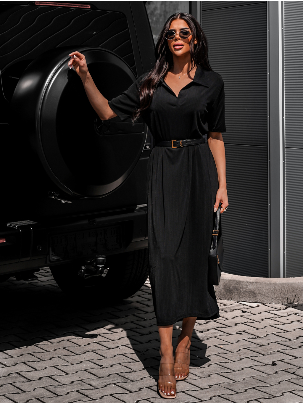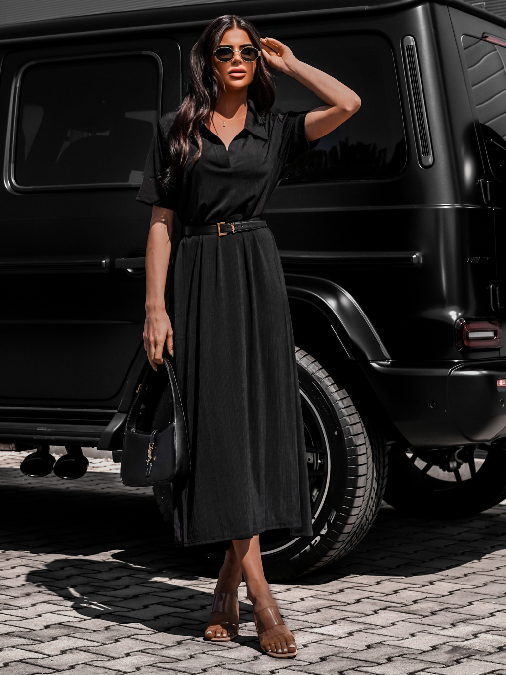 Čierne košeľové dlhé šaty BARCINE s golierom