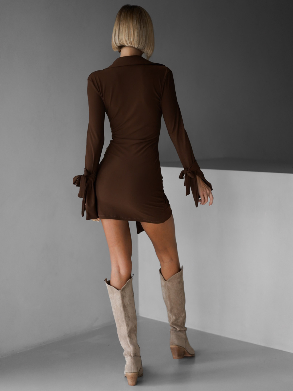 Hnedé košeľové krátke šaty MADOC