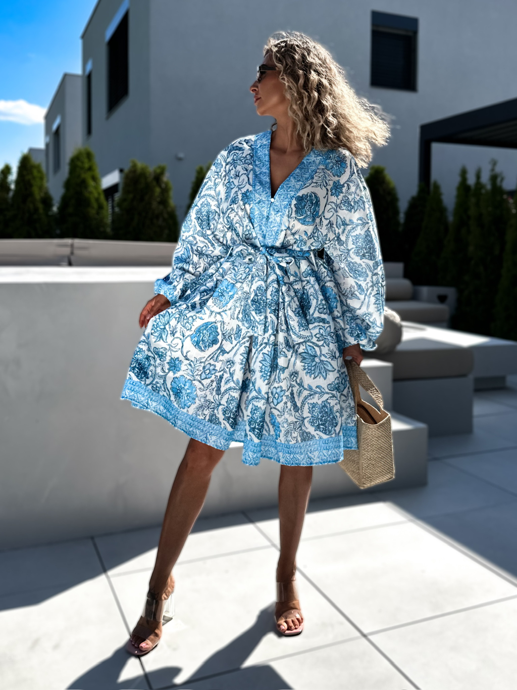 Modré bavlnené boho šaty MARULA s ornamentmi