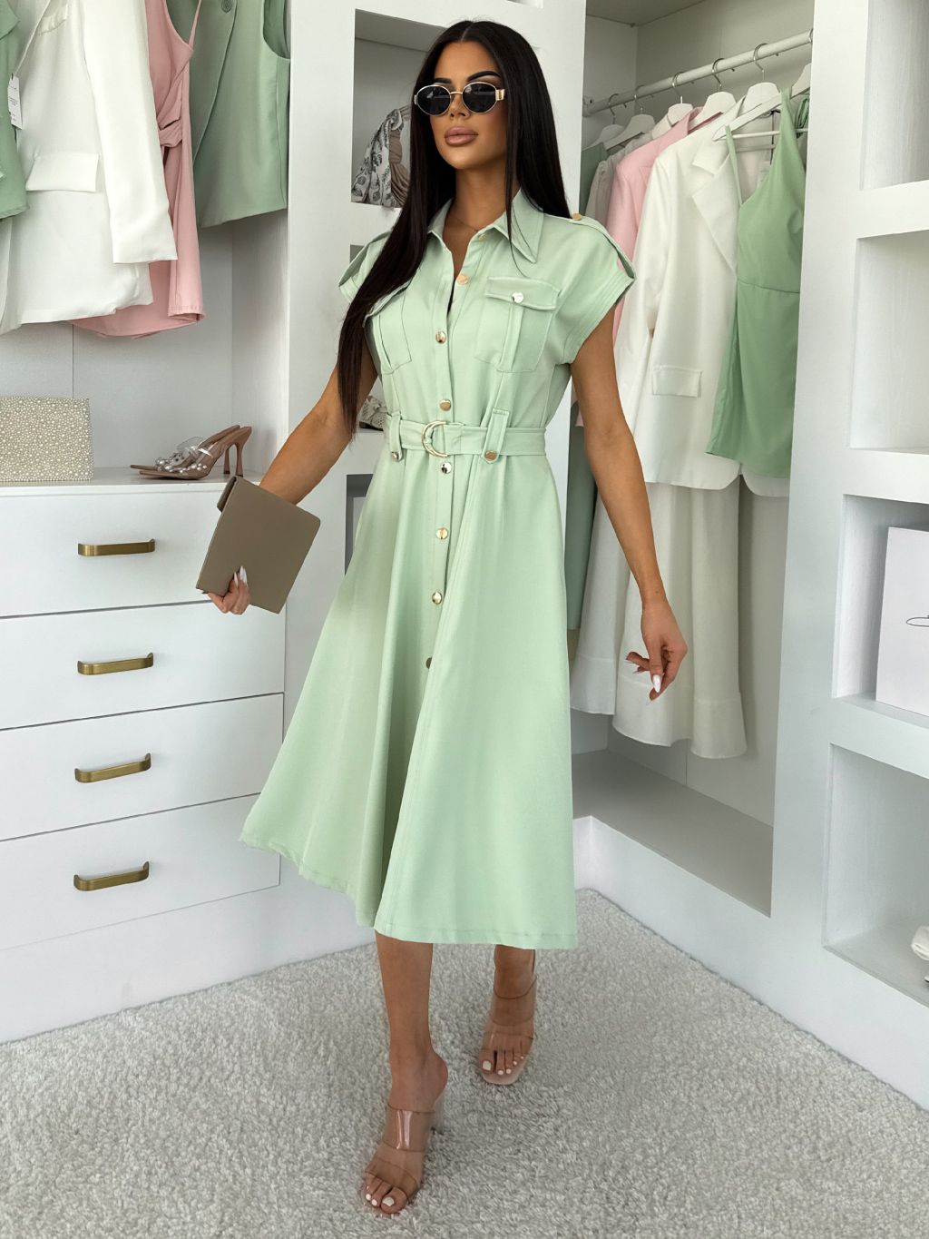 Svetlo zelené košeľové midi šaty VEXTURA