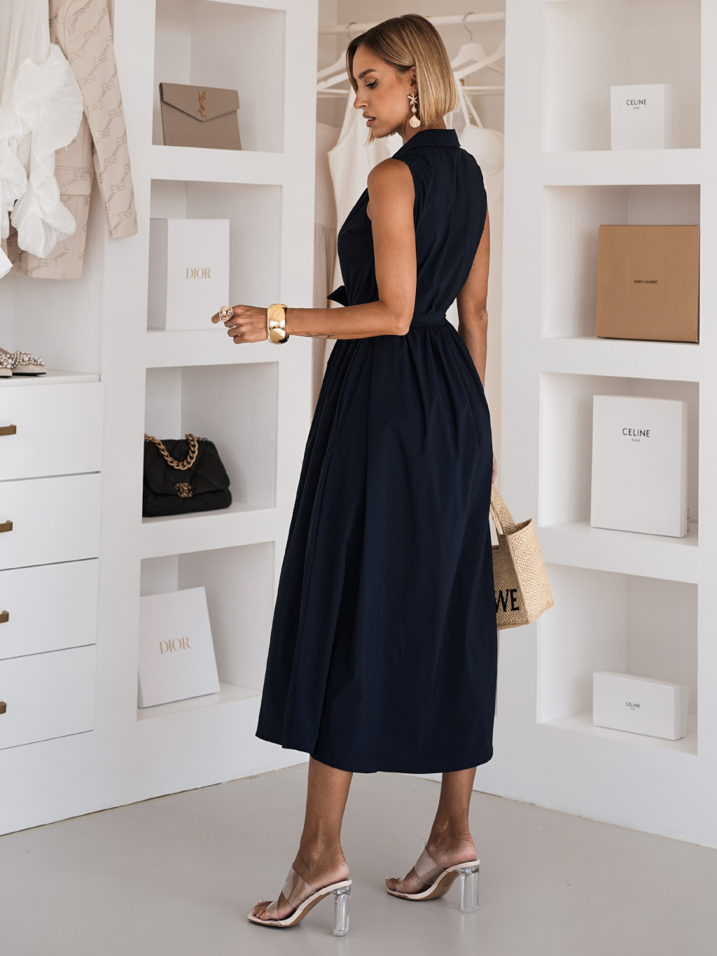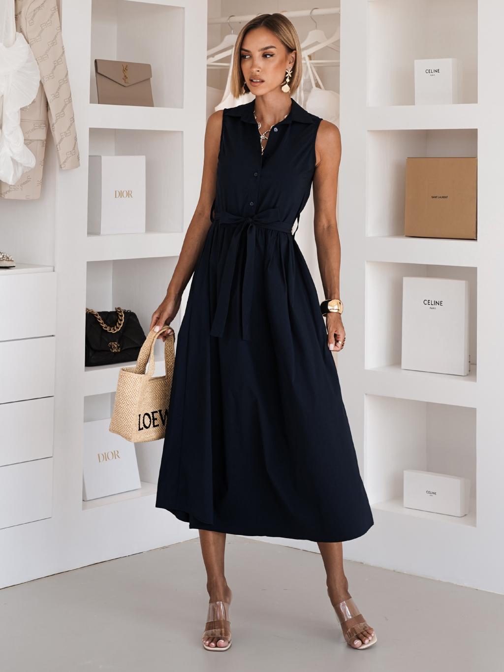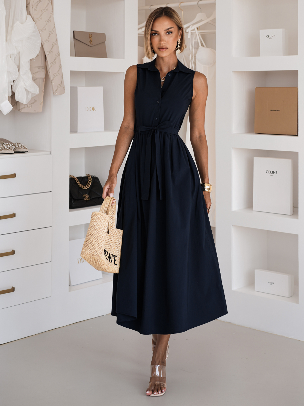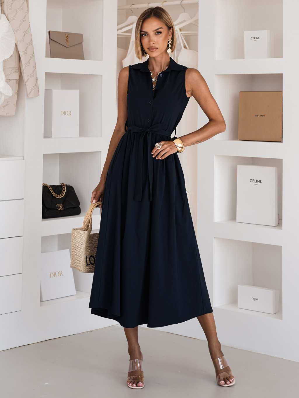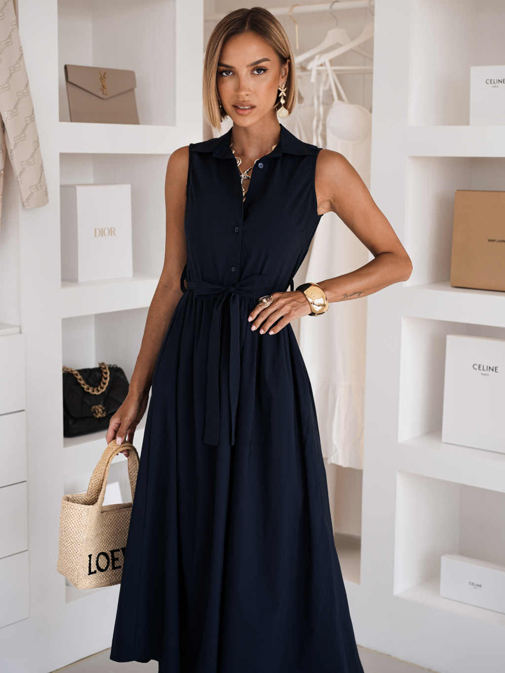 Tmavomodré košeľové dlhé letné šaty FLORINELLE