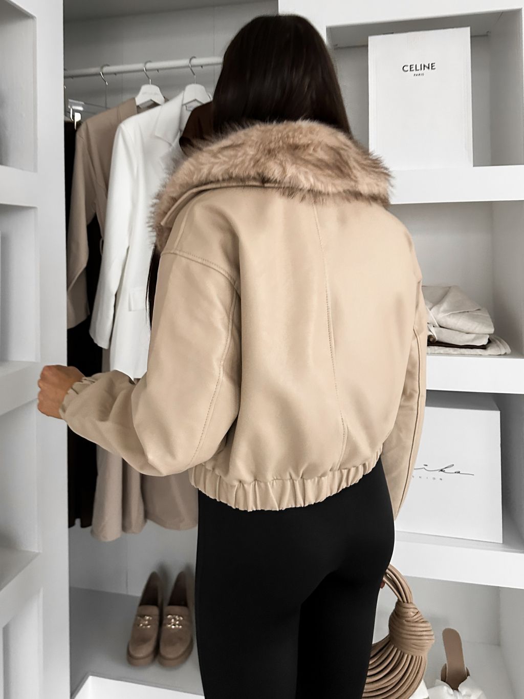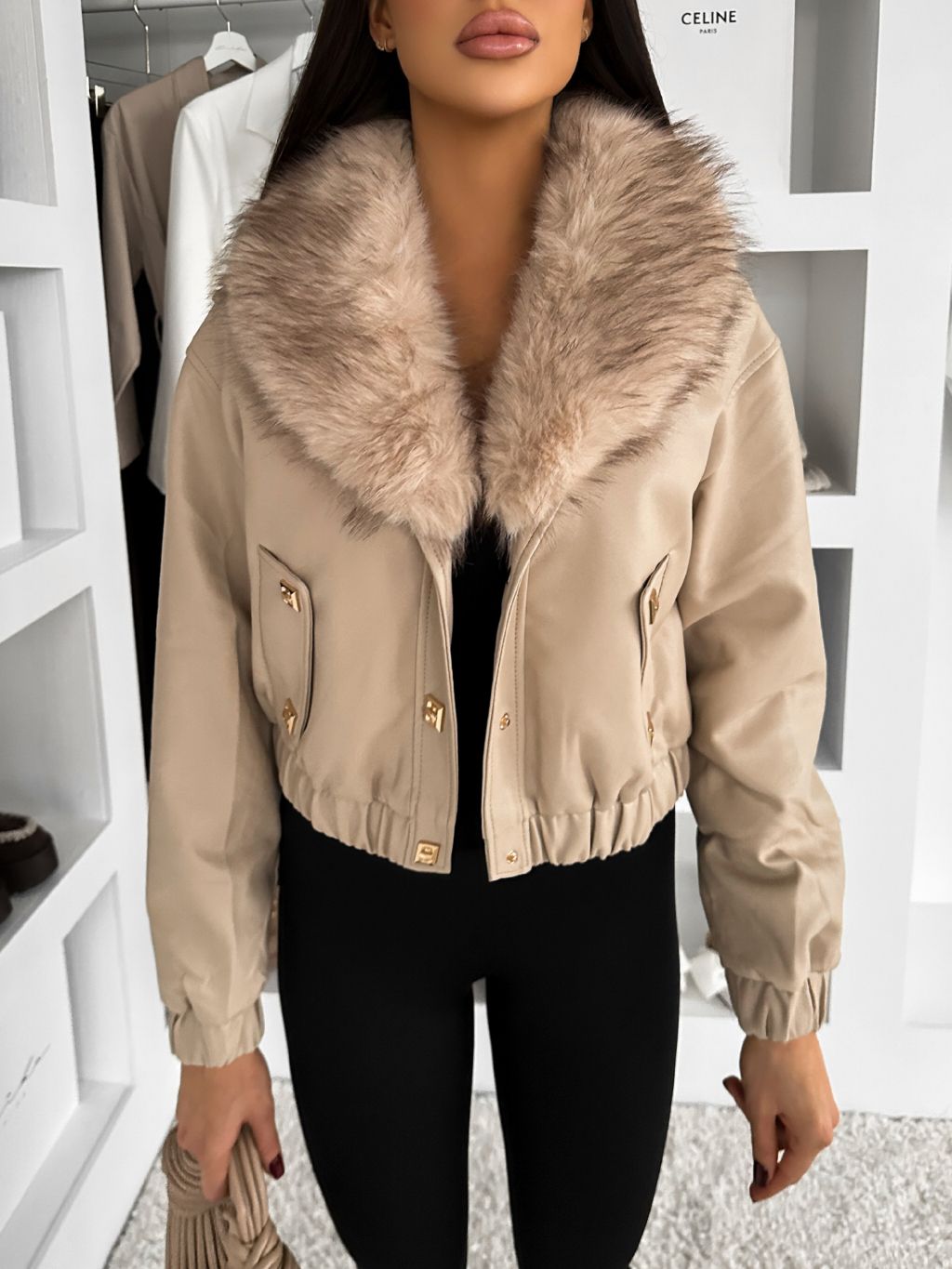 Béžová koženková bunda VERNALIS s kožušinkou