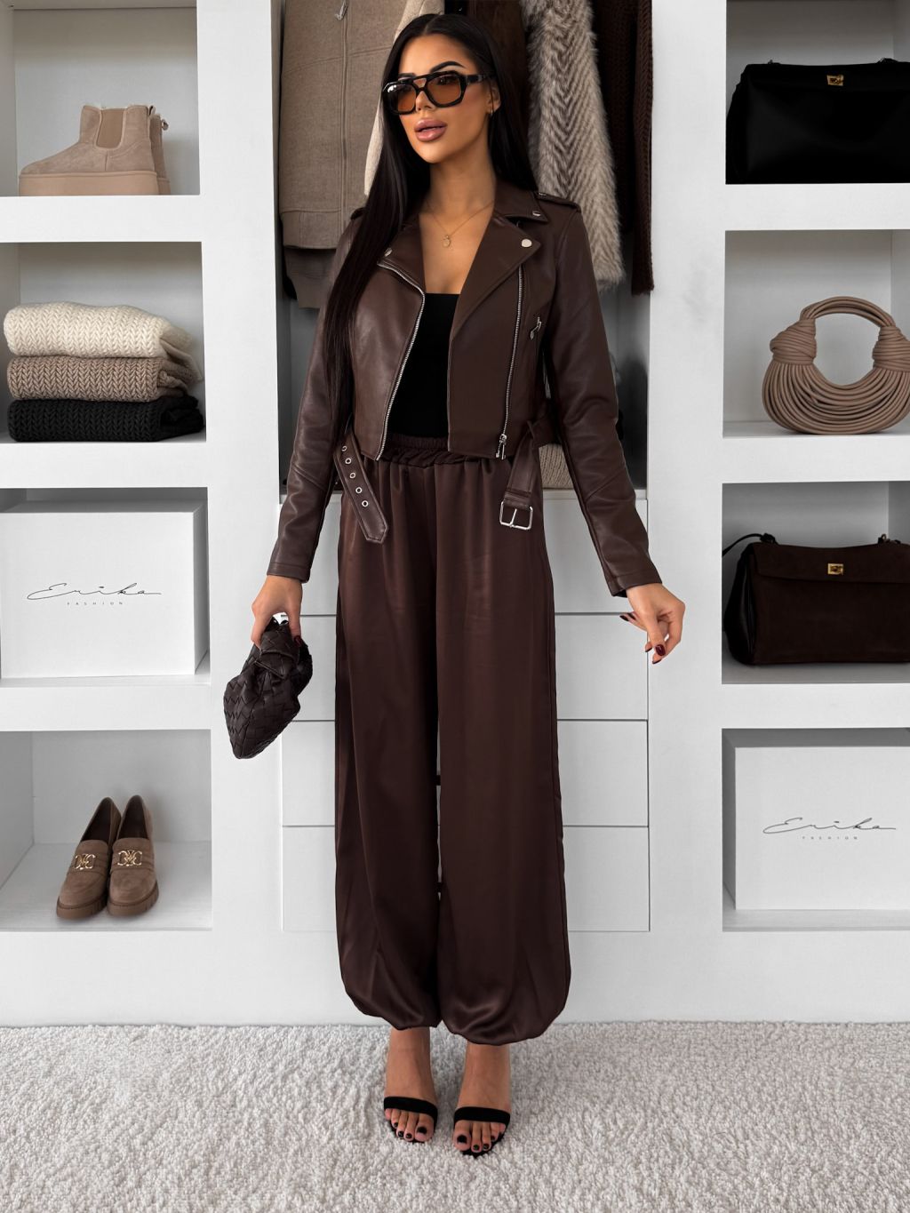 Hnedá koženková biker bunda SOLVENA