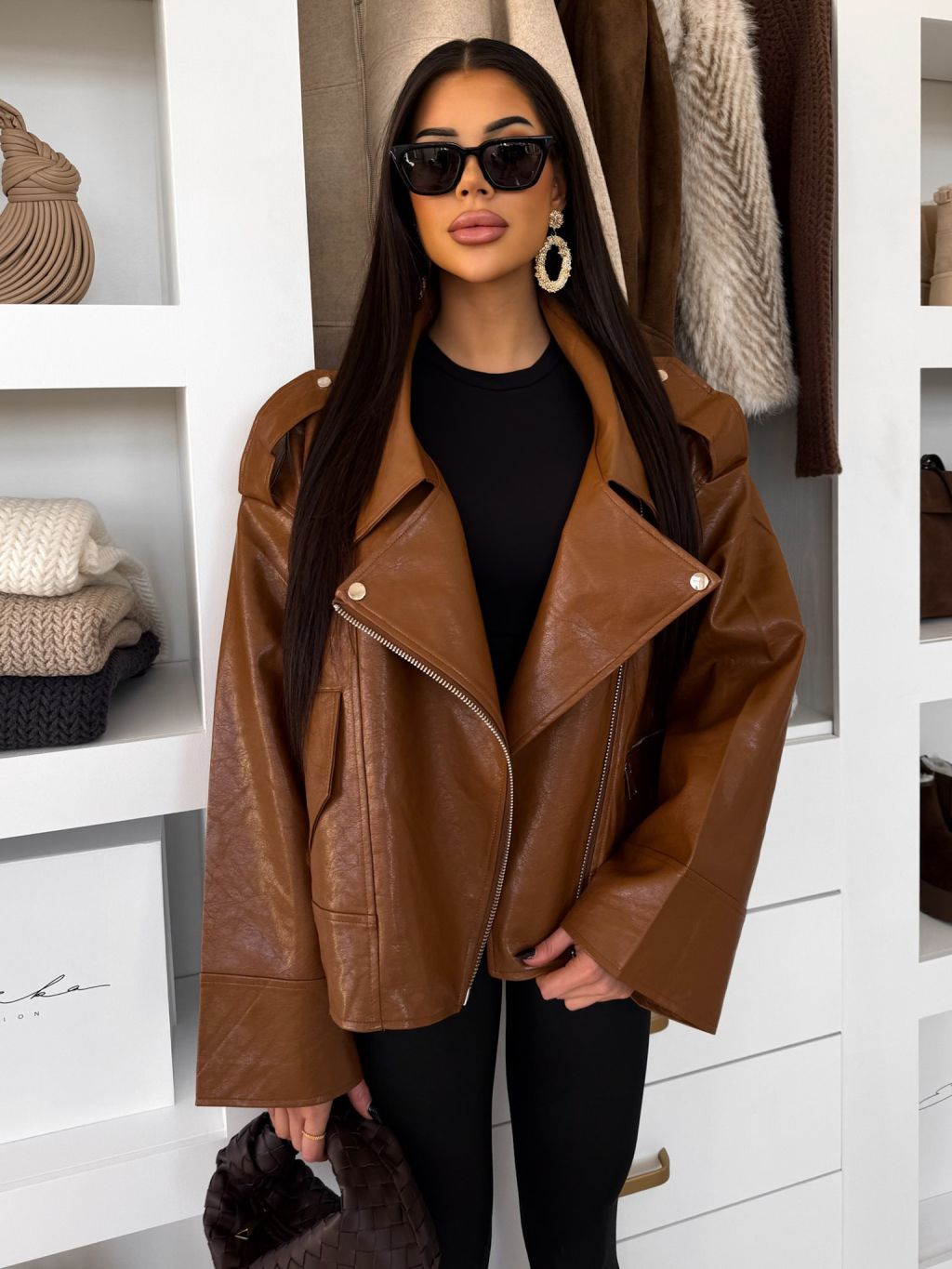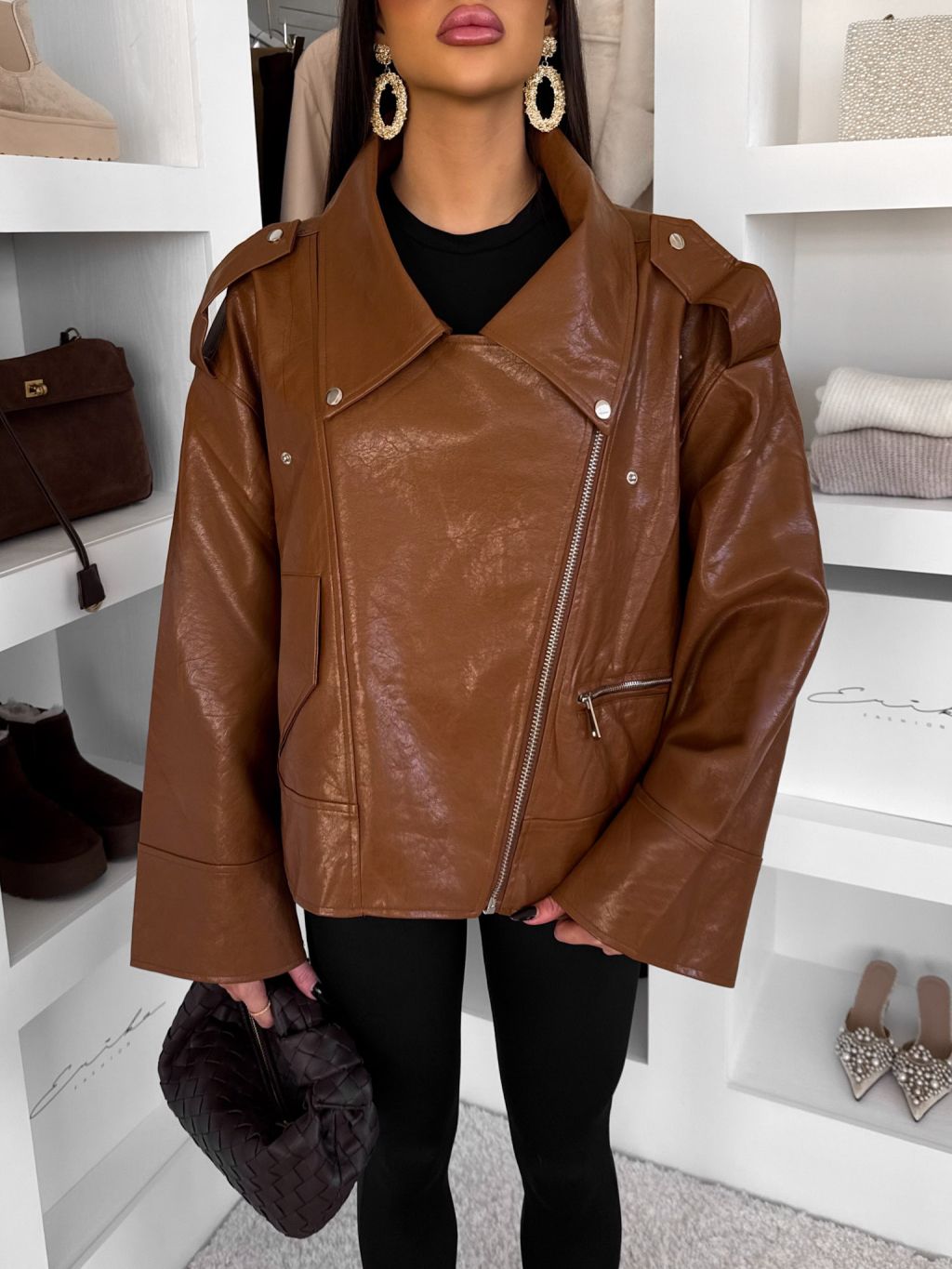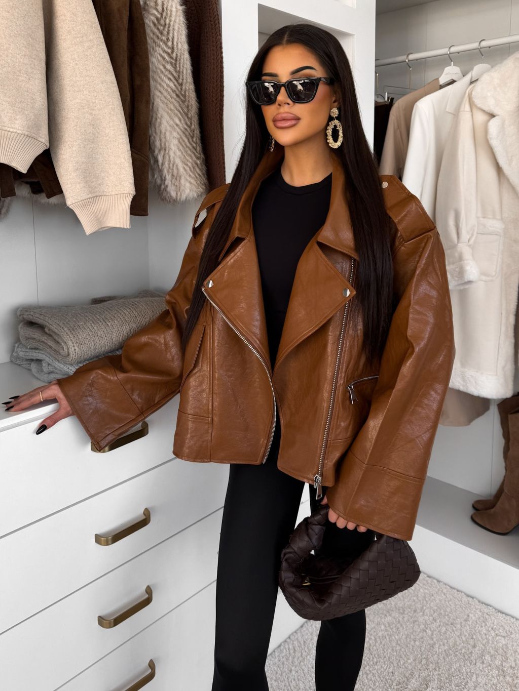 Hnedá koženková oversize biker bunda DRAVINO