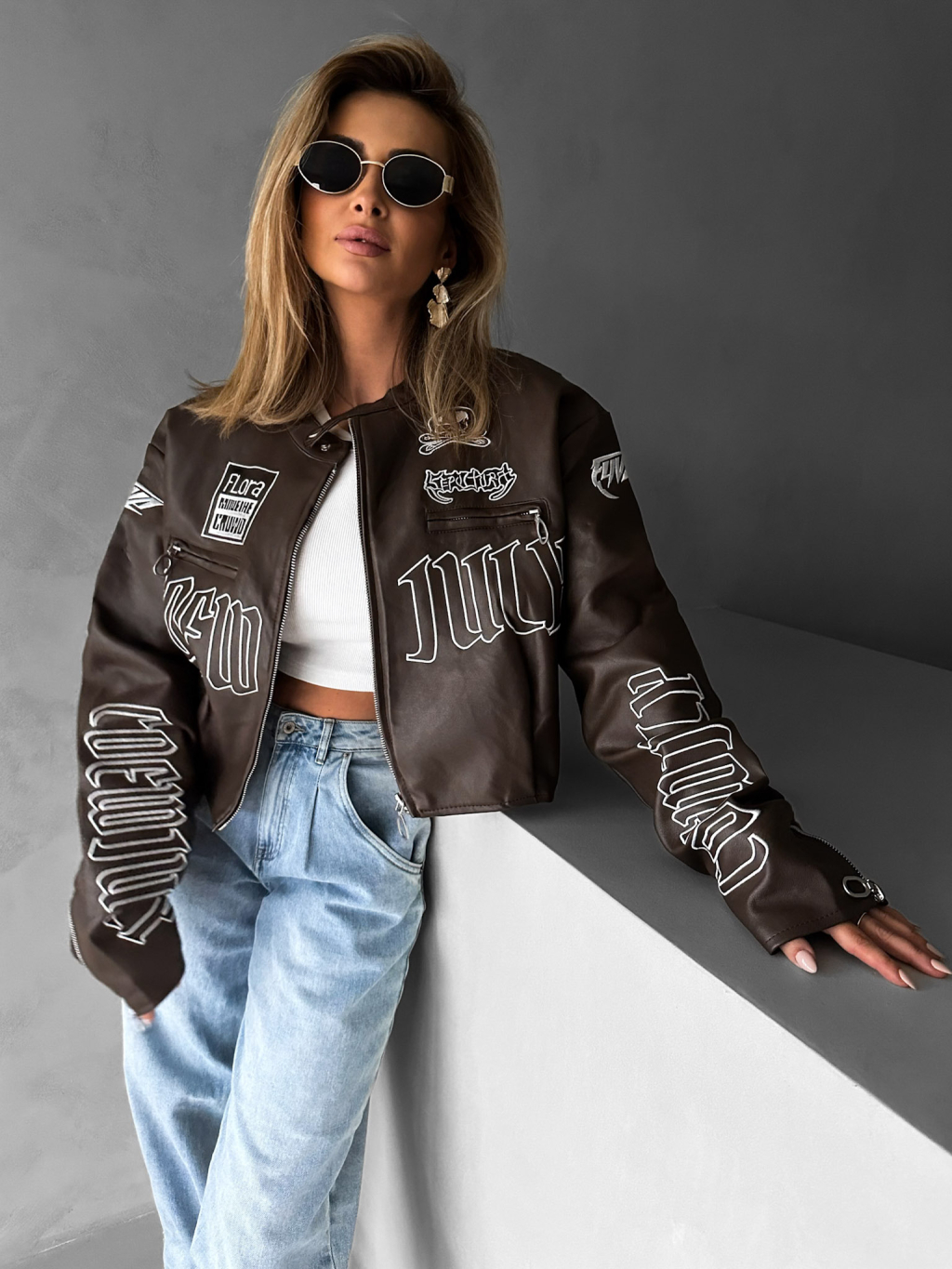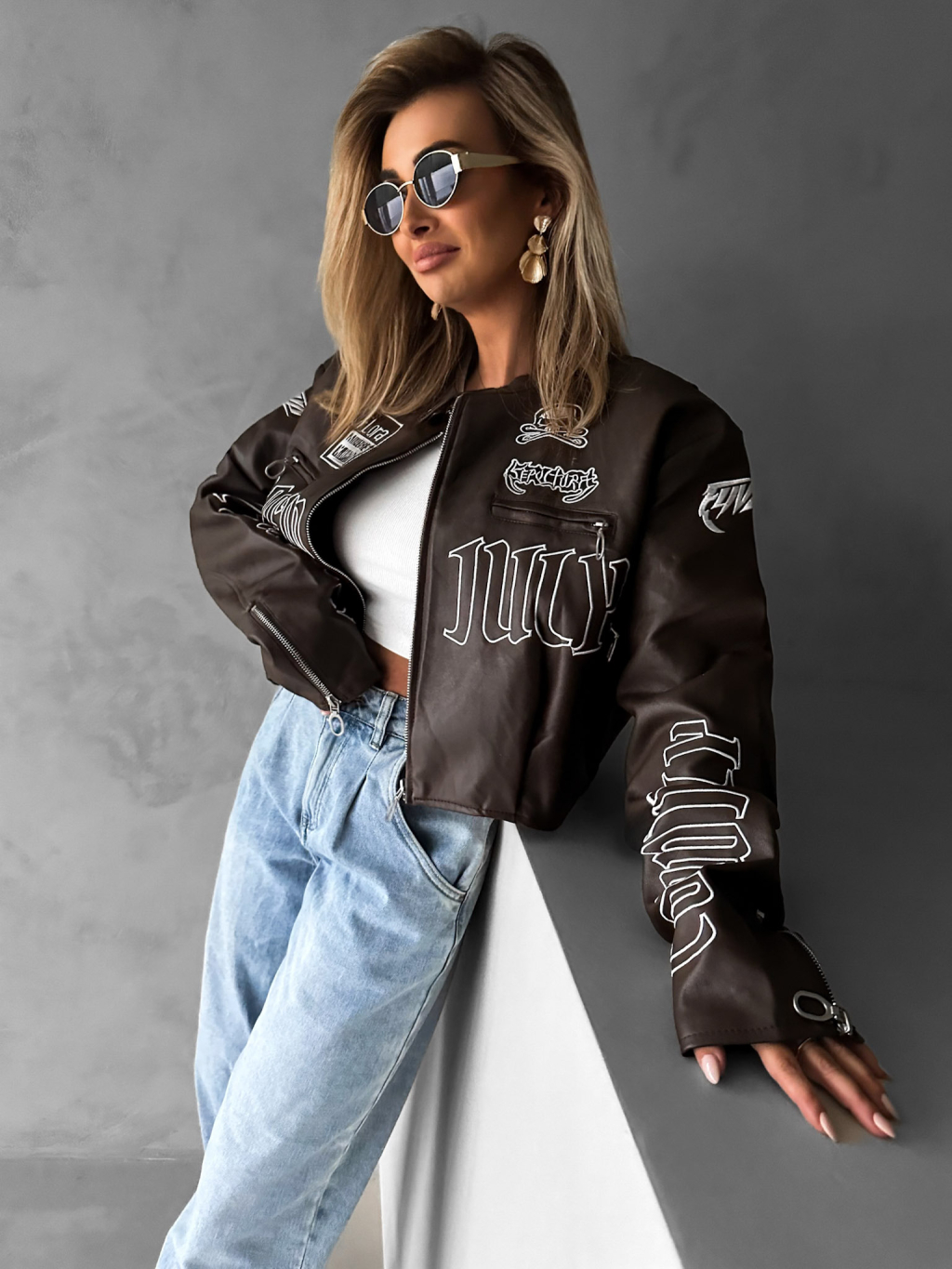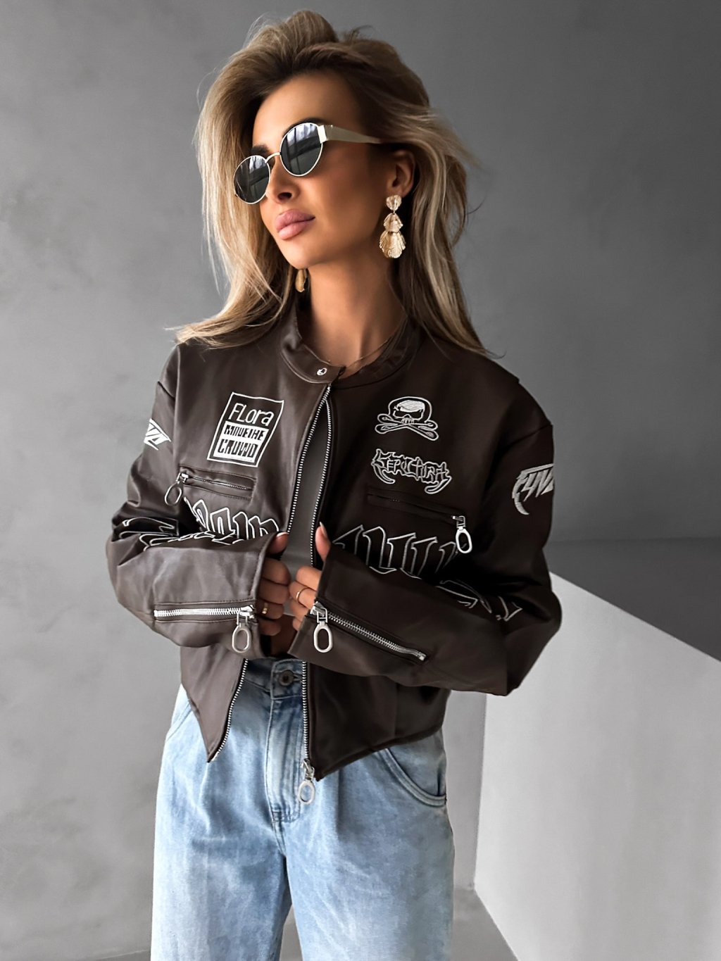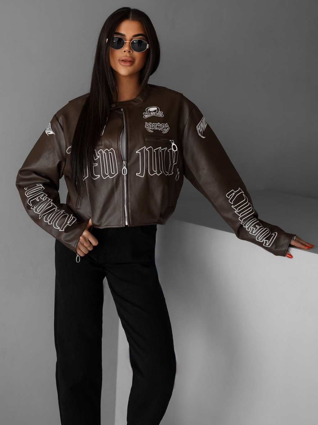 Hnedá krátka koženková biker moto bunda BRONWEN