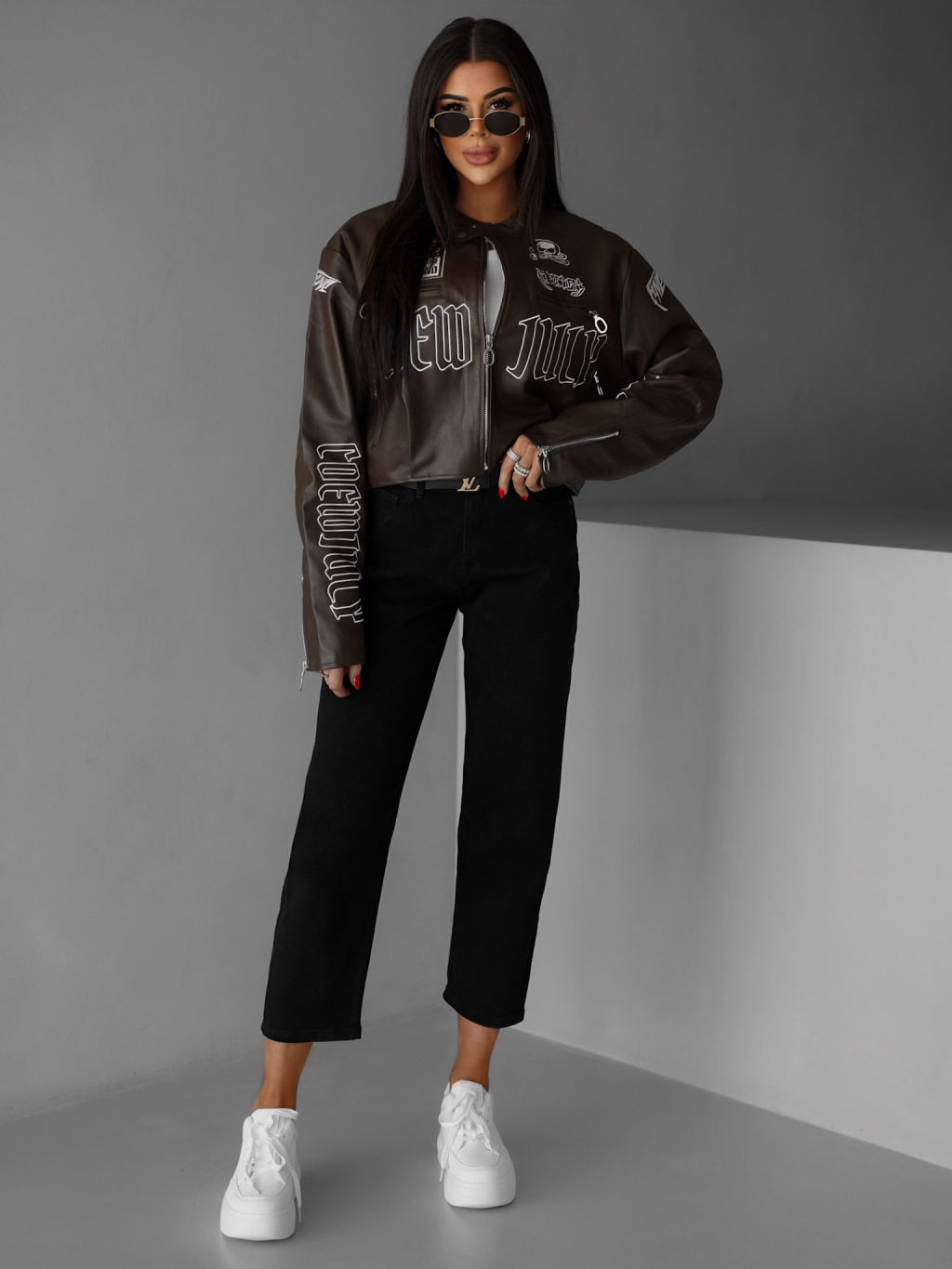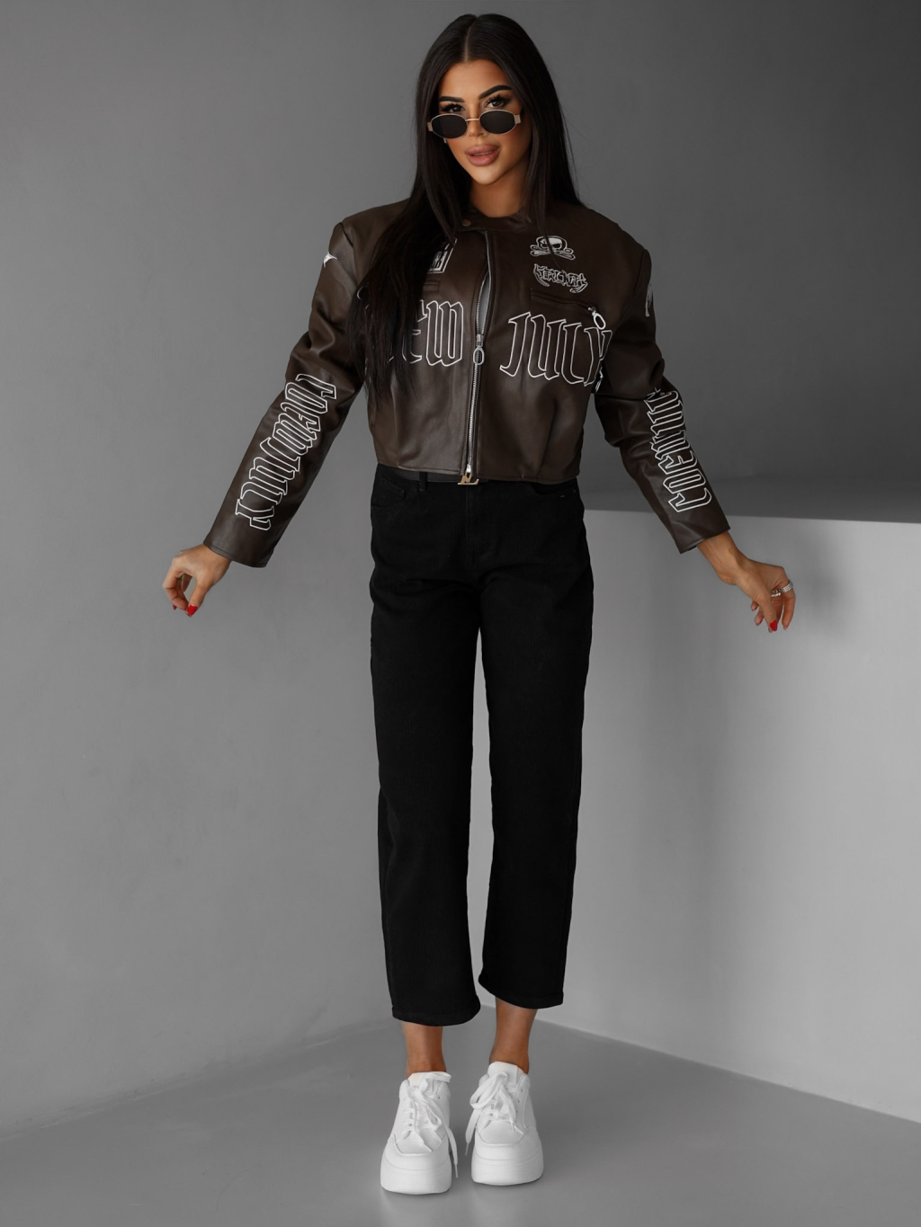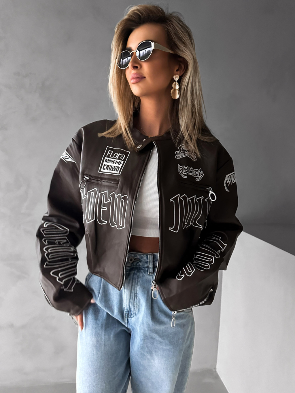 Hnedá krátka koženková biker moto bunda BRONWEN