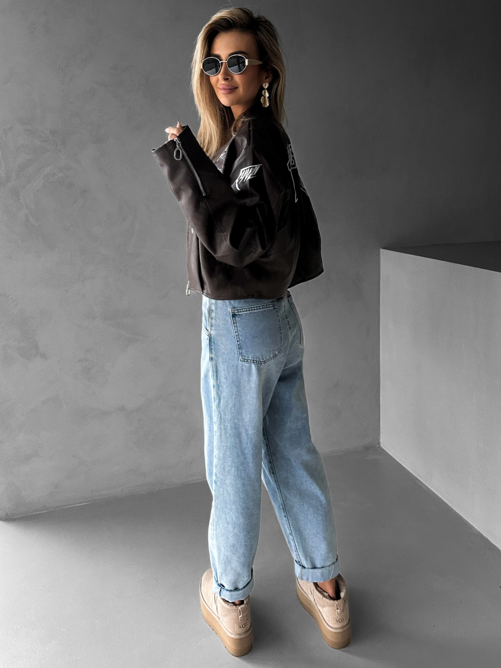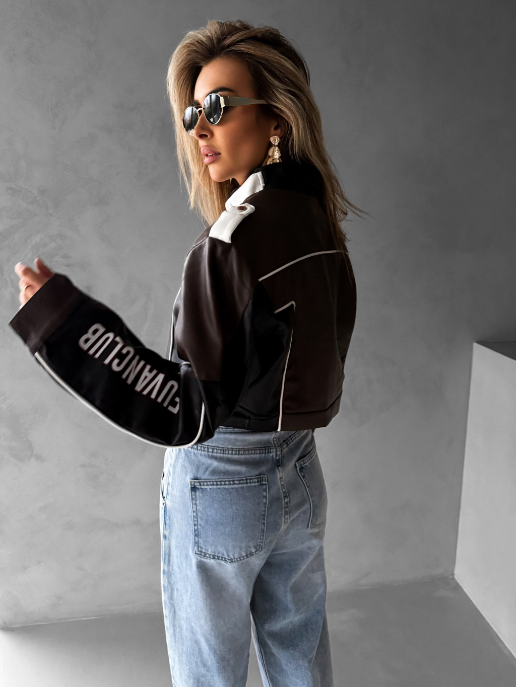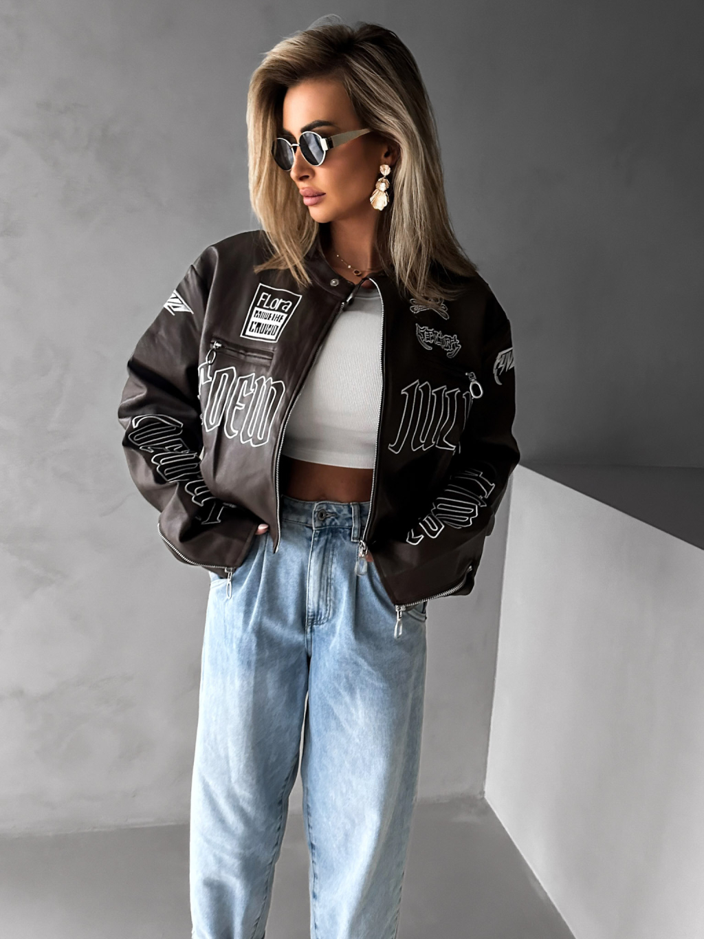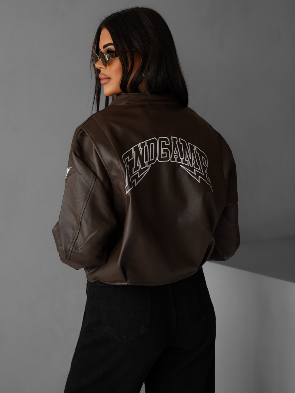 Hnedá krátka koženková biker moto bunda BRONWEN