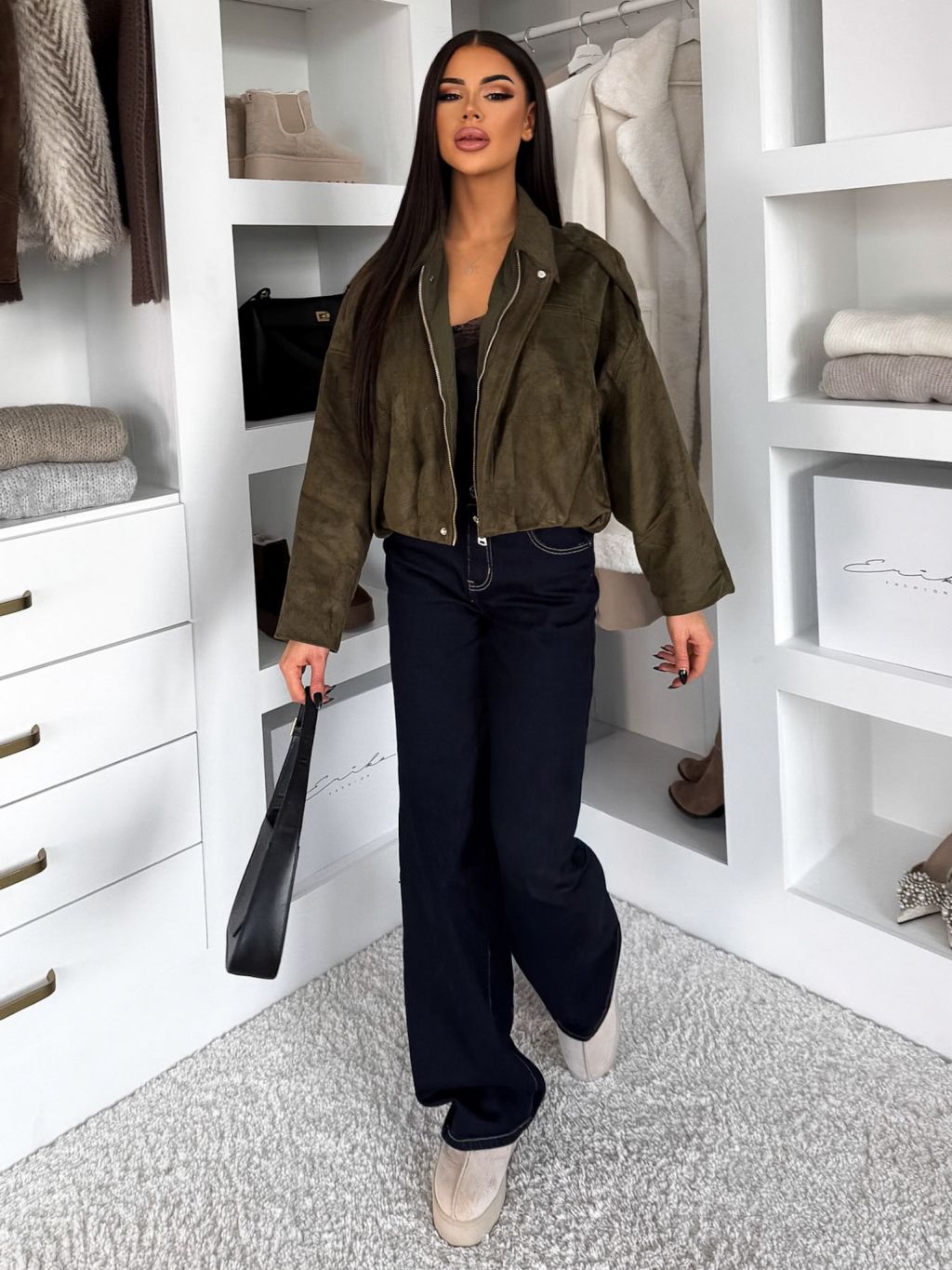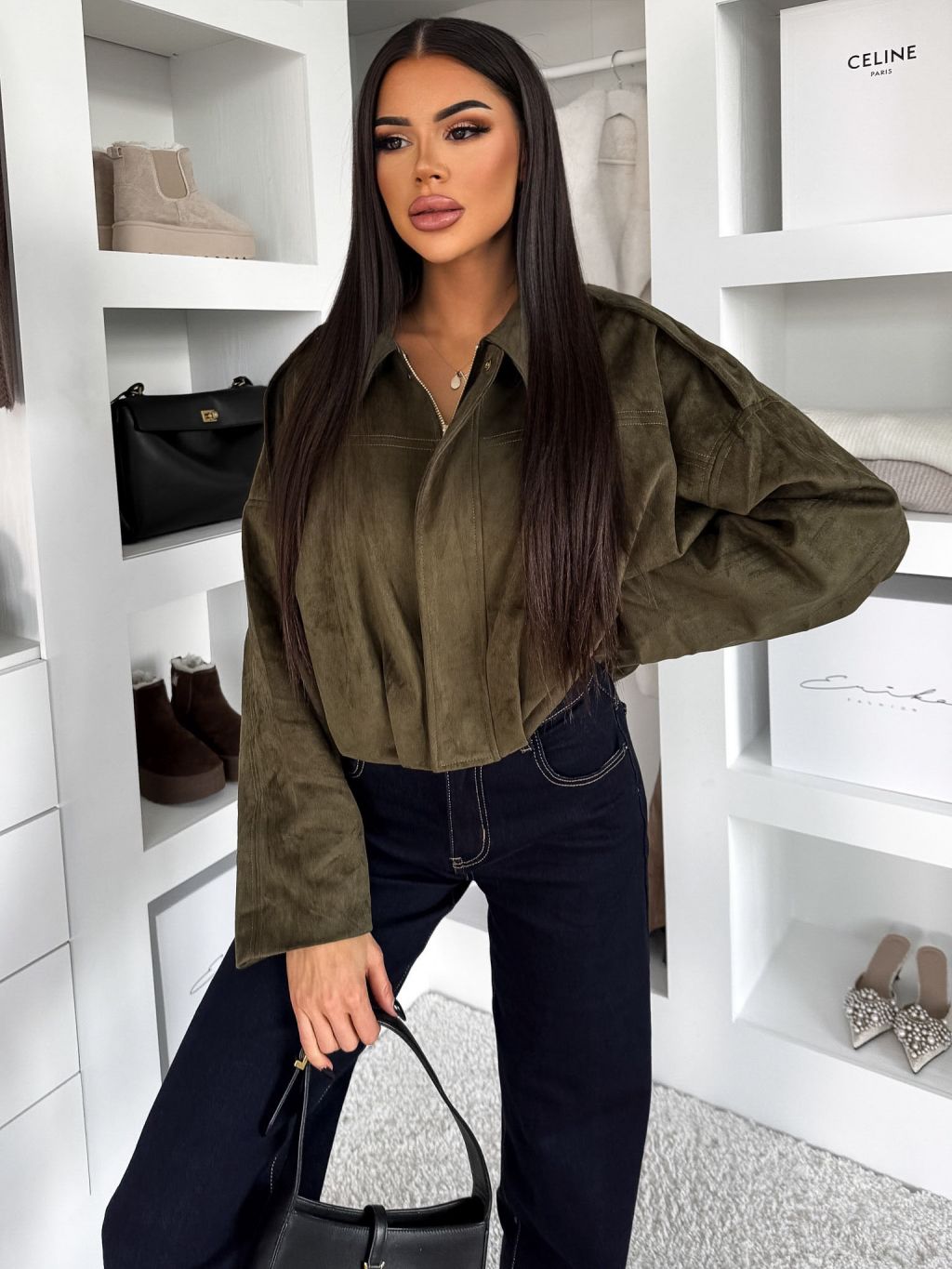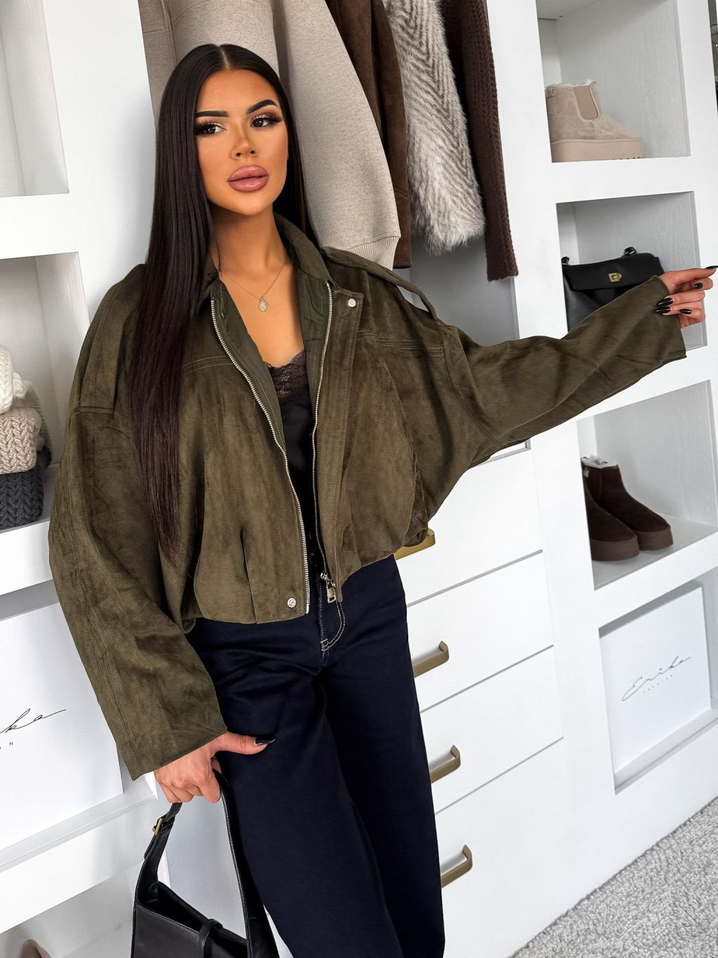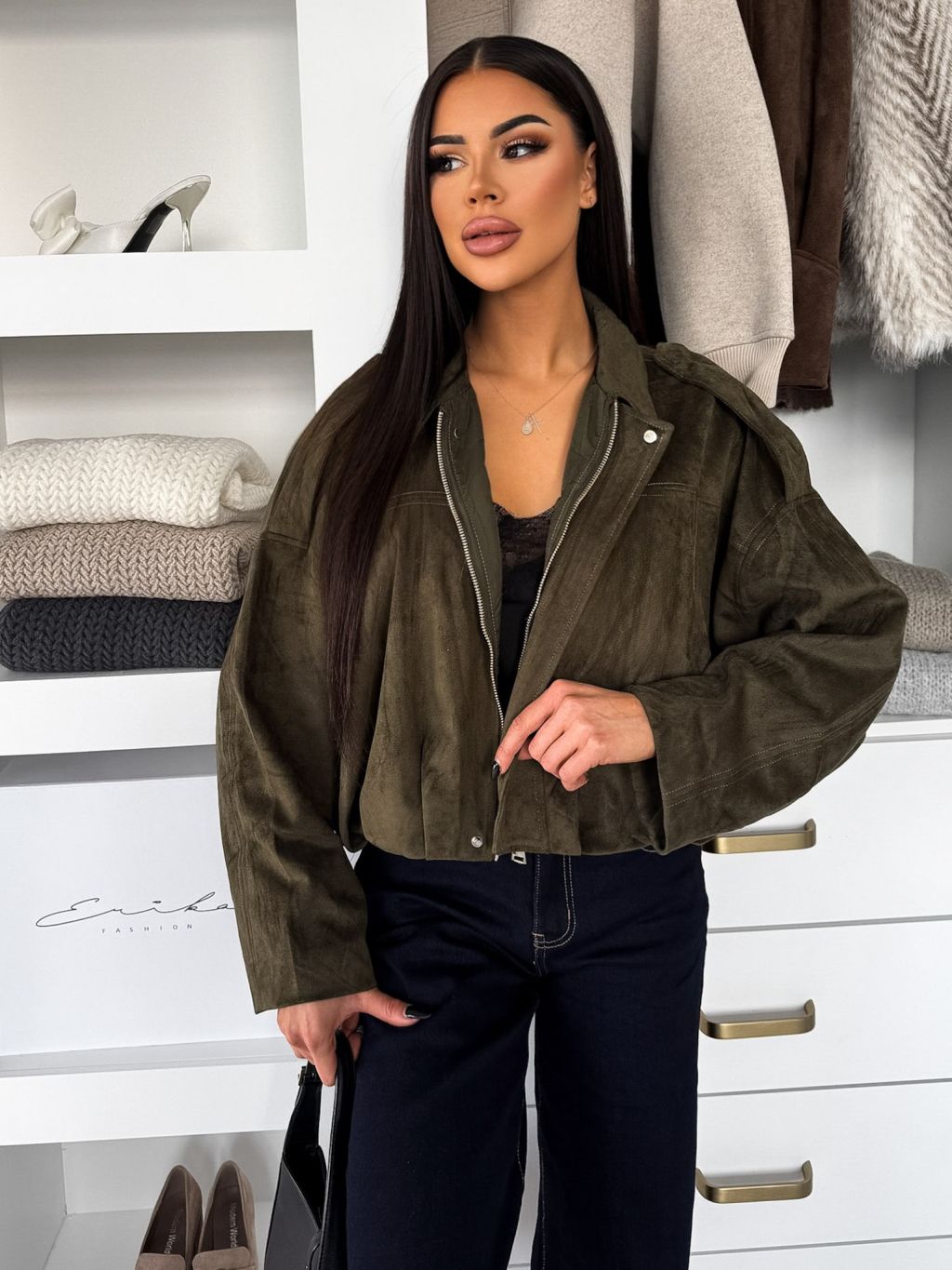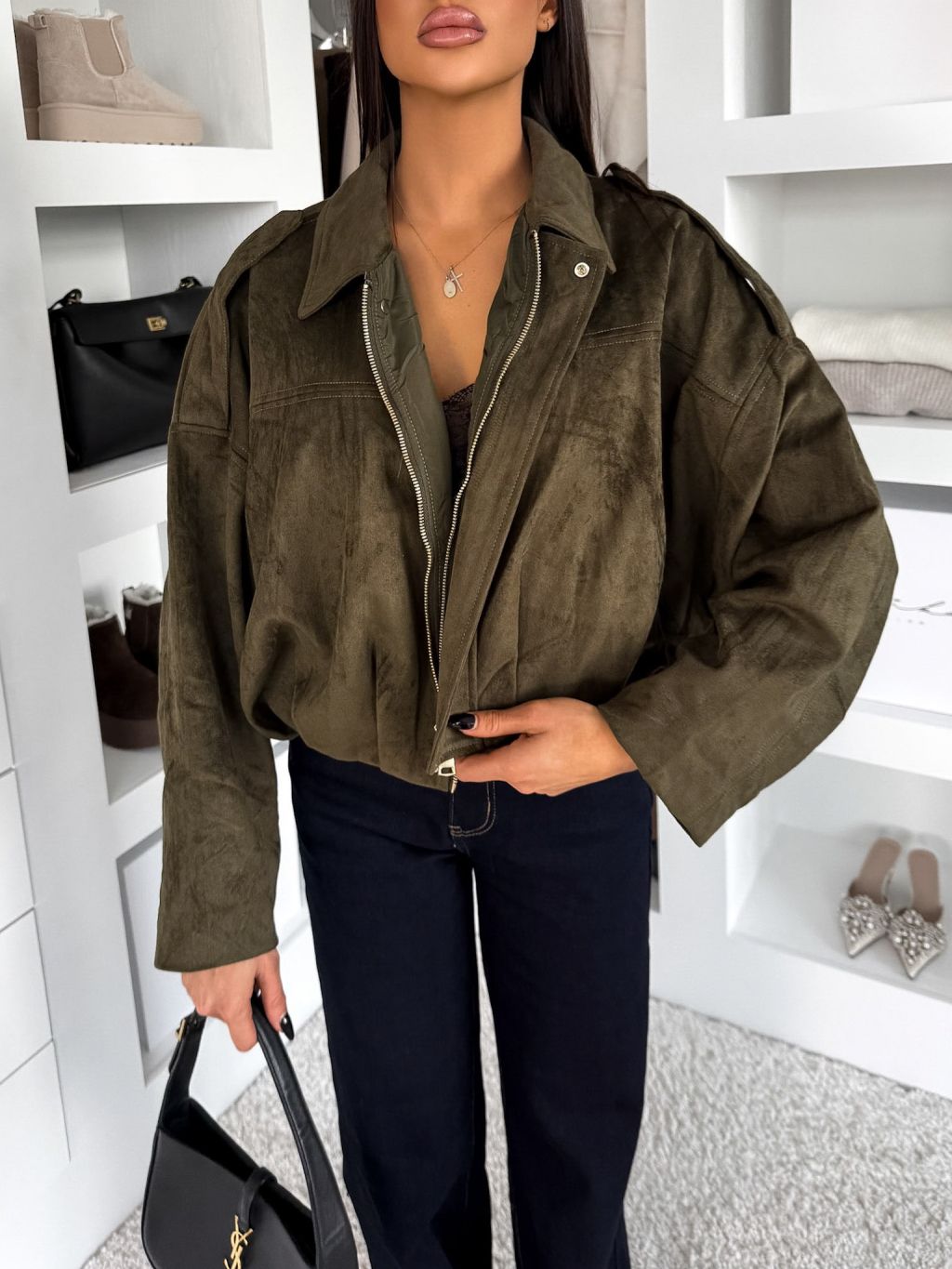 Kaki semišová krátka bunda KUSTIRA