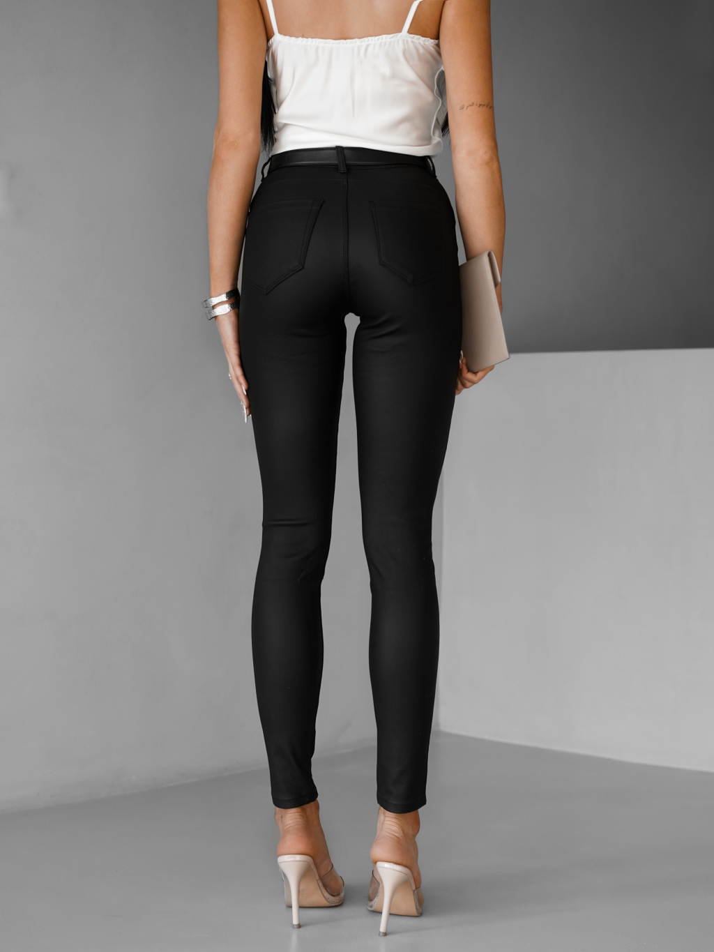 Čierne koženkové slim úzke nohavice ESKIL