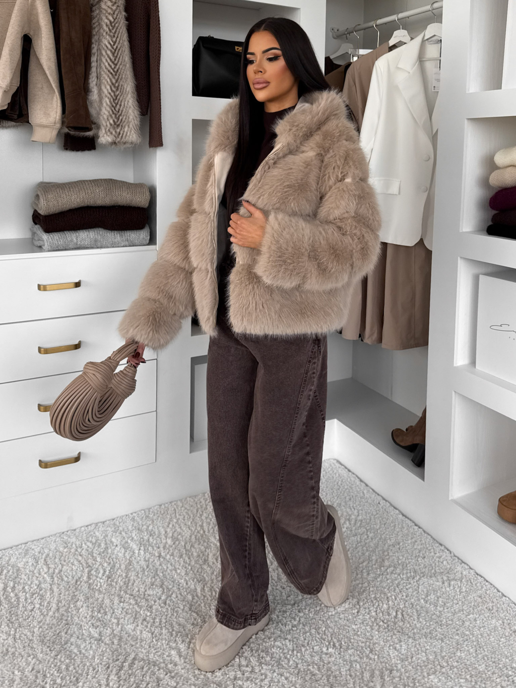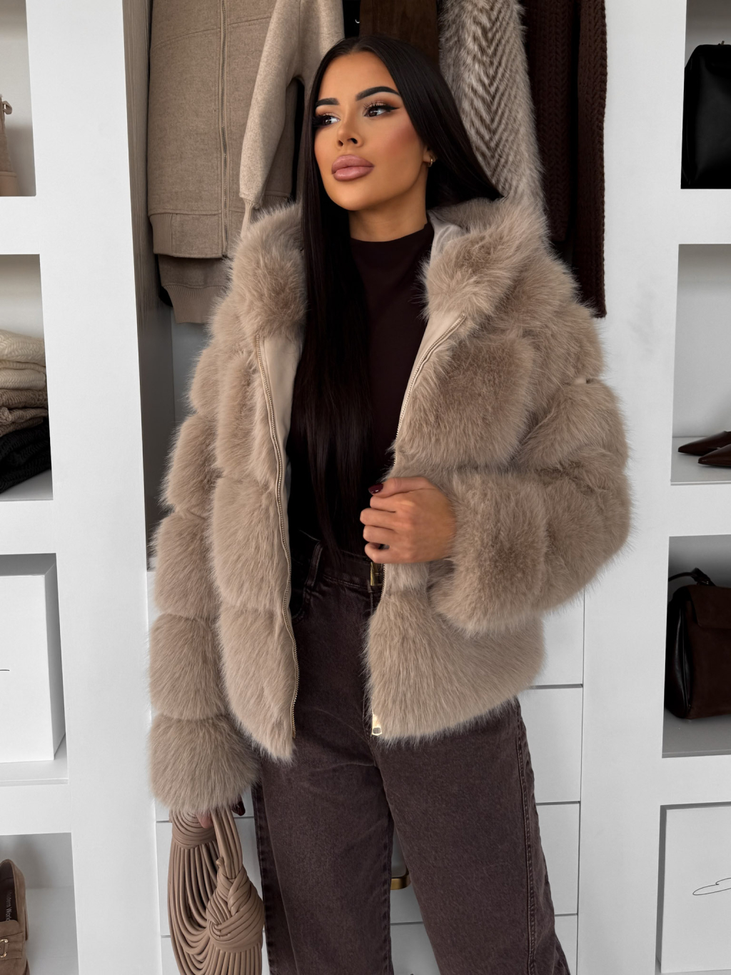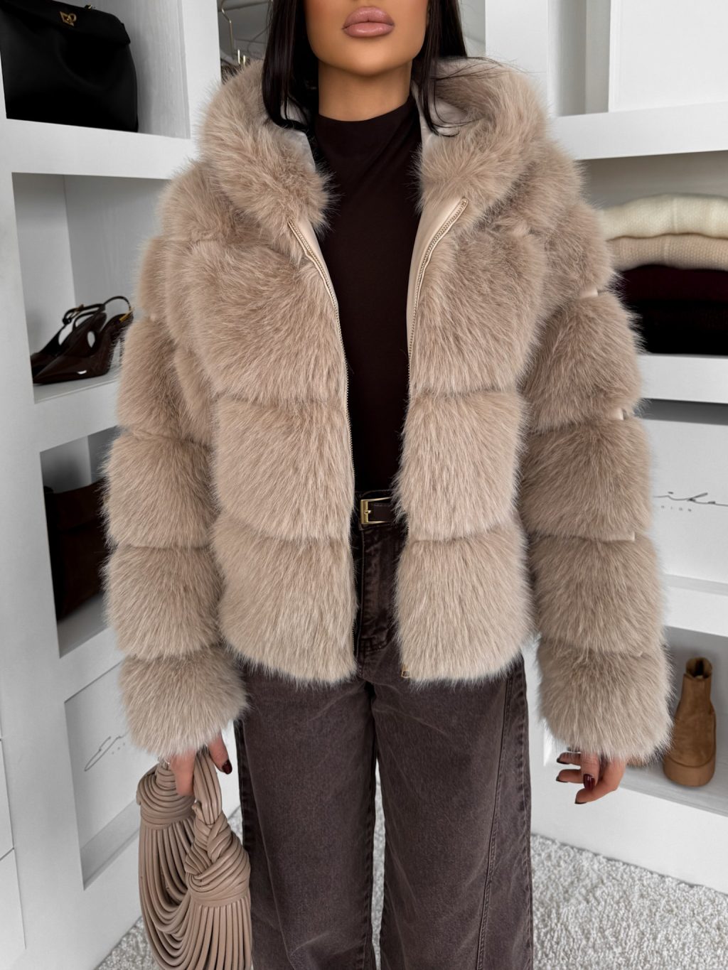 Béžový faux fur kožušinový kabátik TORLITA