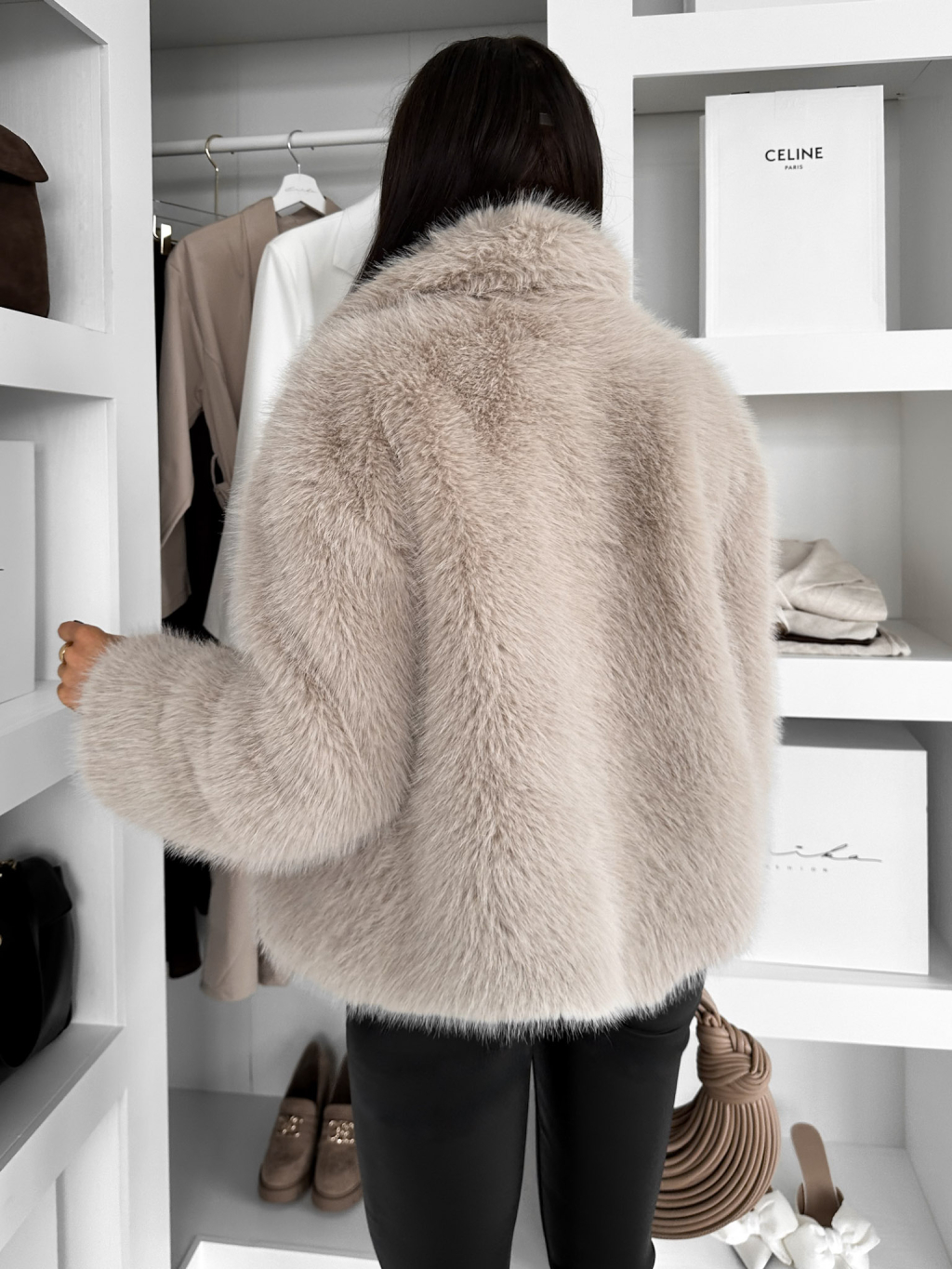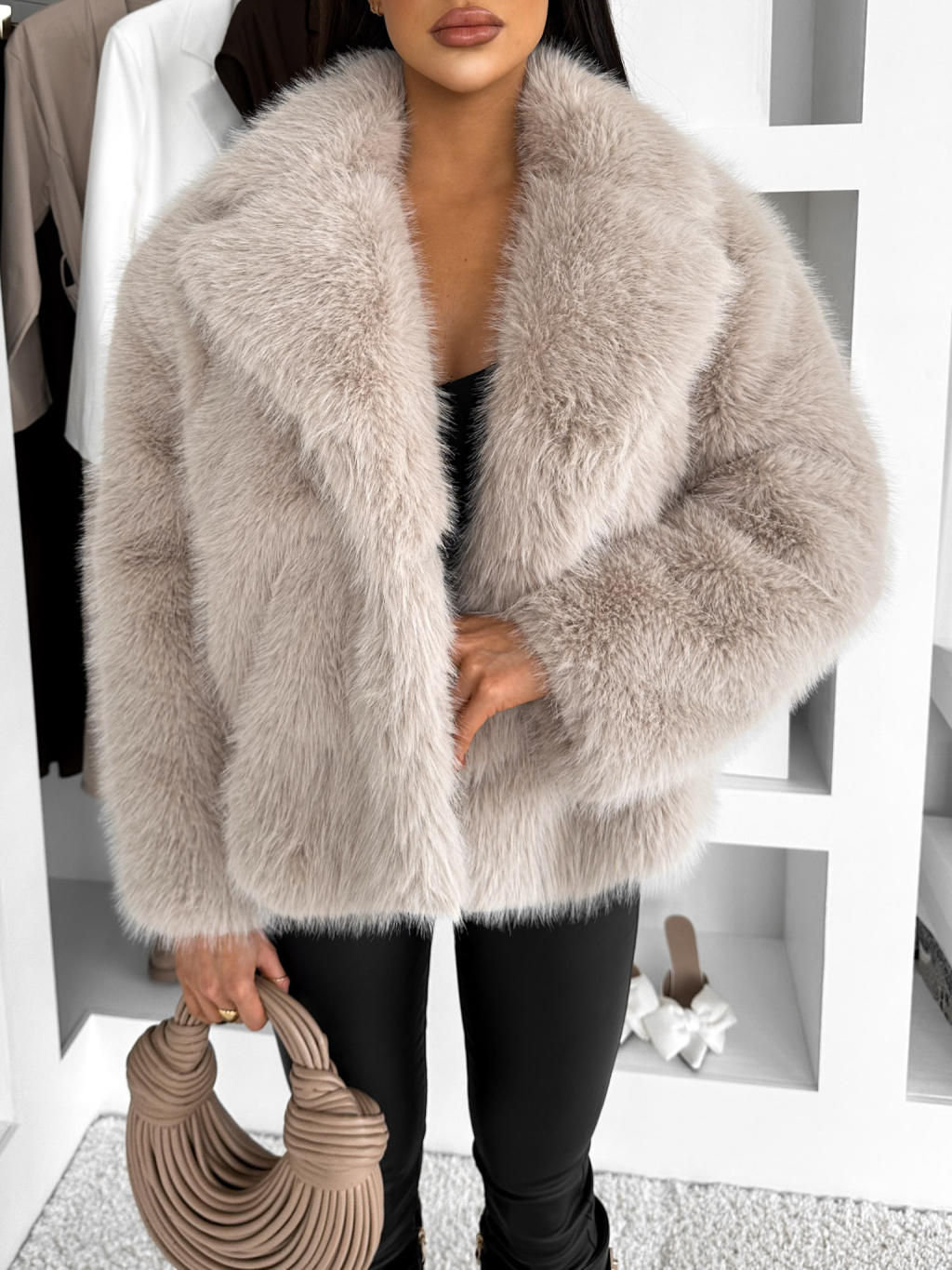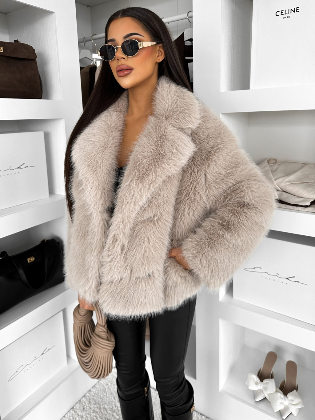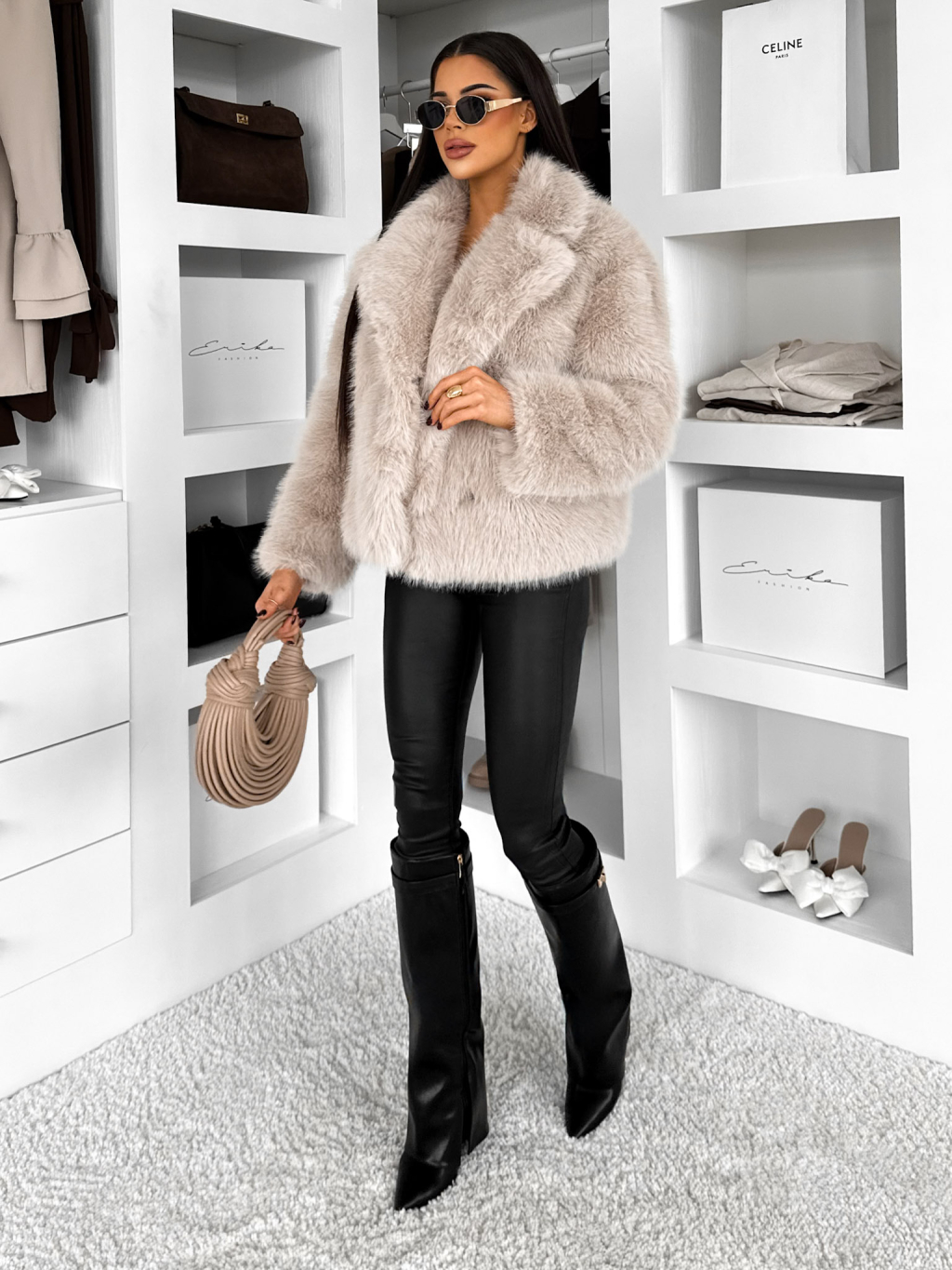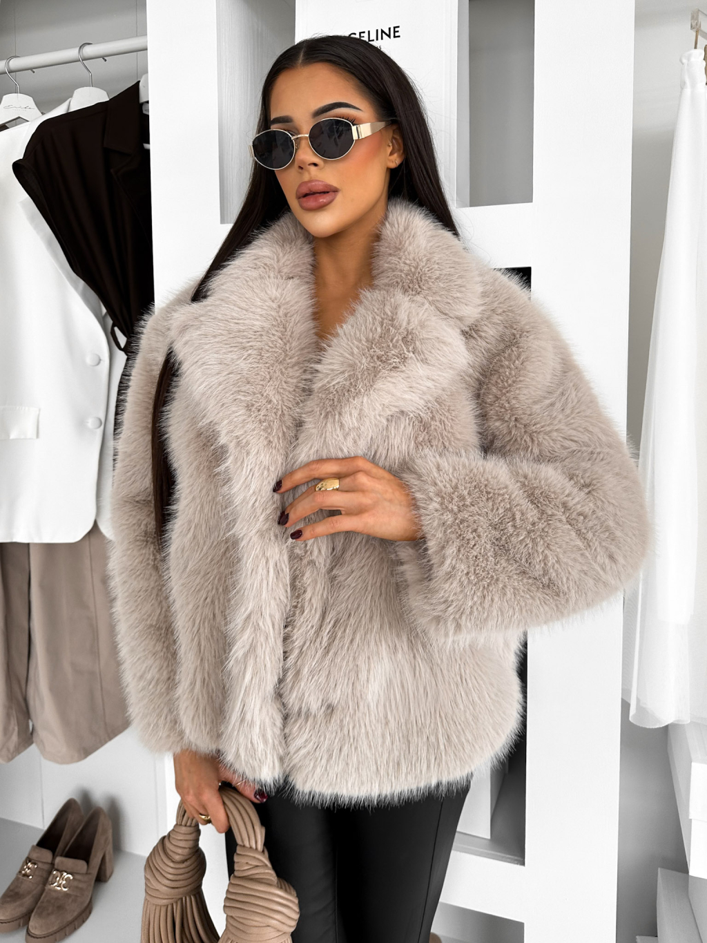 Béžový faux fur krátky kožušinový kabátik MORVEN