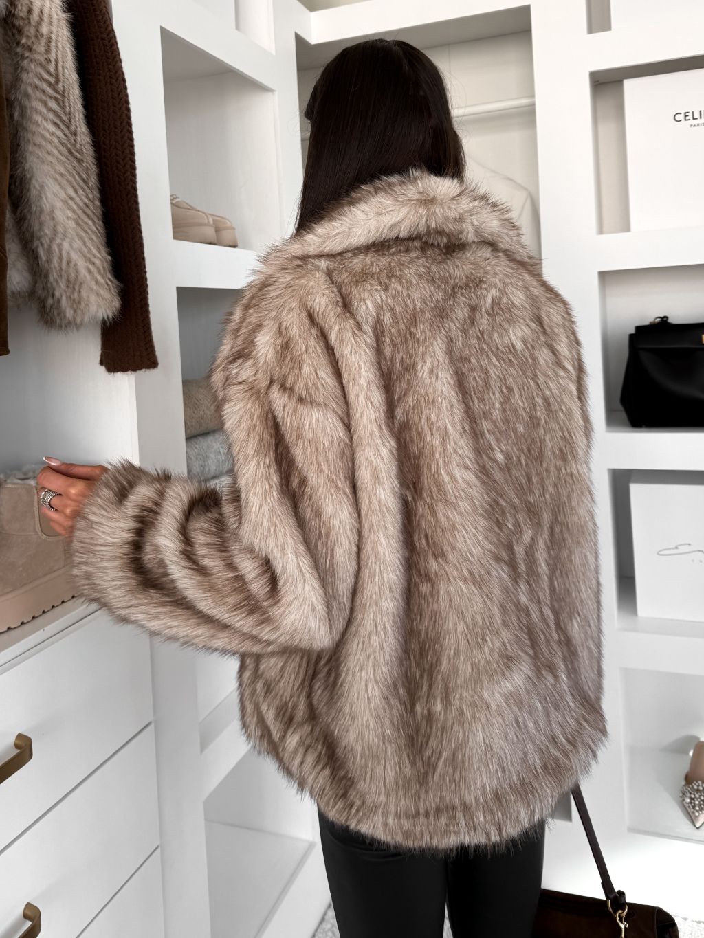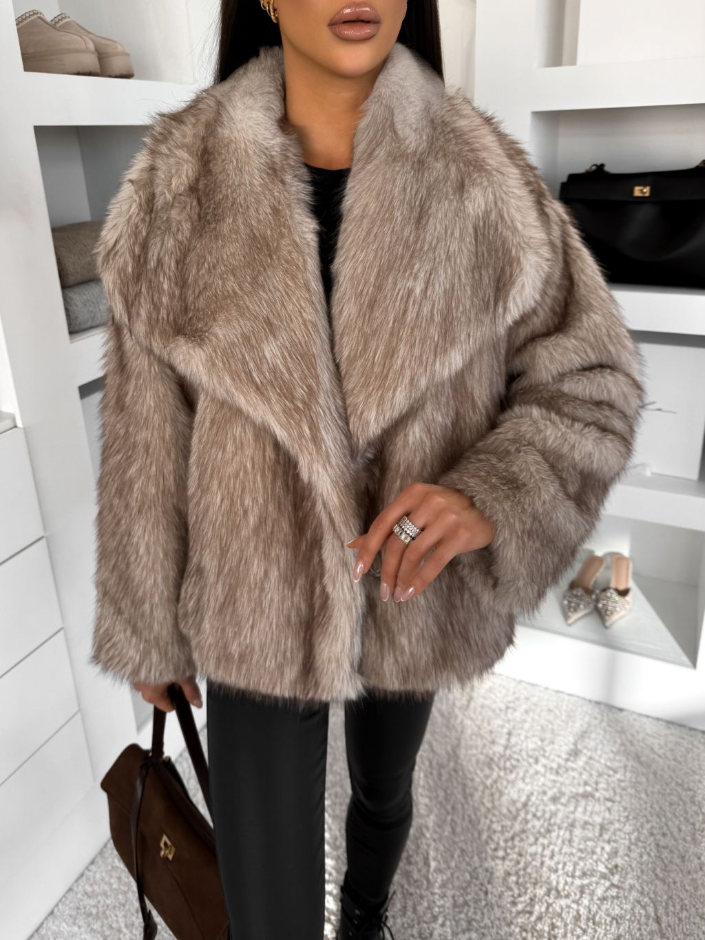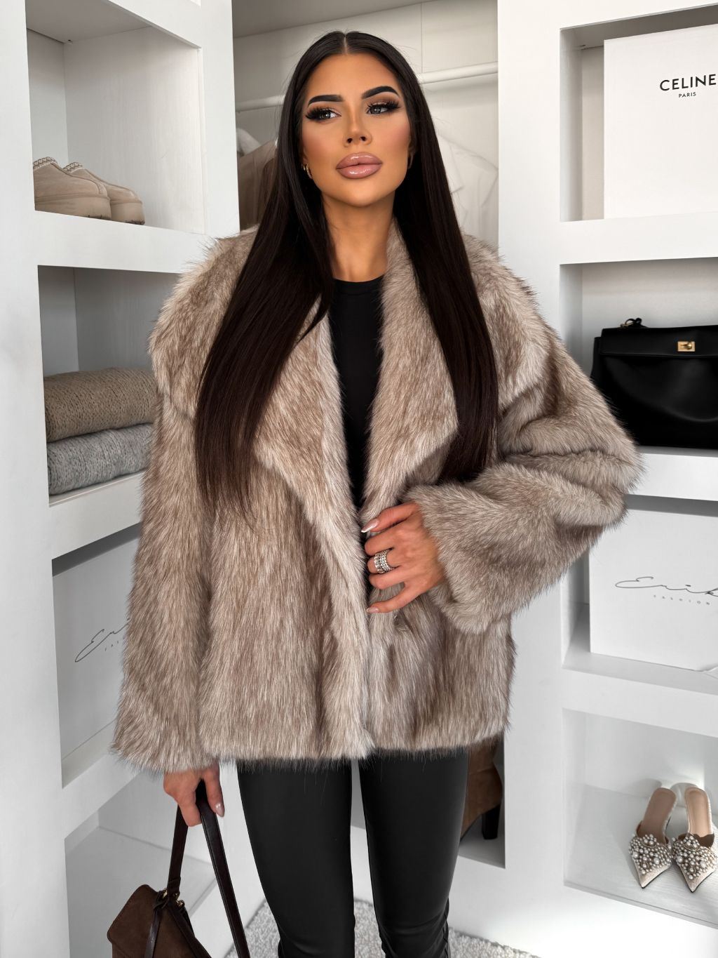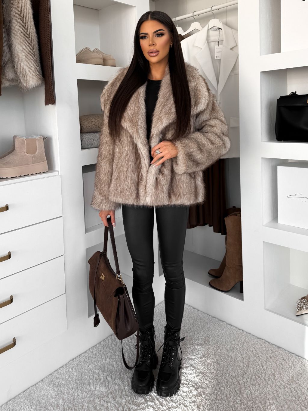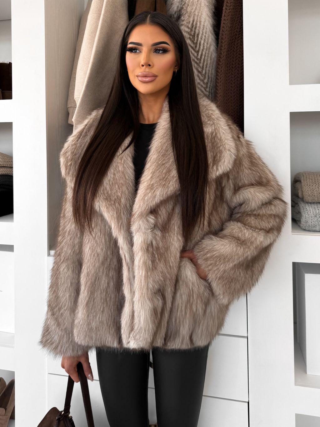 Béžový kožušinový melírovaný faux fur kabát MINVERO