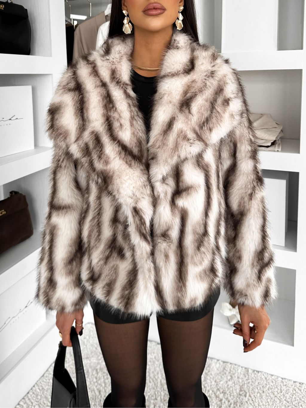 Bílohnědý kožešinový žíhaný kabátek ENVERO (Veľkosť ONESIZE)