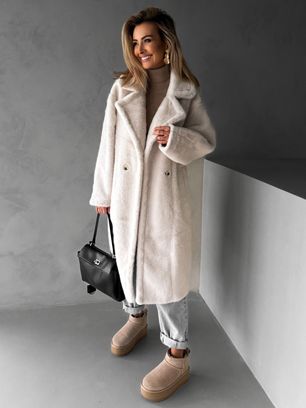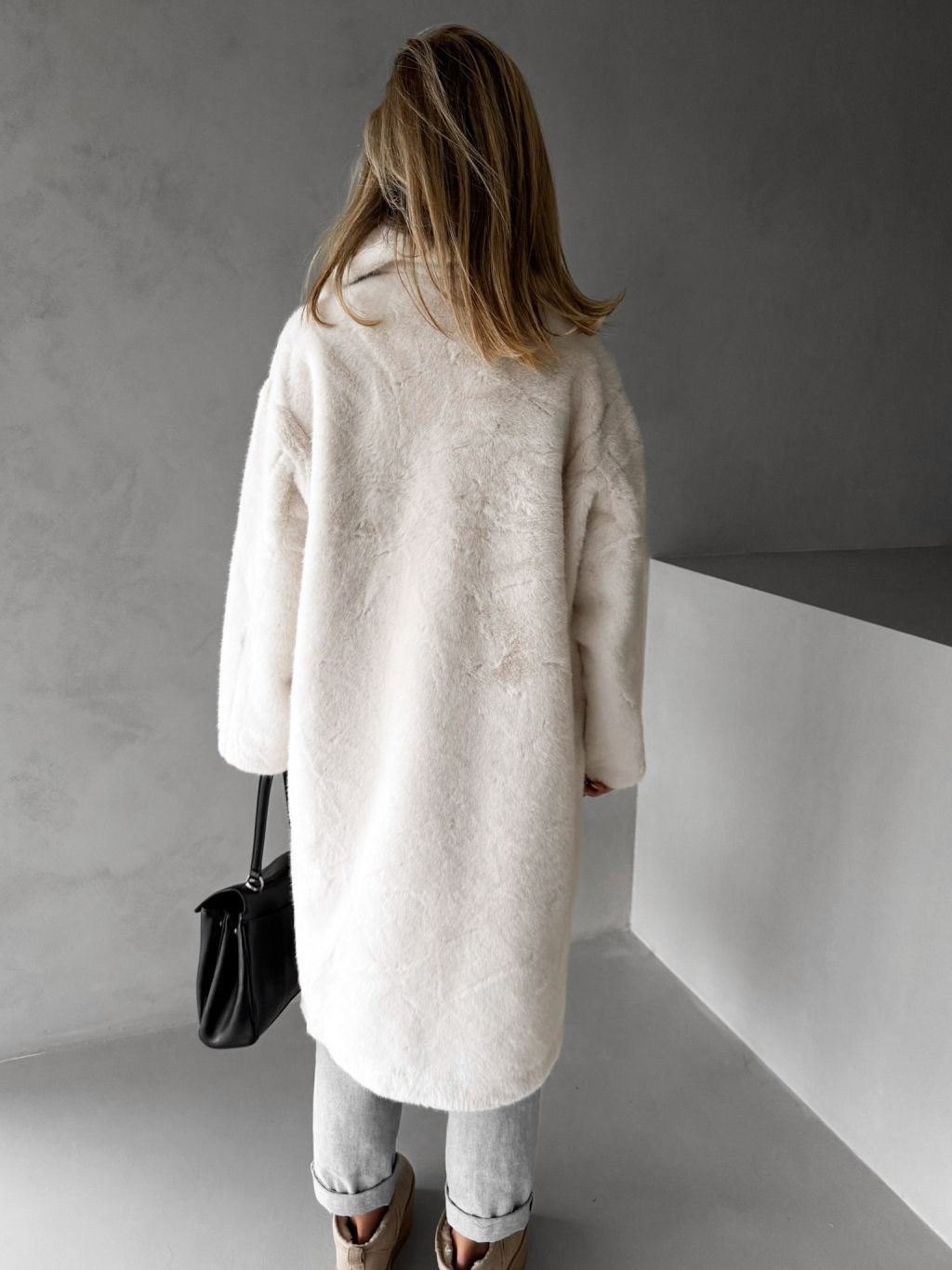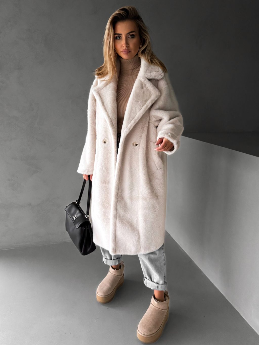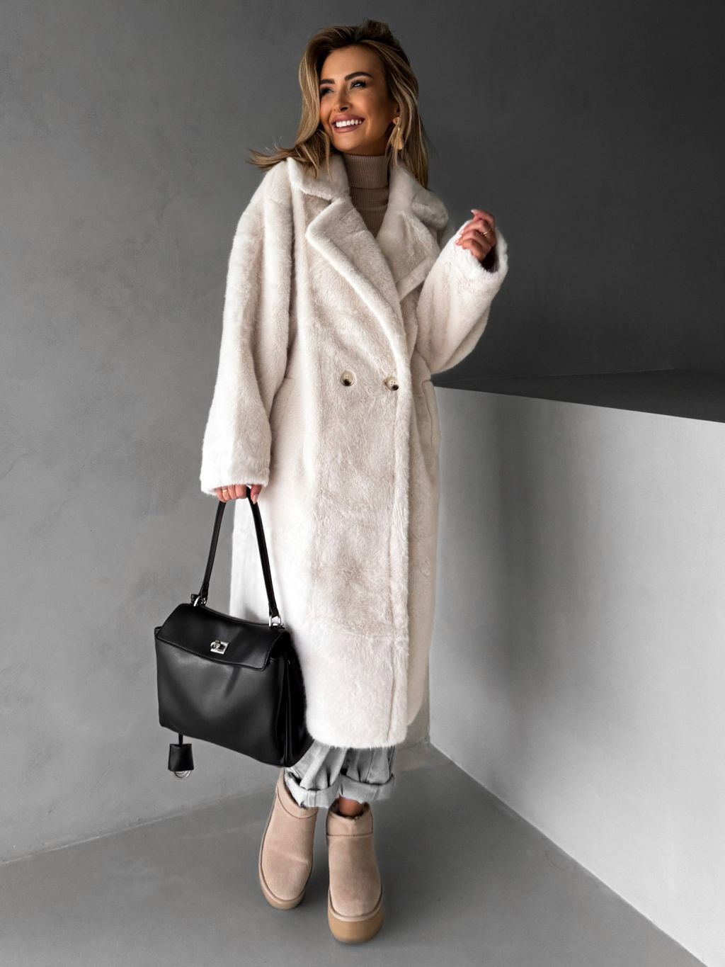 Biely dlhý teddy kabát ZOLTAR s golierom
