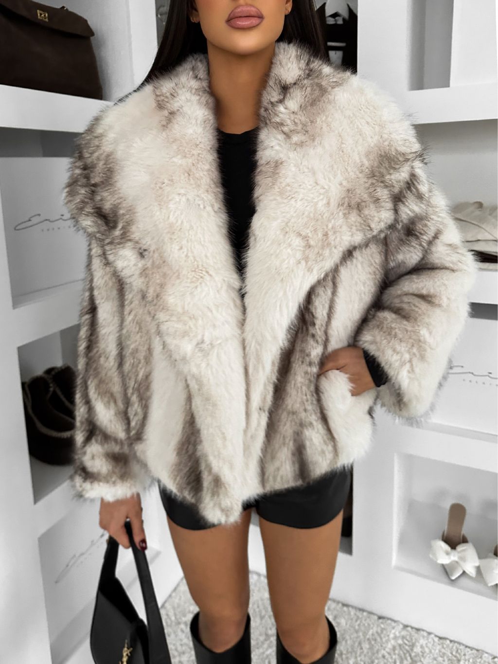 Biely kožušinový melírovaný faux fur kabátik AVELURE