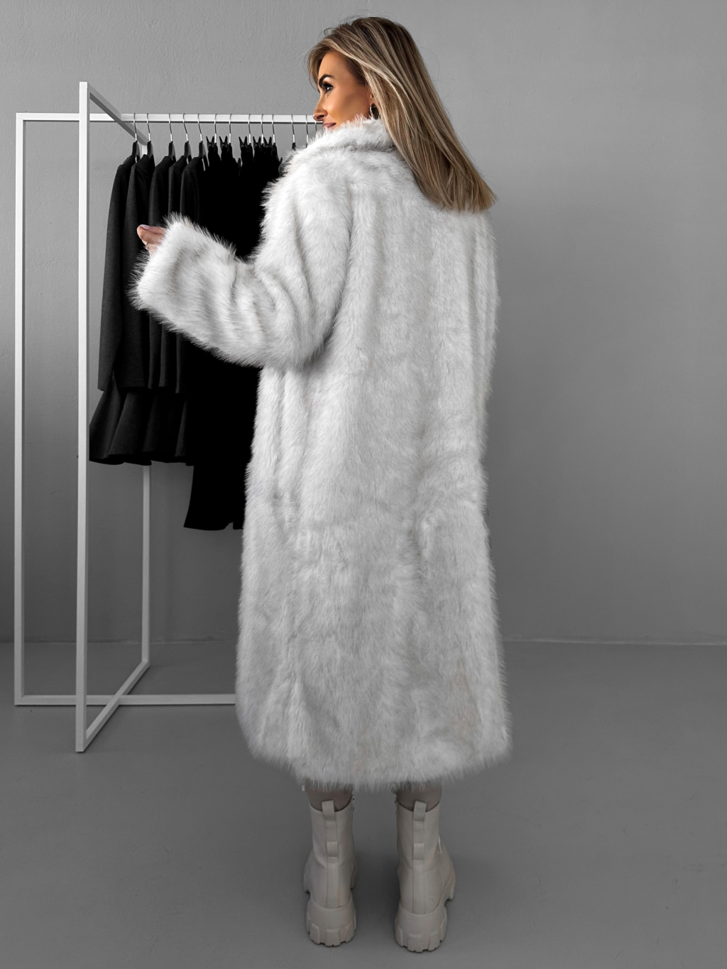 Biely melírovaný dlhý faux fur kožušinový kabát KINKA