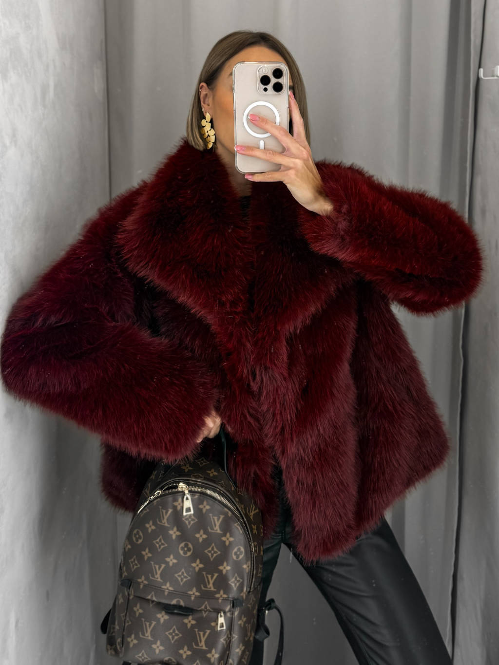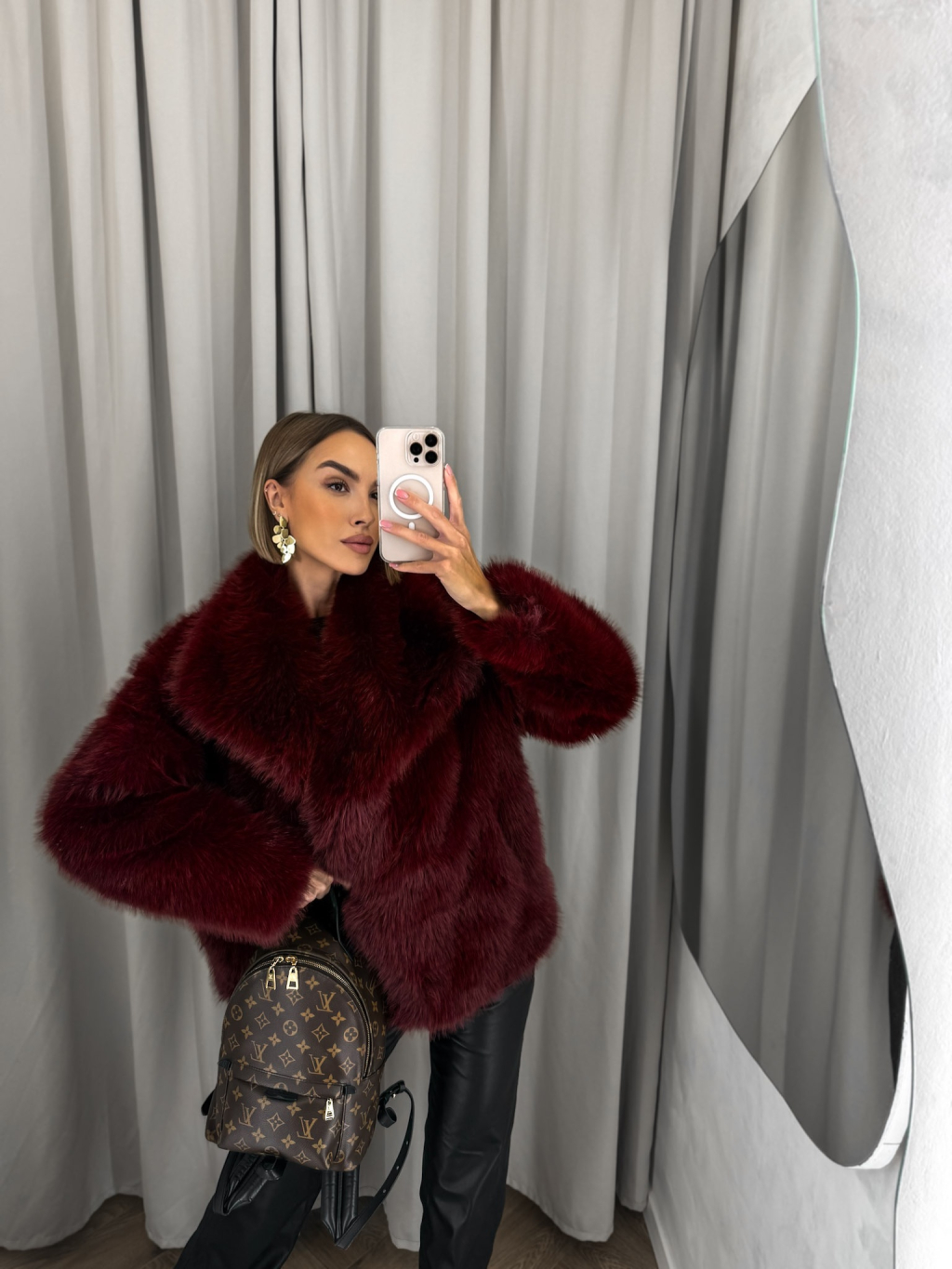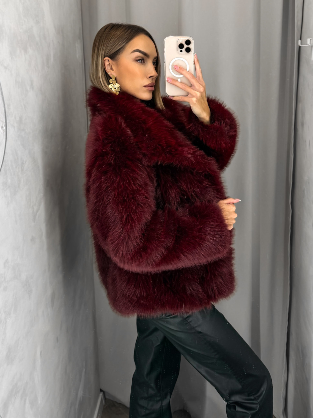 Bordó faux fur kožušinový kabátik kožuch BAIDE