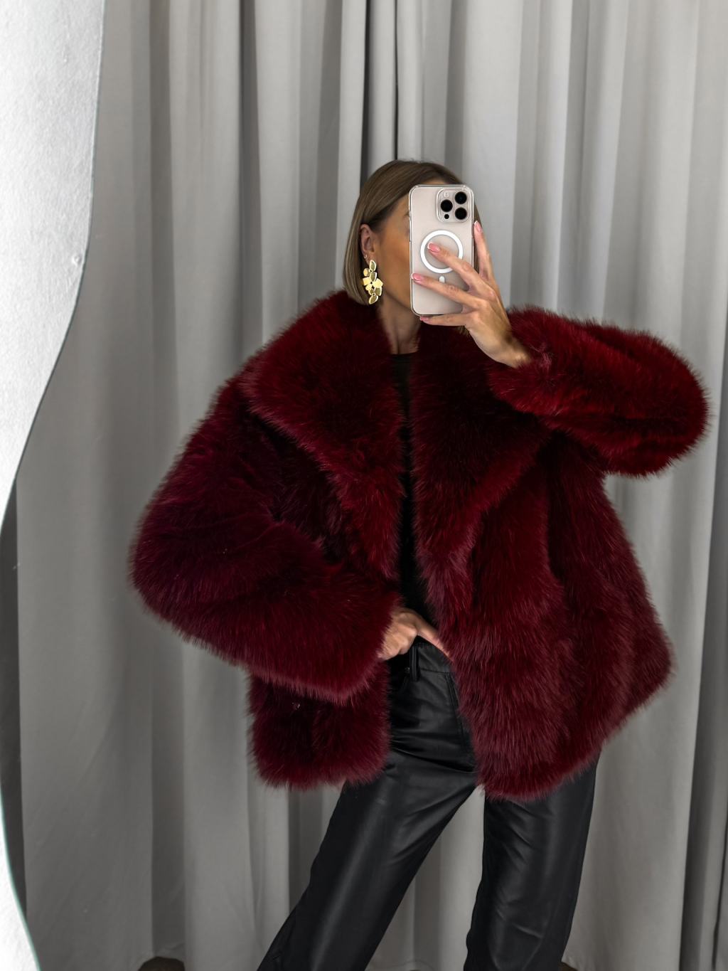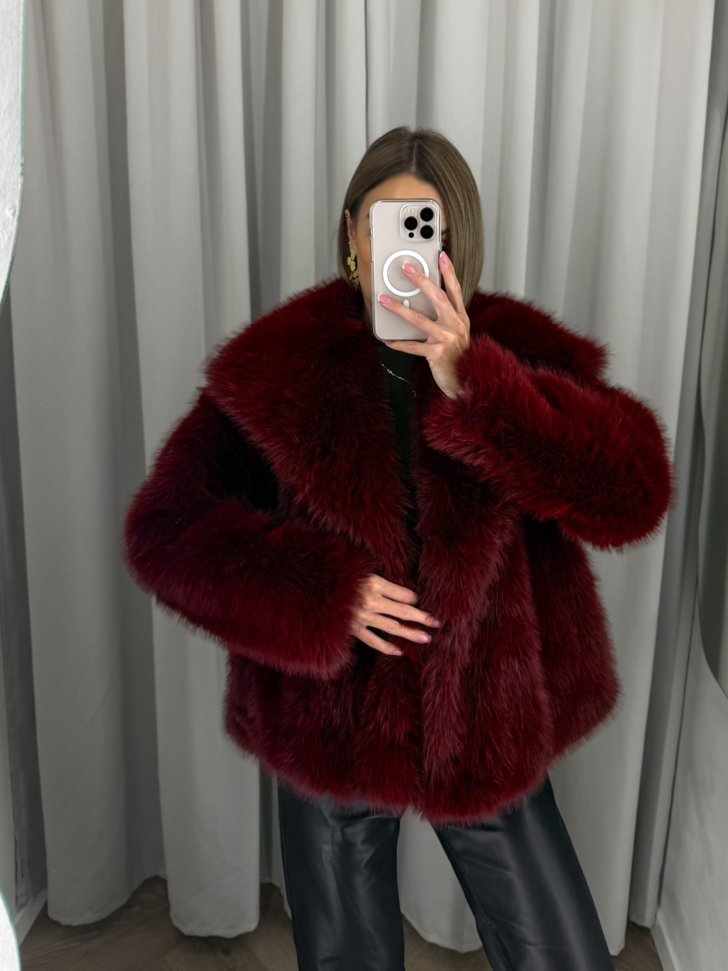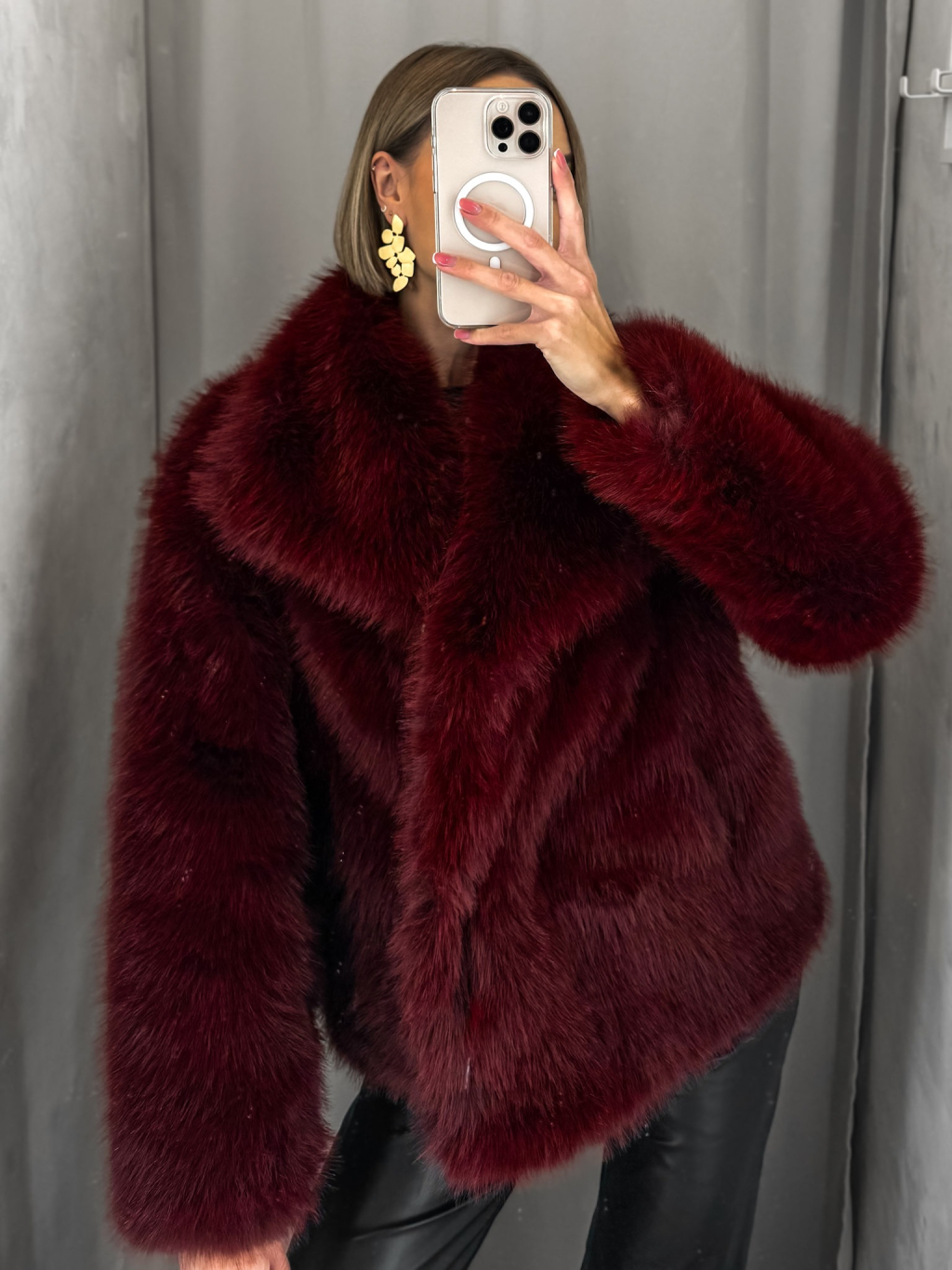 Bordó faux fur kožušinový kabátik kožuch BAIDE