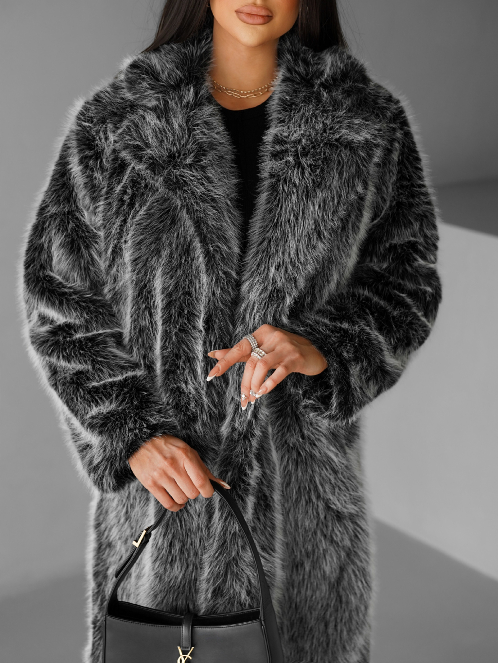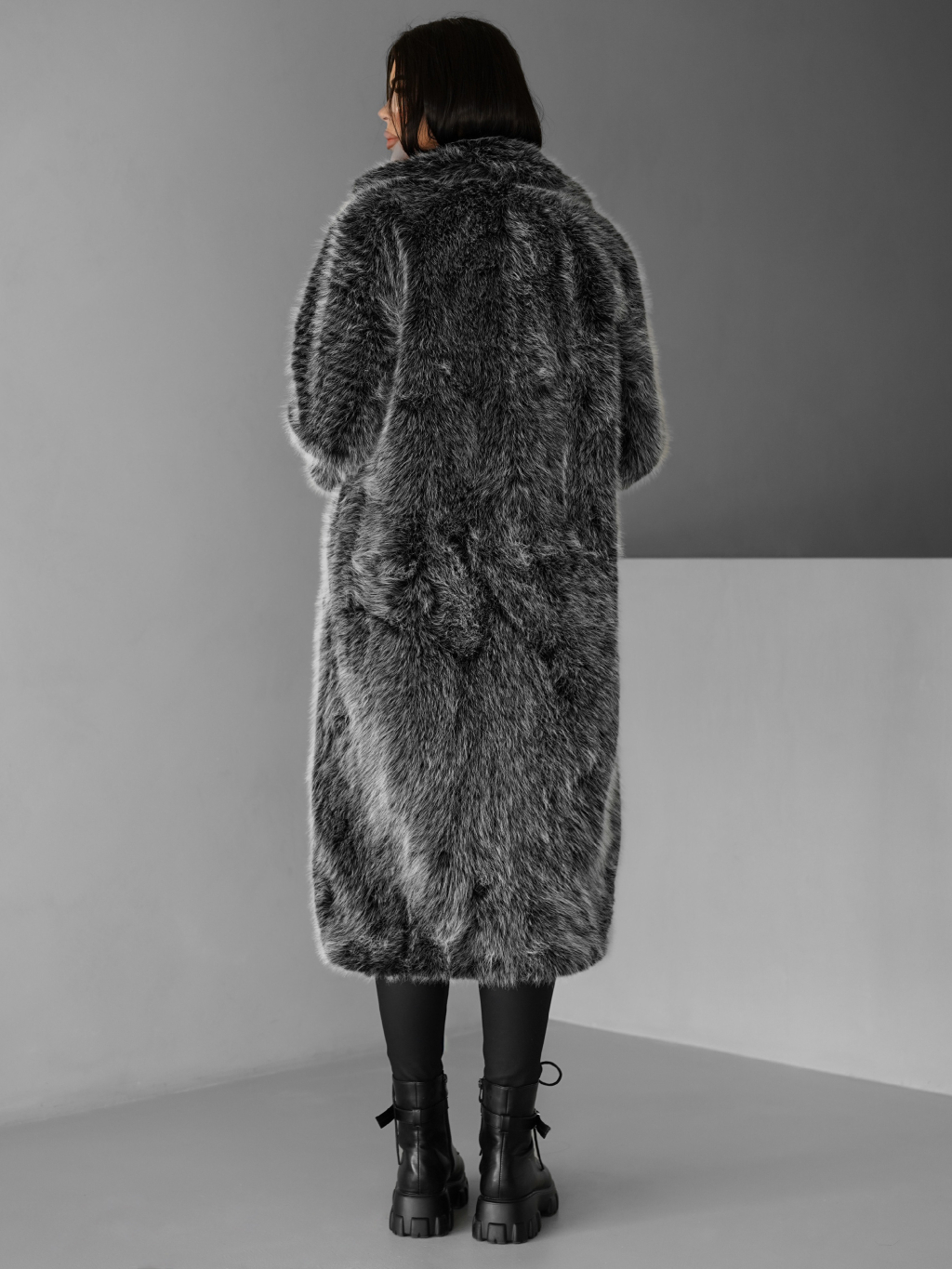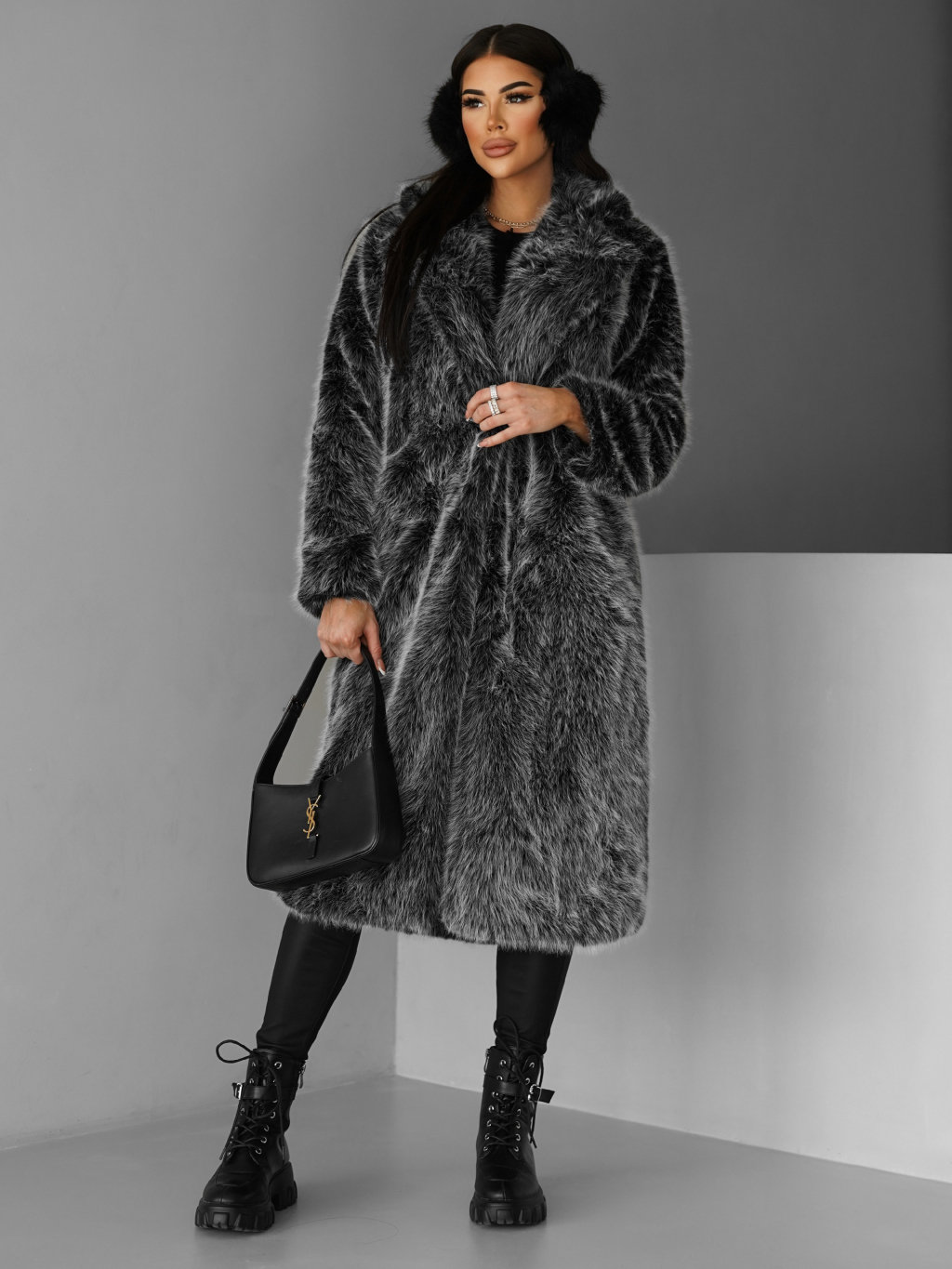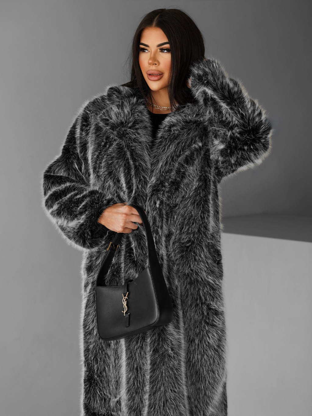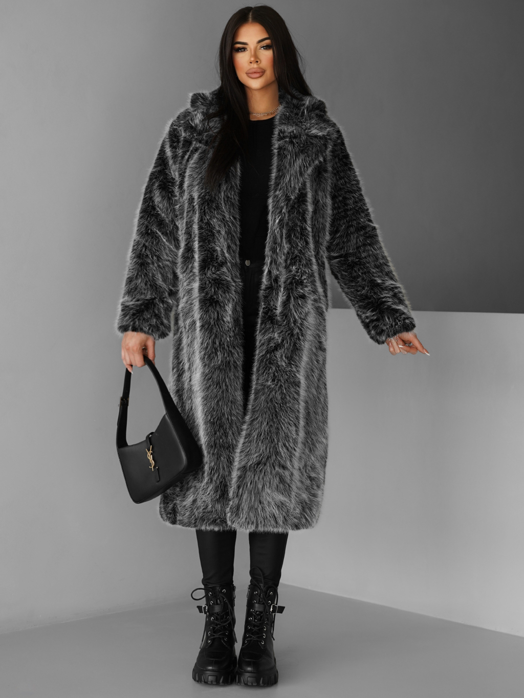 Čierny faux fur dlhý kožušinový kabát KINKA